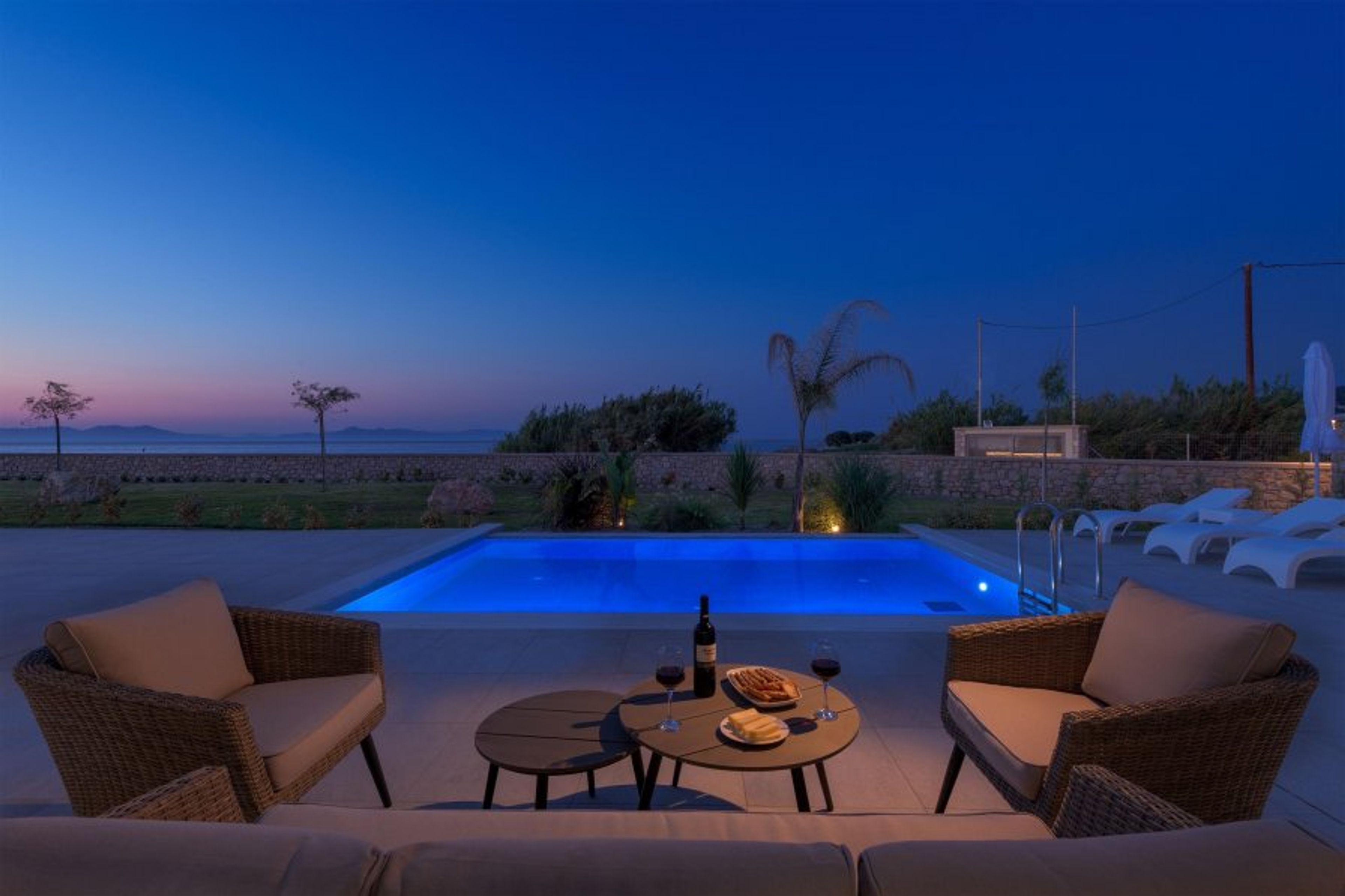Keema Villa has a refreshingly modern decoration with beautiful details that make it peaceful and comfortable. There are 2 fully airconditioned bedroom. One of the bedrooms offers a double bed and the other bedroom offers 2 single beds. Also, there are 2 stylish bathrooms. The modern kitchen is fully equipped and suitable for any meal preparation and shares the space with the beautifully designed living room and the comfy dining area. Guests will find a smart TV and free Wi-Fi access throughout the property. Outdoors, there’s a refreshing private swimming pool surrounded by the serene setting of the beach. Also, there are BBQ facilities and a seating area where you can enjoy a tasty meal with your loved ones. On sunset hour, you’ll have the opportunity to enjoy the most beautiful sunset in Rhodes.