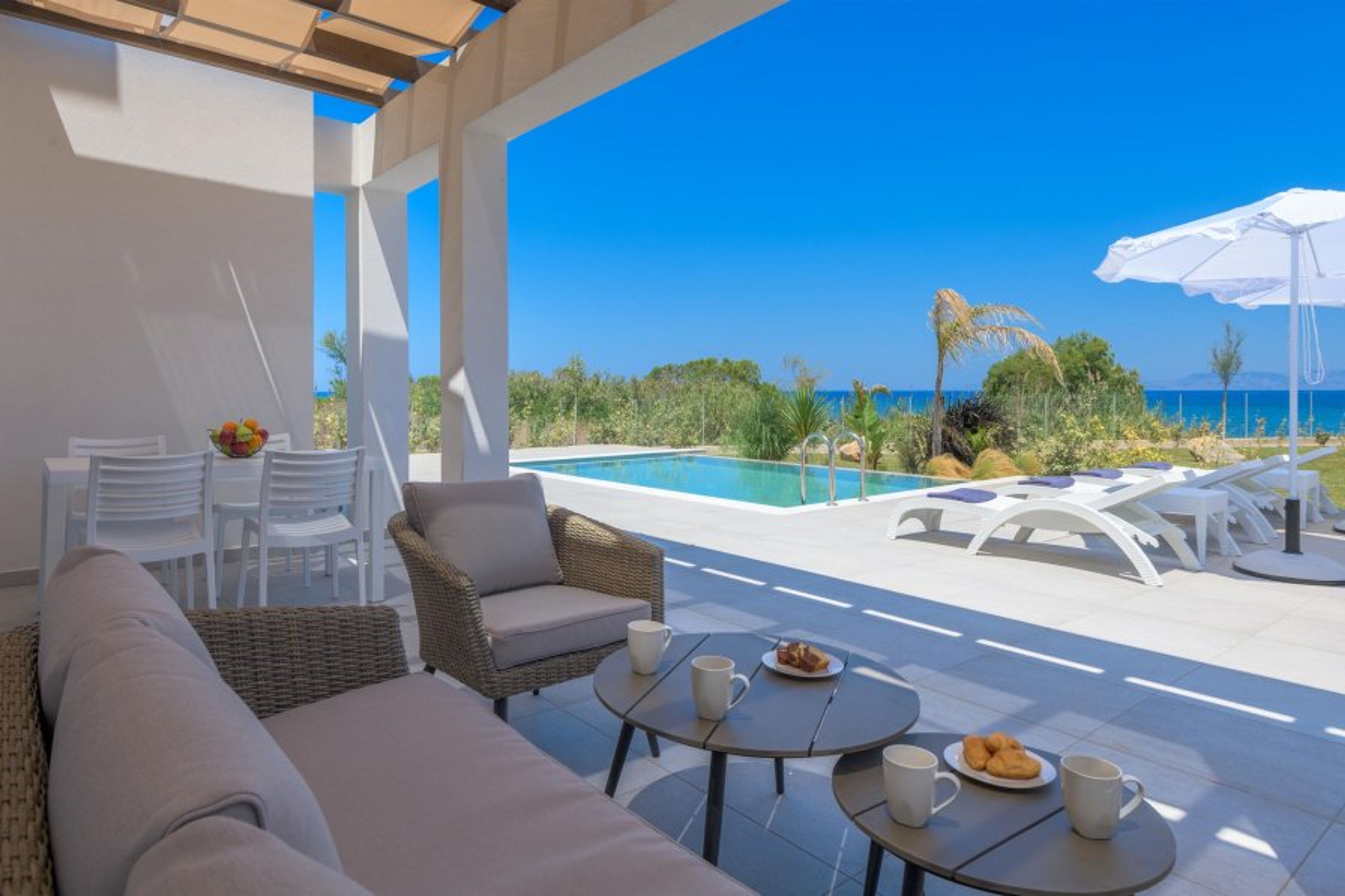 Votsalo Villa has a refreshingly modern decoration with beautiful details that make it peaceful and comfortable. There are 2 fully airconditioned bedroom. One of the bedrooms offers a double bed and the other bedroom offers 2 single beds. Also, there are 2 stylish bathrooms. The modern kitchen is fully equipped and suitable for any meal preparation and shares the space with the beautifully designed living room and the comfy dining area. Guests will find a smart TV and free Wi-Fi access throughout the property. Outdoors, there’s a refreshing private swimming pool surrounded by the serene setting of the beach. Also, there are BBQ facilities and a seating area where you can enjoy a tasty meal with your loved ones. On sunset hour, you’ll have the opportunity to enjoy the most beautiful sunset in Rhodes.