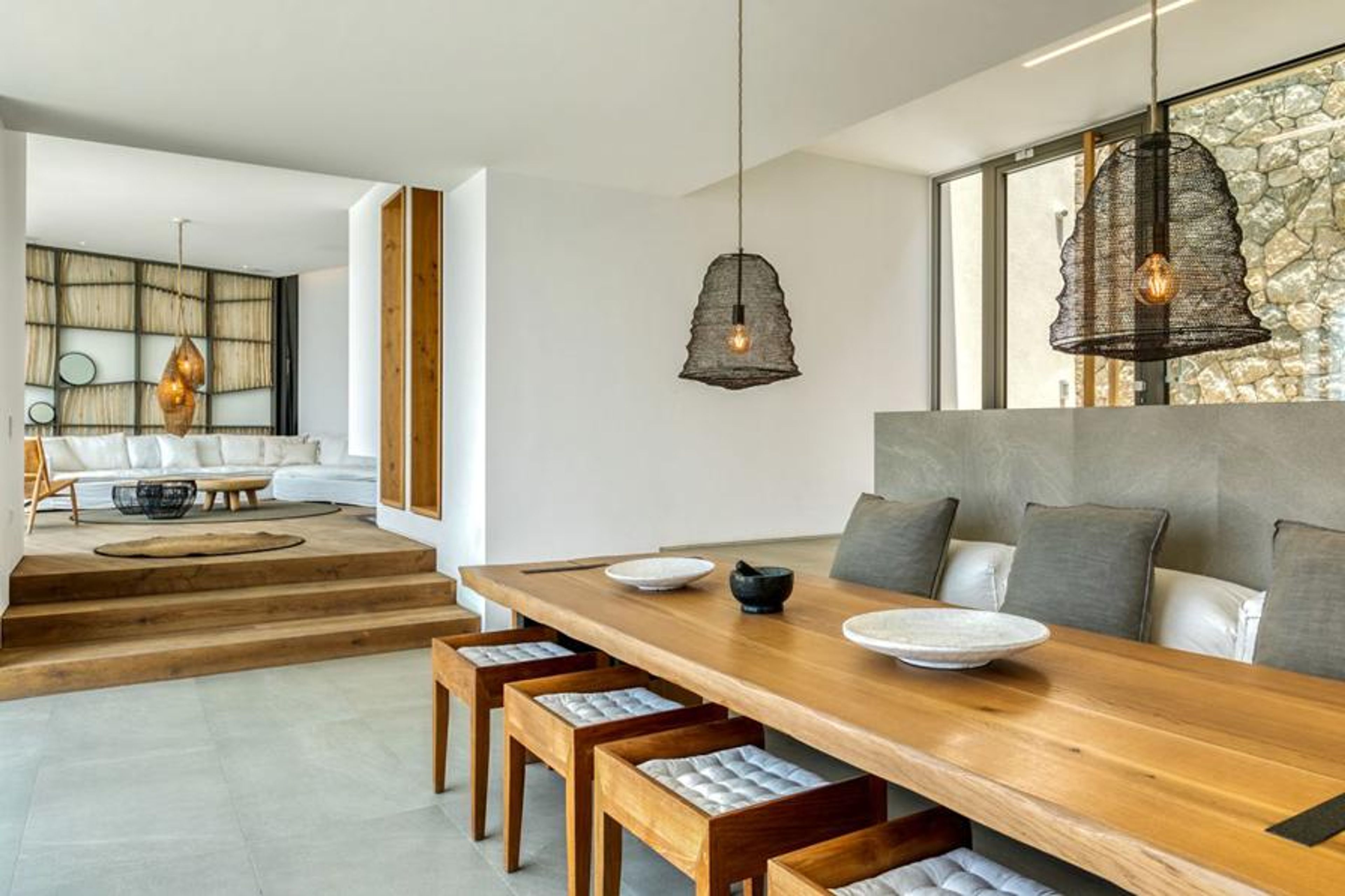 The subterranean style villa is built over one storey, and constructed out of classic Mediterranean whitewashed walls, with floor-to-ceiling sliding doors, that flood the rooms with natural light, and let in cooling sea breezes. The interiors are cool and contemporary, elegant and exquisite, with inner stone walls, lots of natural wood, and modern minimalist furnishings, and decorated in a calming colour palette of crisp, clean whites, with subtle shades of grey highlights. When you stay at Villa Paradisia you have access to a twenty-four-hour guest relations service, a maid comes in daily to clean, a butler is on duty from 8 am until 6 pm, and you get served a breakfast of your choice, now that’s what we call luxurious living!