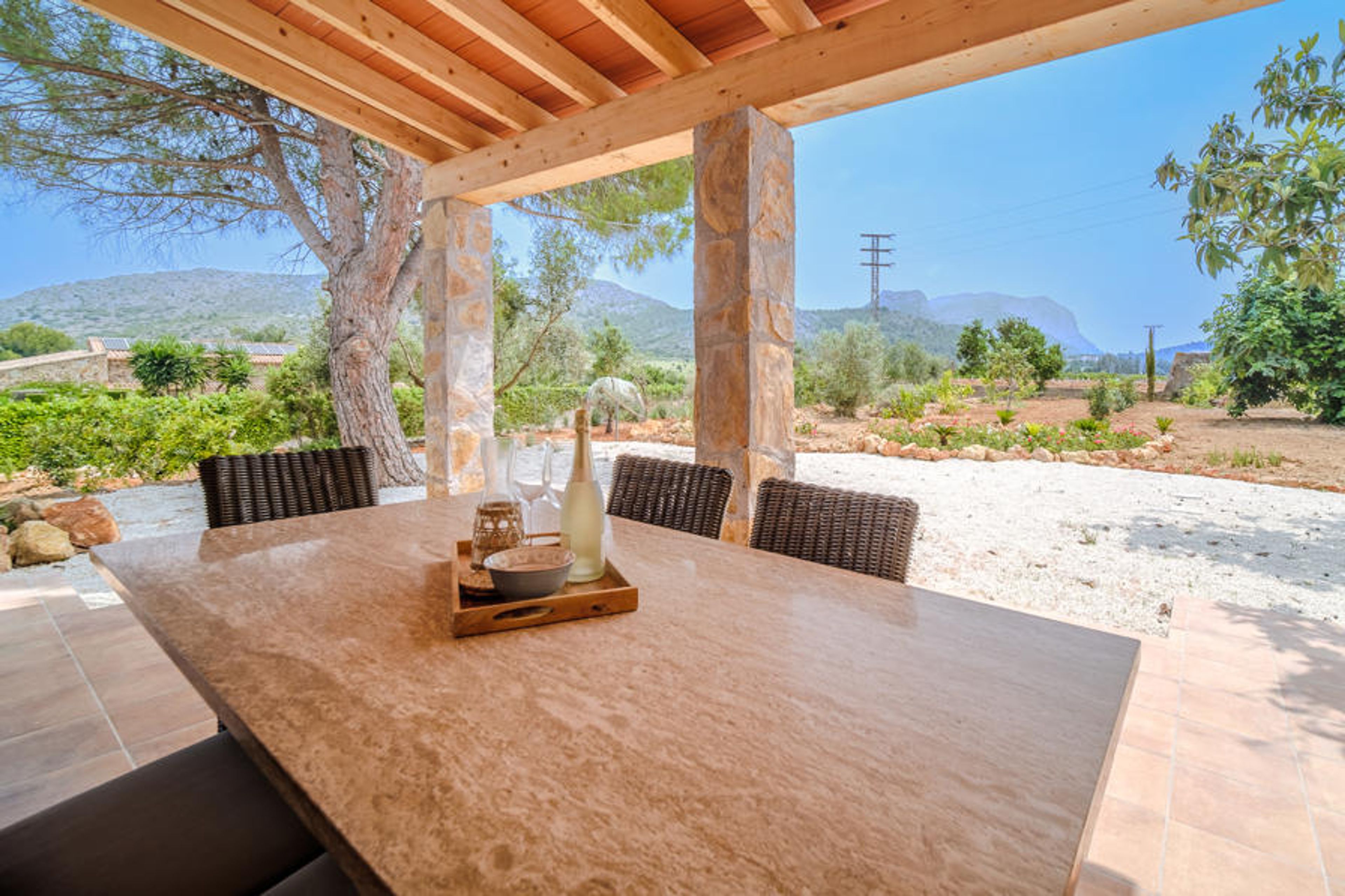From the kitchen, you can access the wonderful and spacious 95 m² terrace, which features a pool with sun loungers, an outdoor table and chairs, and a barbecue area. The second covered terrace of 14 m² is accessed from the living room. Here you can enjoy a fantastic dining table and chairs with views of the mountain and the garden with fruit trees.