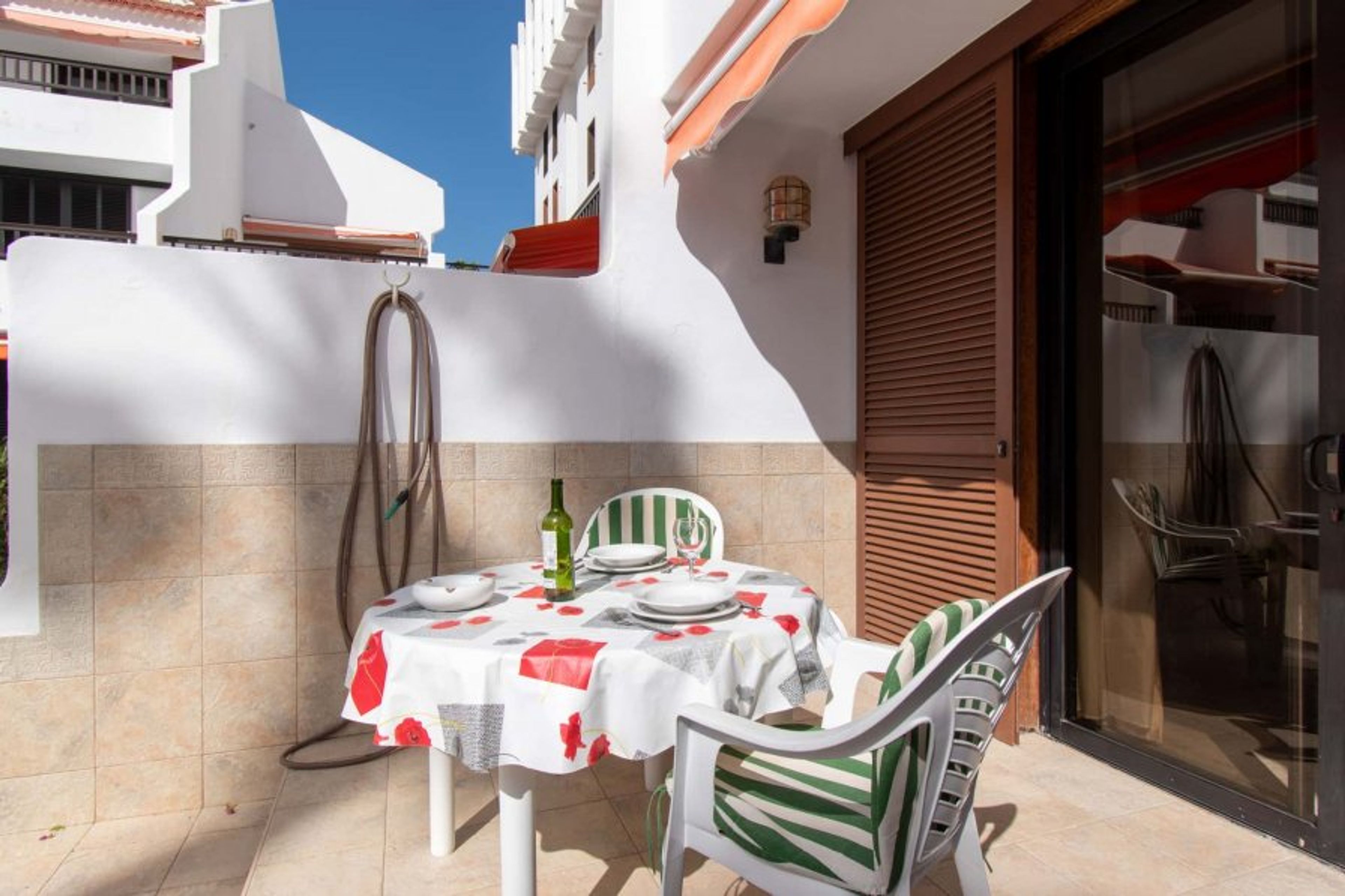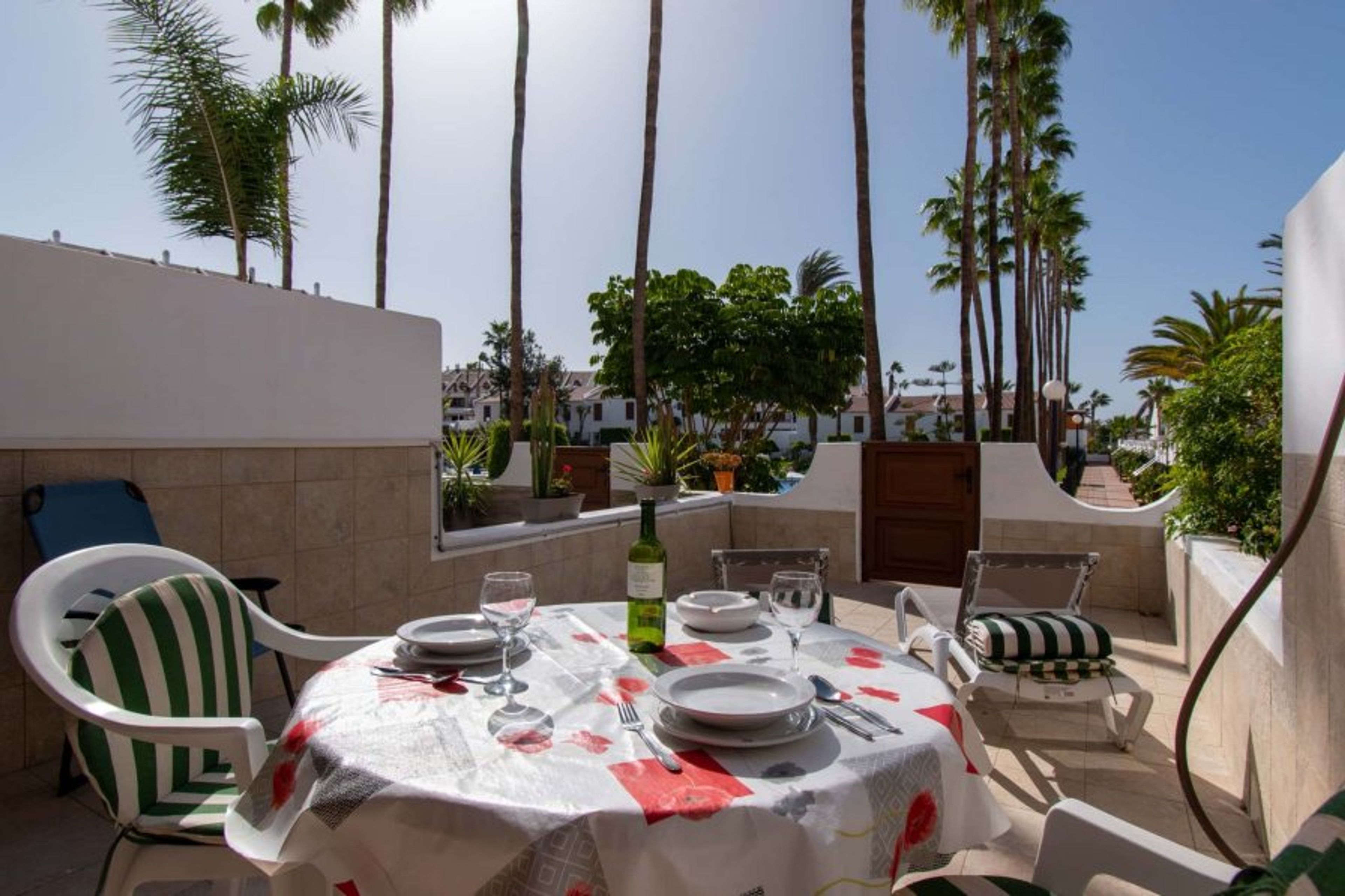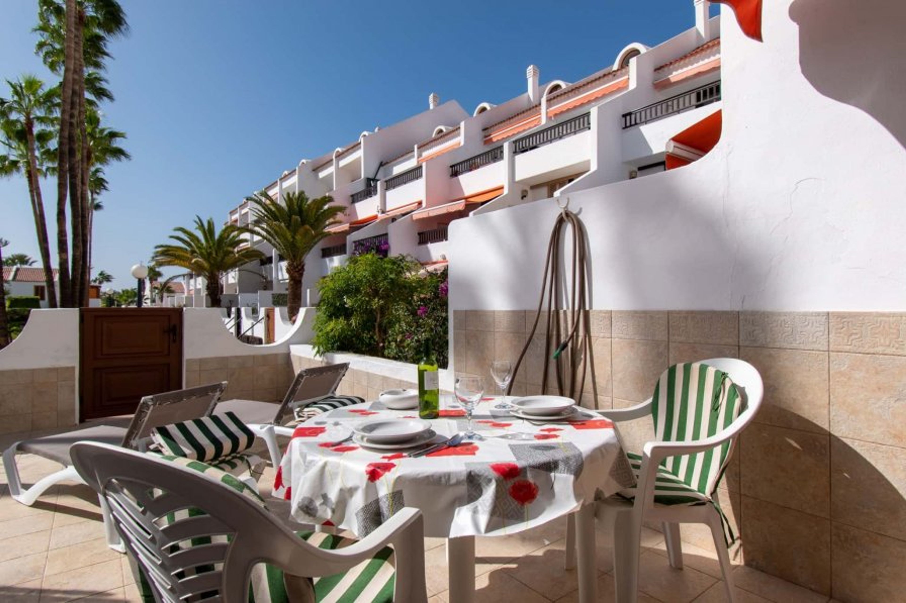 Charming 2-bed, 2-bath apartment in Parque Santiago II, Las Americas, Tenerife. Modern amenities, A/C, wifi, washing machine. Dual balconies with pool views for a delightful stay.