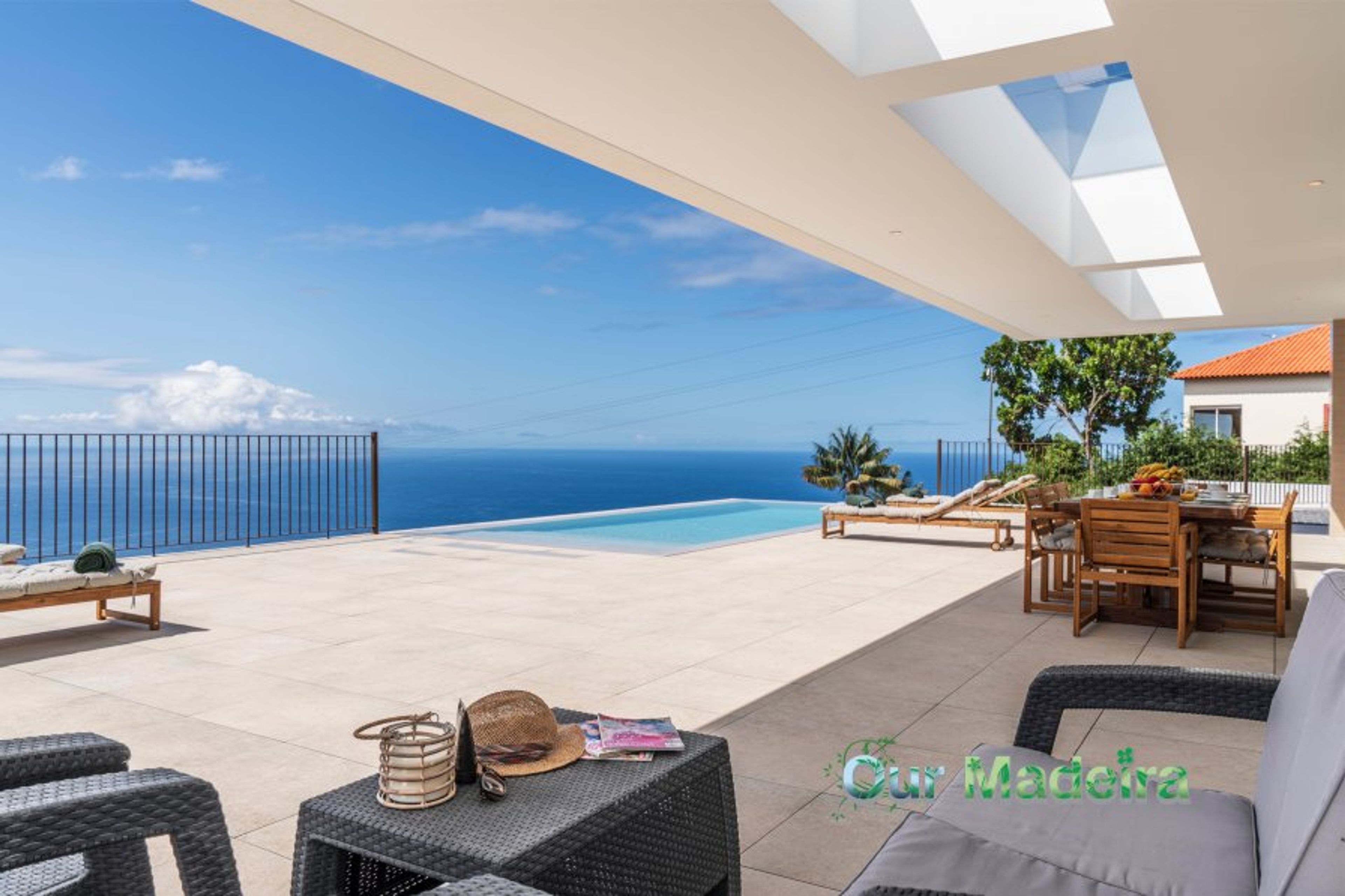 Located in a tranquil setting below Estreito da Calheta, the premium air conditioned Calheta Pearl is a contemporary, spacious 3 bedroom villa with breath-takingly beautiful views over the coast and sea.