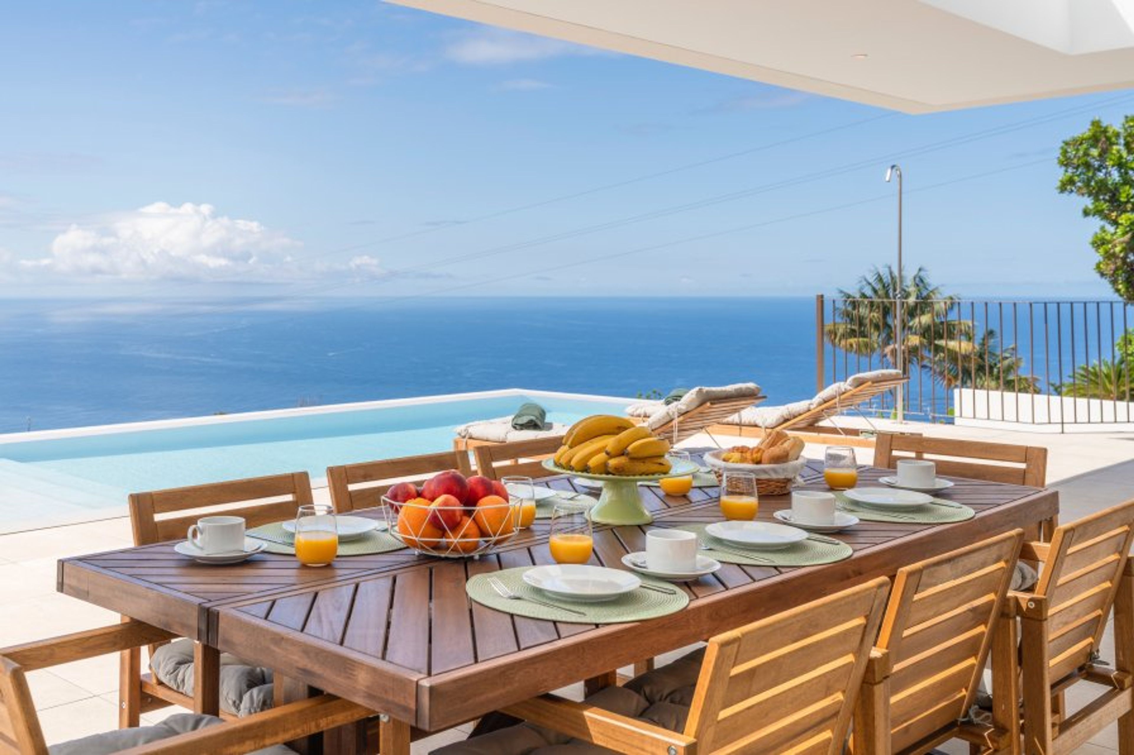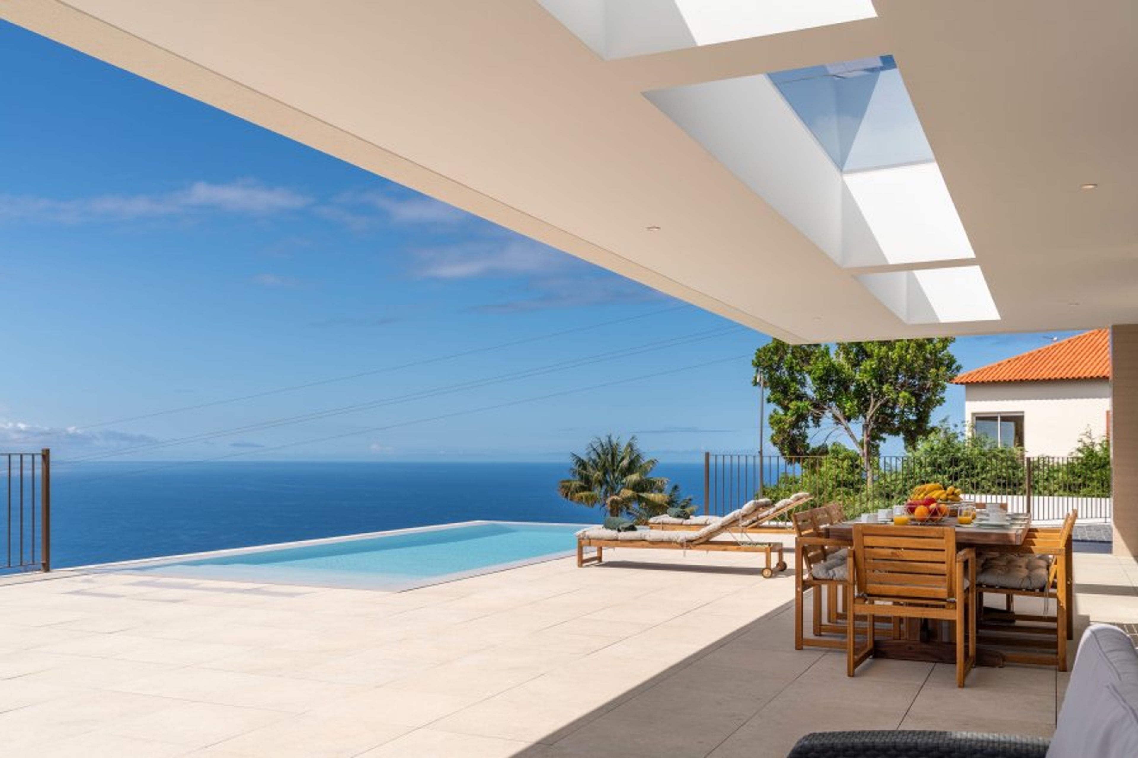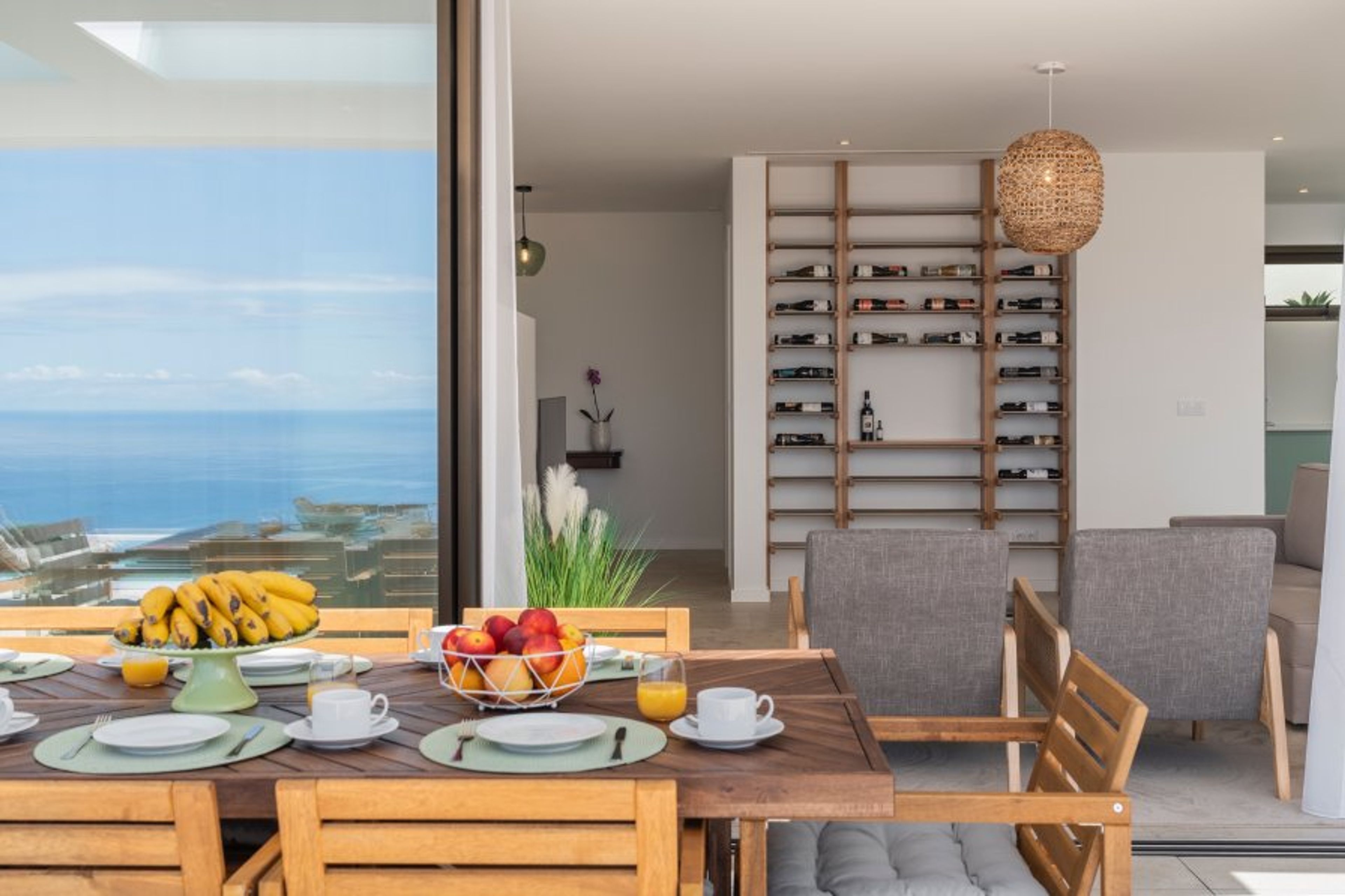 Large floor to ceiling picture windows not only allow you to appreciate those views day and night, but open wide to create an indoor/outdoor area with the pool terrace and deck, the outdoor dining table next to the built-in barbecue, and the sun-beds and umbrellas around the pool deck.