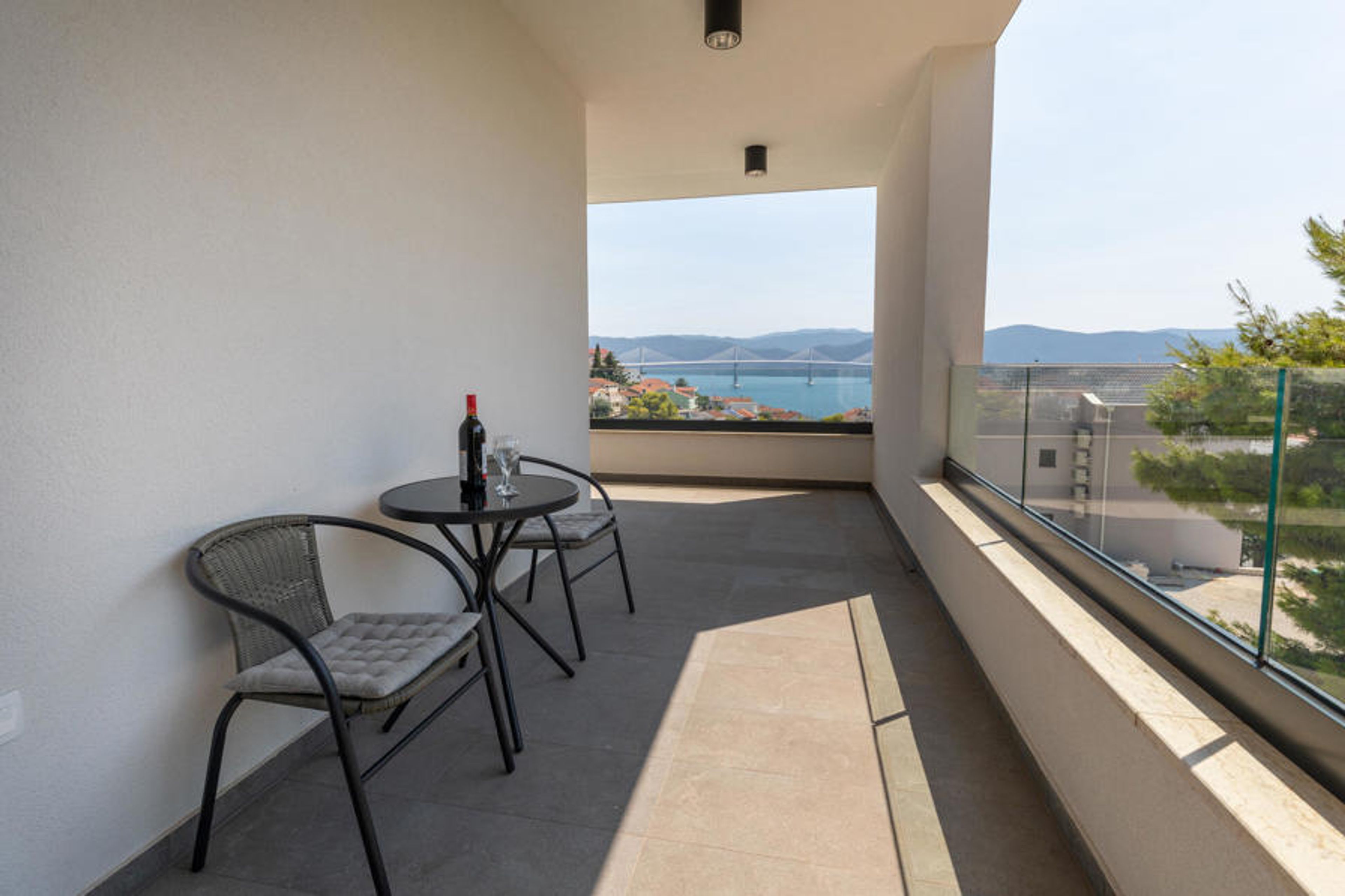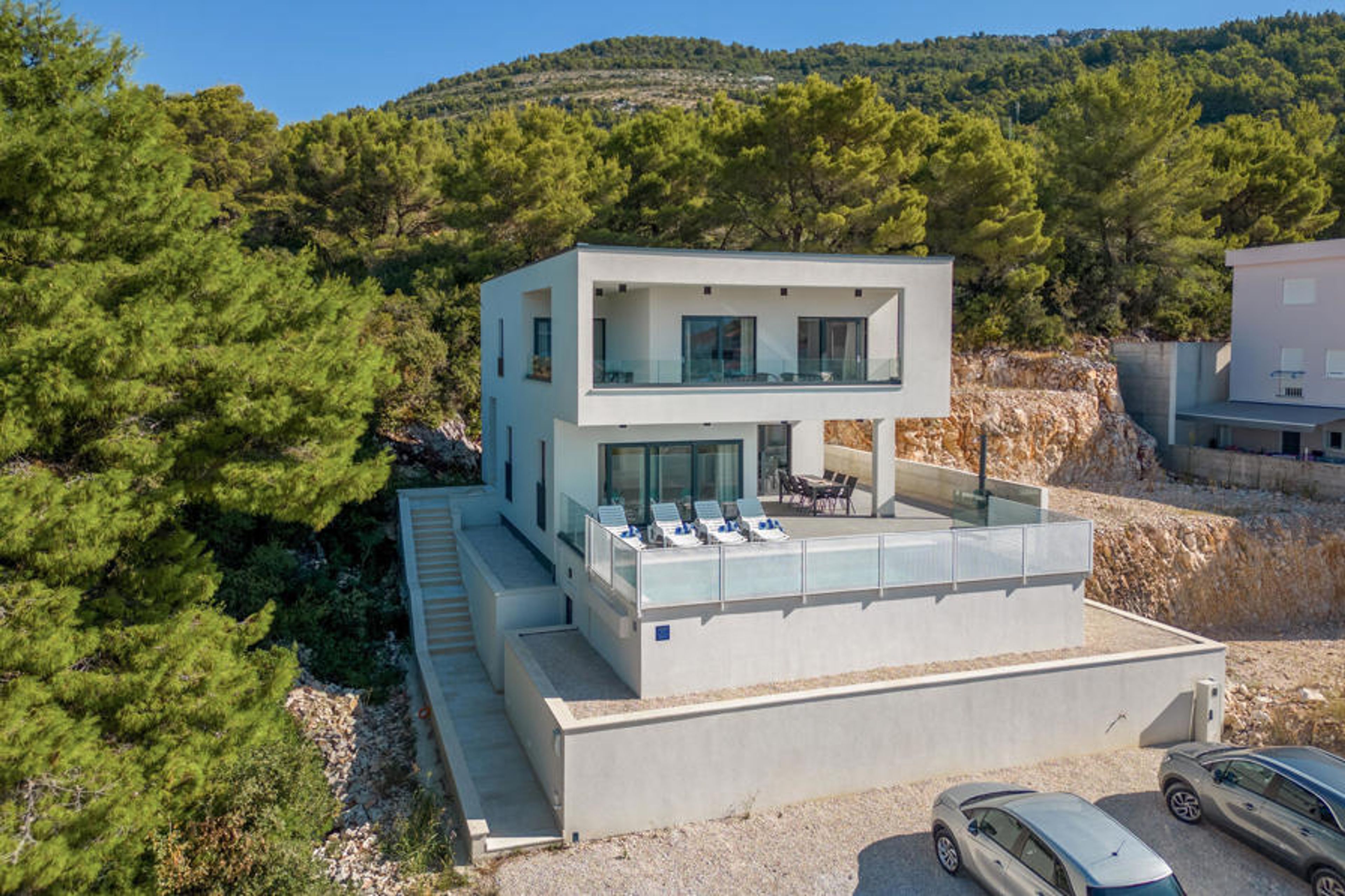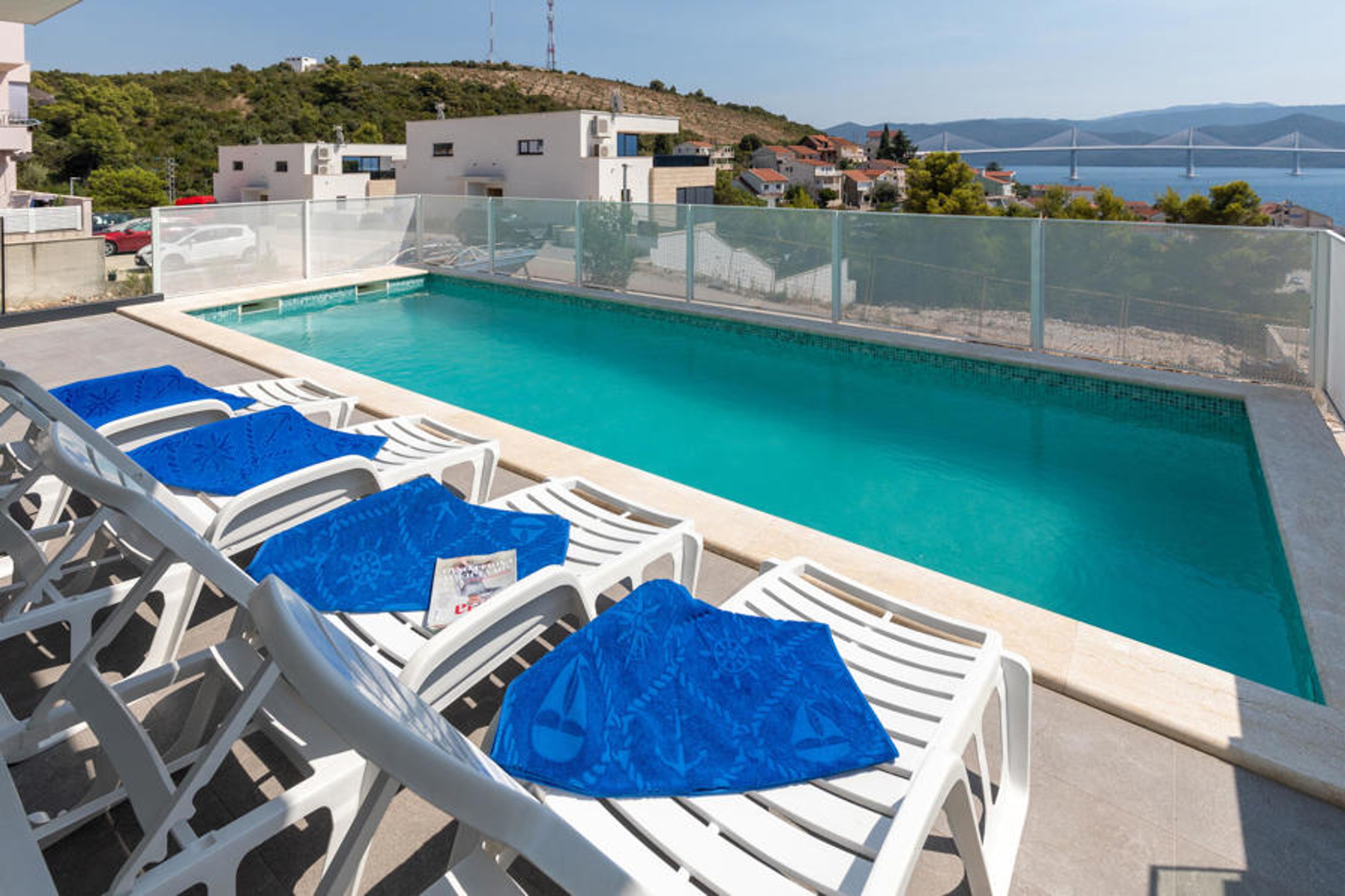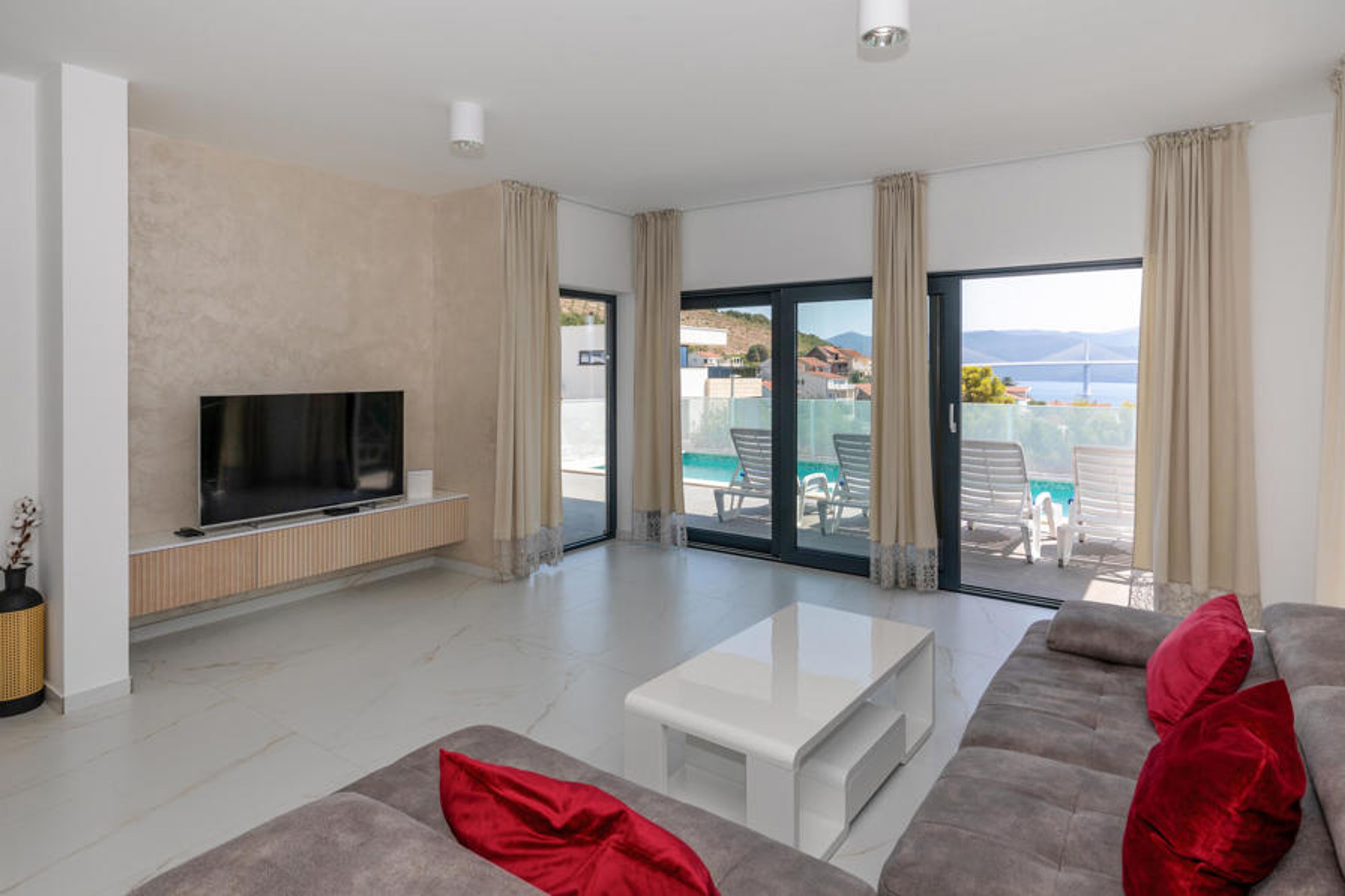 Enjoy the view of the sea and the Peljeac Bridge from this beautiful holiday home with pool.