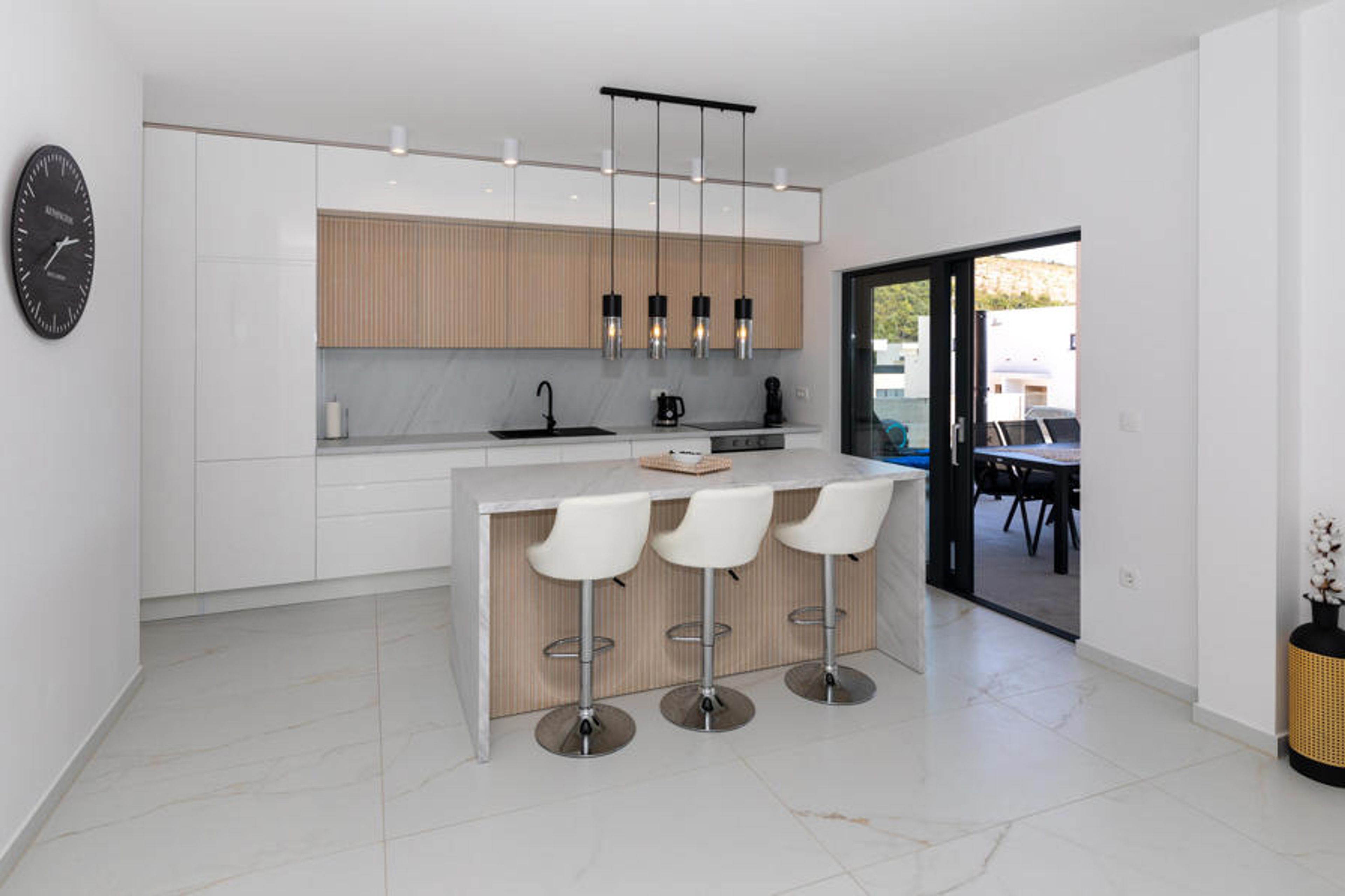 You can enjoy the marvellous view from the spacious balcony on the 1st floor or your terrace on the ground floor. Take advantage of the sun deck and pool to relax and get together in the evening for long, sociable hours of fun and games on the terrace.