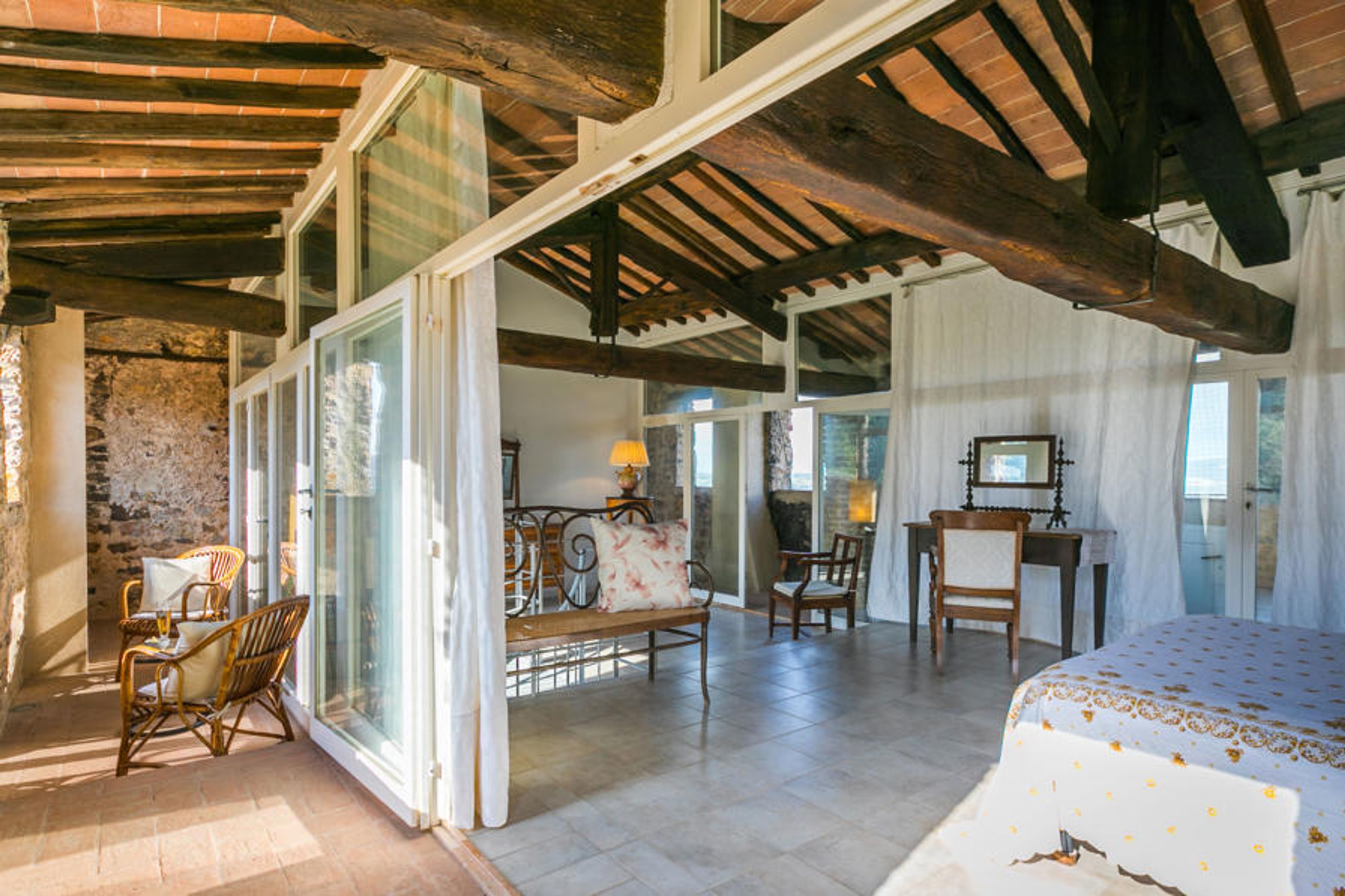 "Torre 4", 3-room penthouse 80 m2 on 2 levels on 3rd floor. Spacious and bright, tasteful and romantic furnishings: 3nd upper floor: open living/dining room with dining table and kitchen corner. 1 double bedroom. Kitchenette (oven, 3 gas rings, toaster, kettle, electric coffee machine) with TV (flat screen). Shower/bidet/WC. Top floor: (spiral staircase) open large, 1 double bedroom with panoramic window. Exit to the terrace. Natural stone floors. Terrace, patio. Terrace furniture, barbecue, deck chairs, box-room. Marvellous panoramic view of the countryside. Facilities: iron, mosquito net, children's high chair, baby cot for up to 2 year olds, hair dryer. Internet (WiFi, free). Parking (1 car) at the house. Please note: not suitable for small children. Non-smokers only. Maximum 1 pet/ dog allowed. No lift. IT052034C260NHXRVD