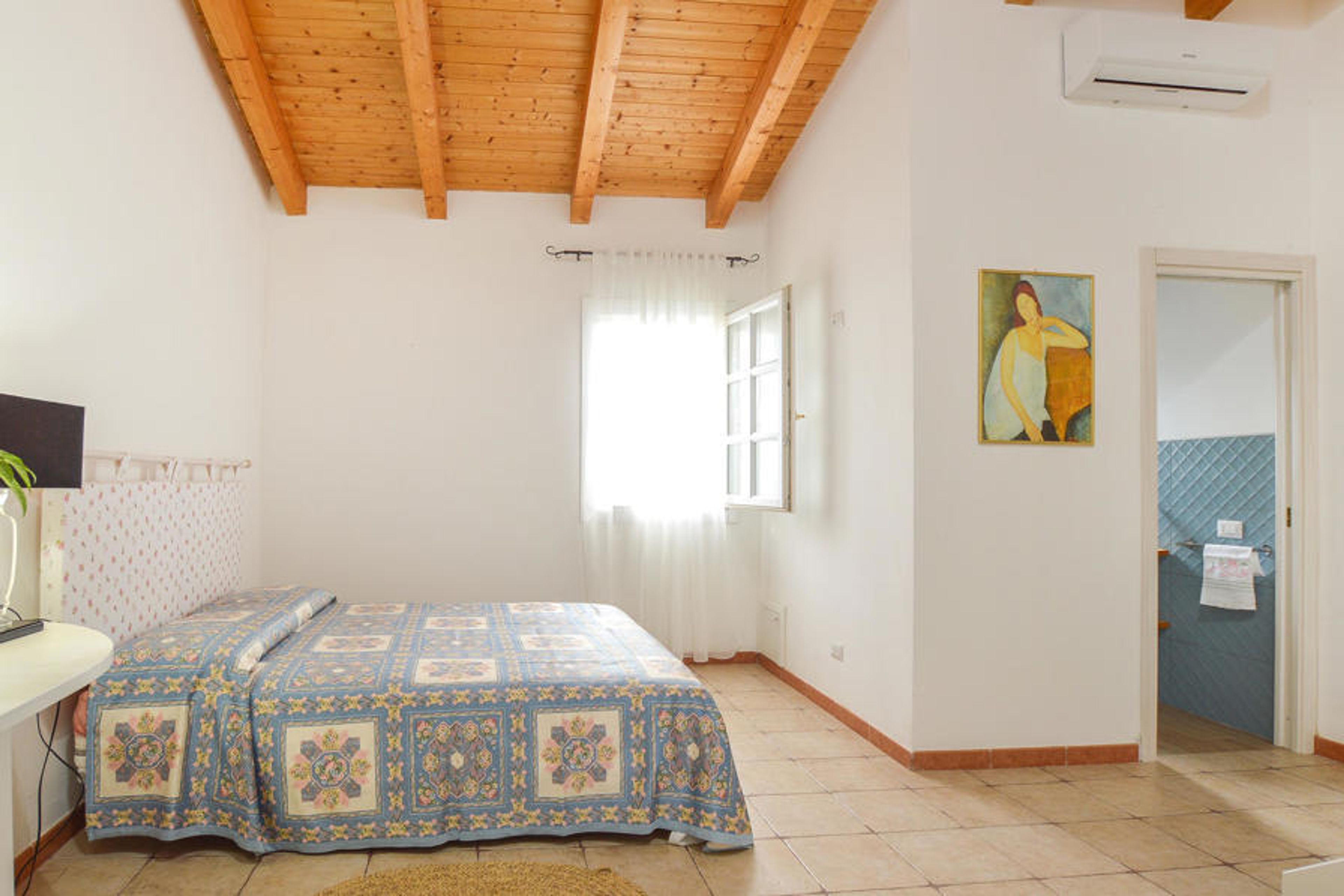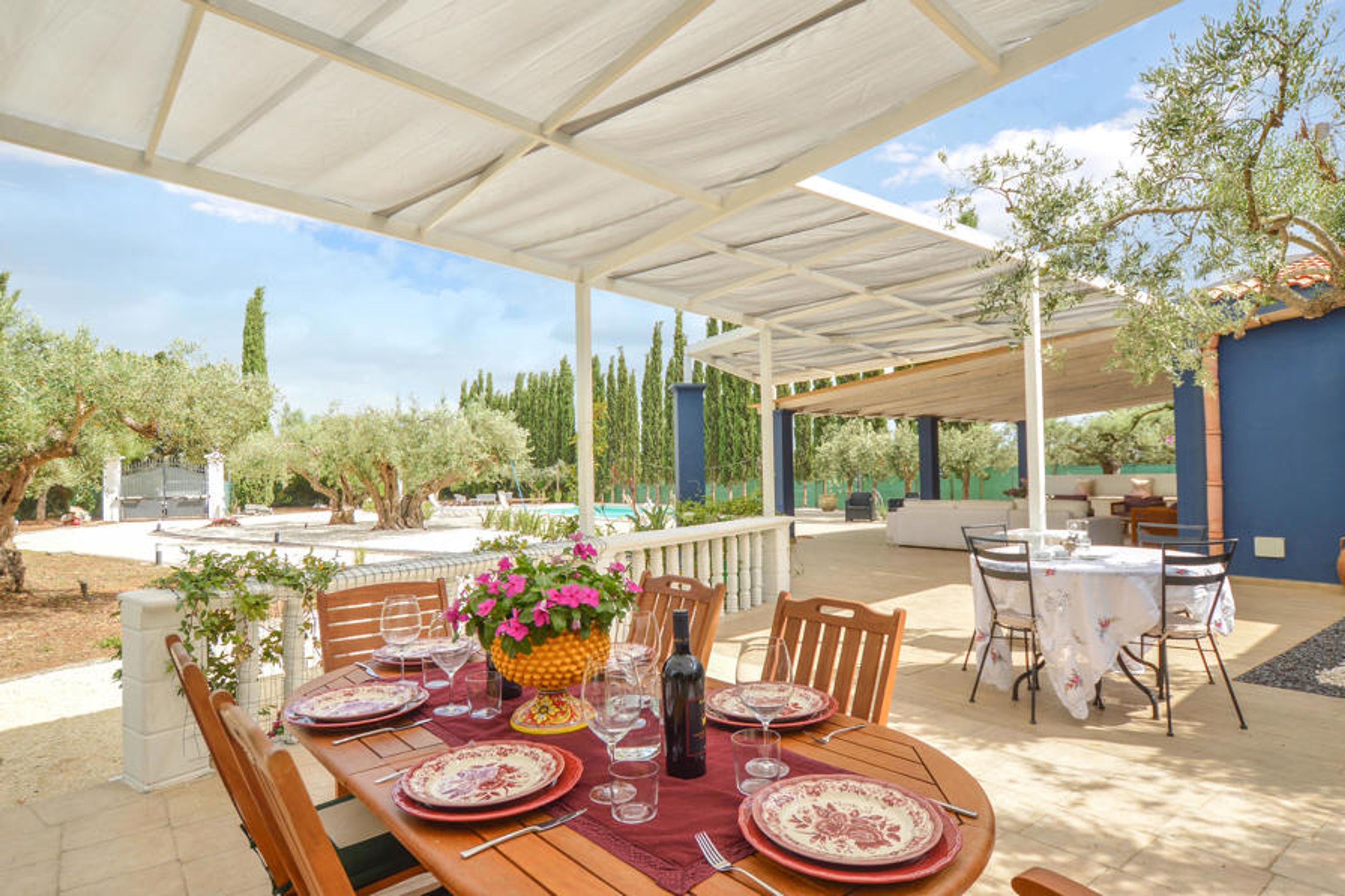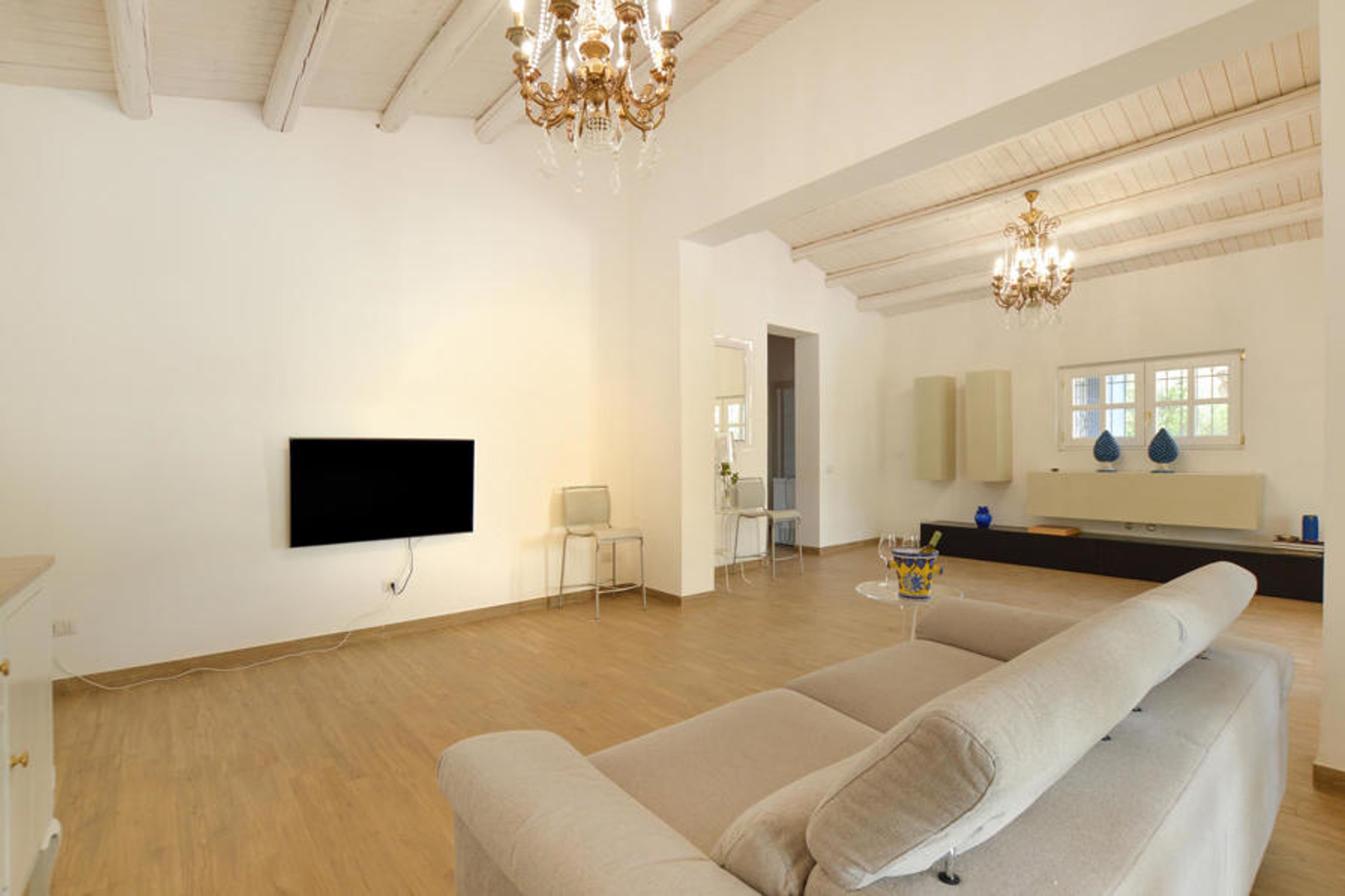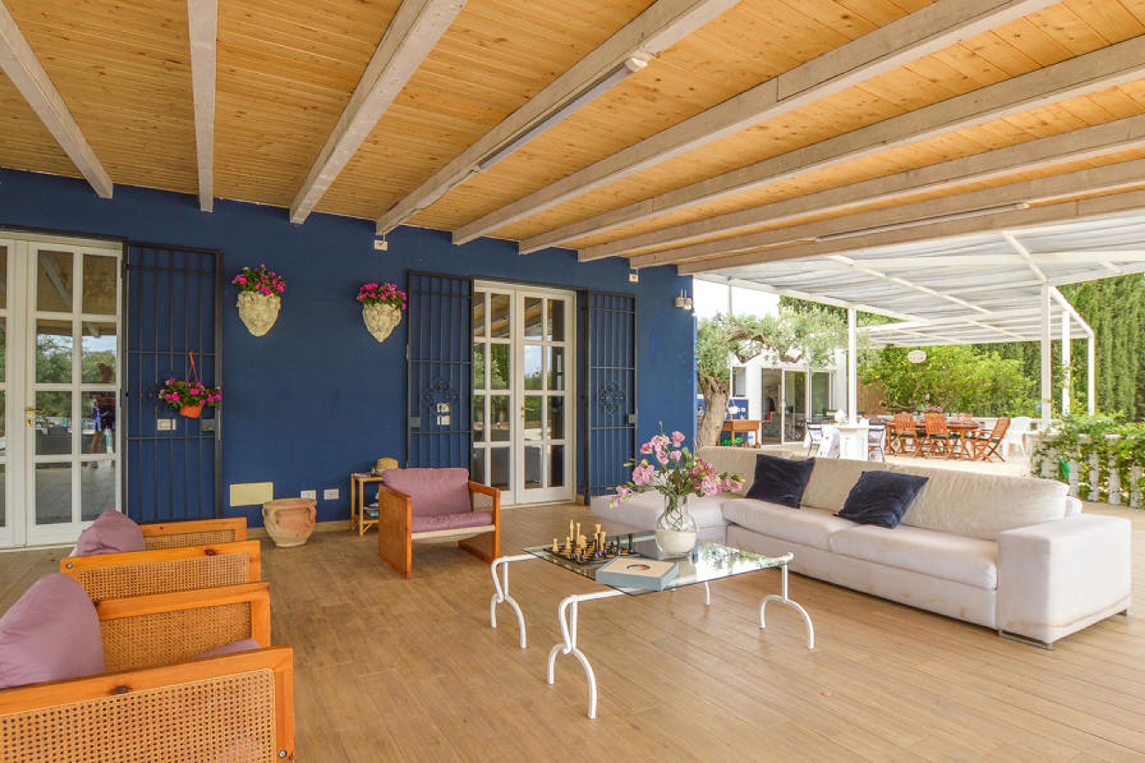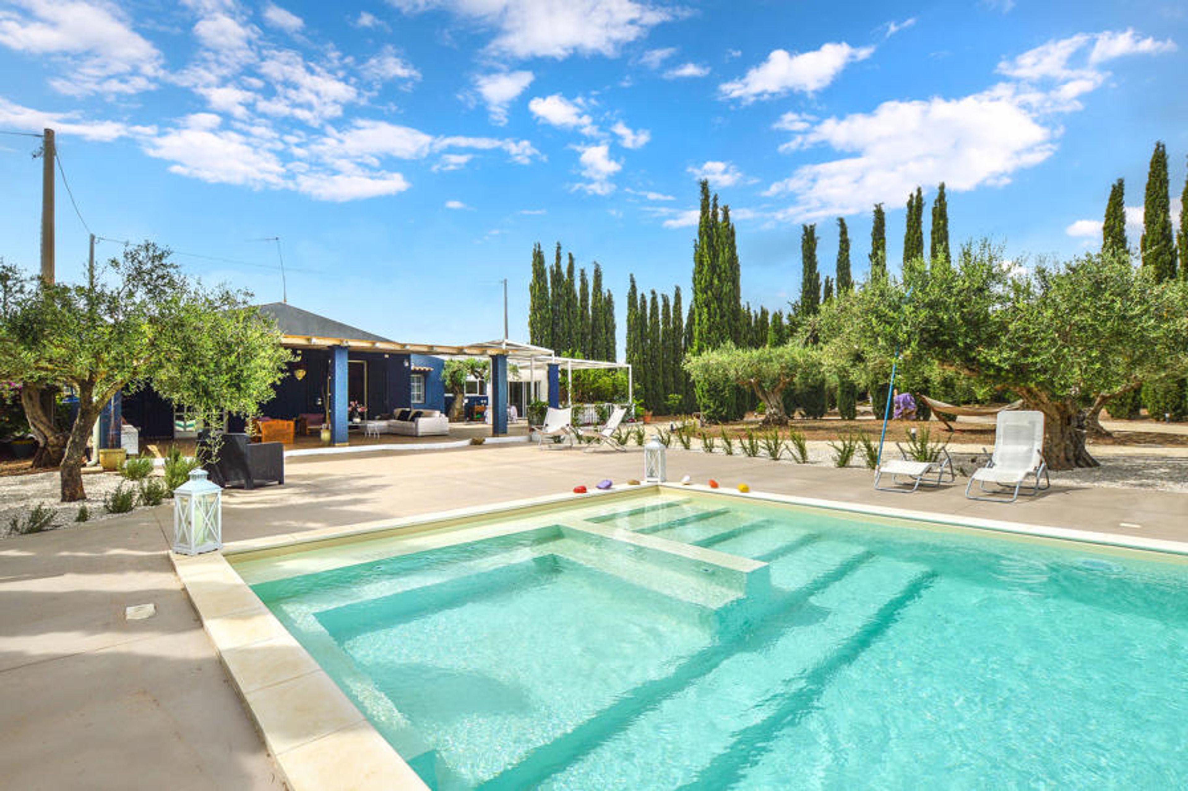 A few kilometers from the sea, this beautiful vacation home offers you a fantastic setting for your vacation. Bright design, high quality furniture and high ceilings create a coherent atmosphere that makes it easy for you to make this vacation home your second home. Step outside to the large veranda and covered terrace, where you can read a book in peace or get together for a barbecue. In the garden you will find olive trees and cypresses as well as a large swimming pool, which will promise you a lot of swimming fun.
