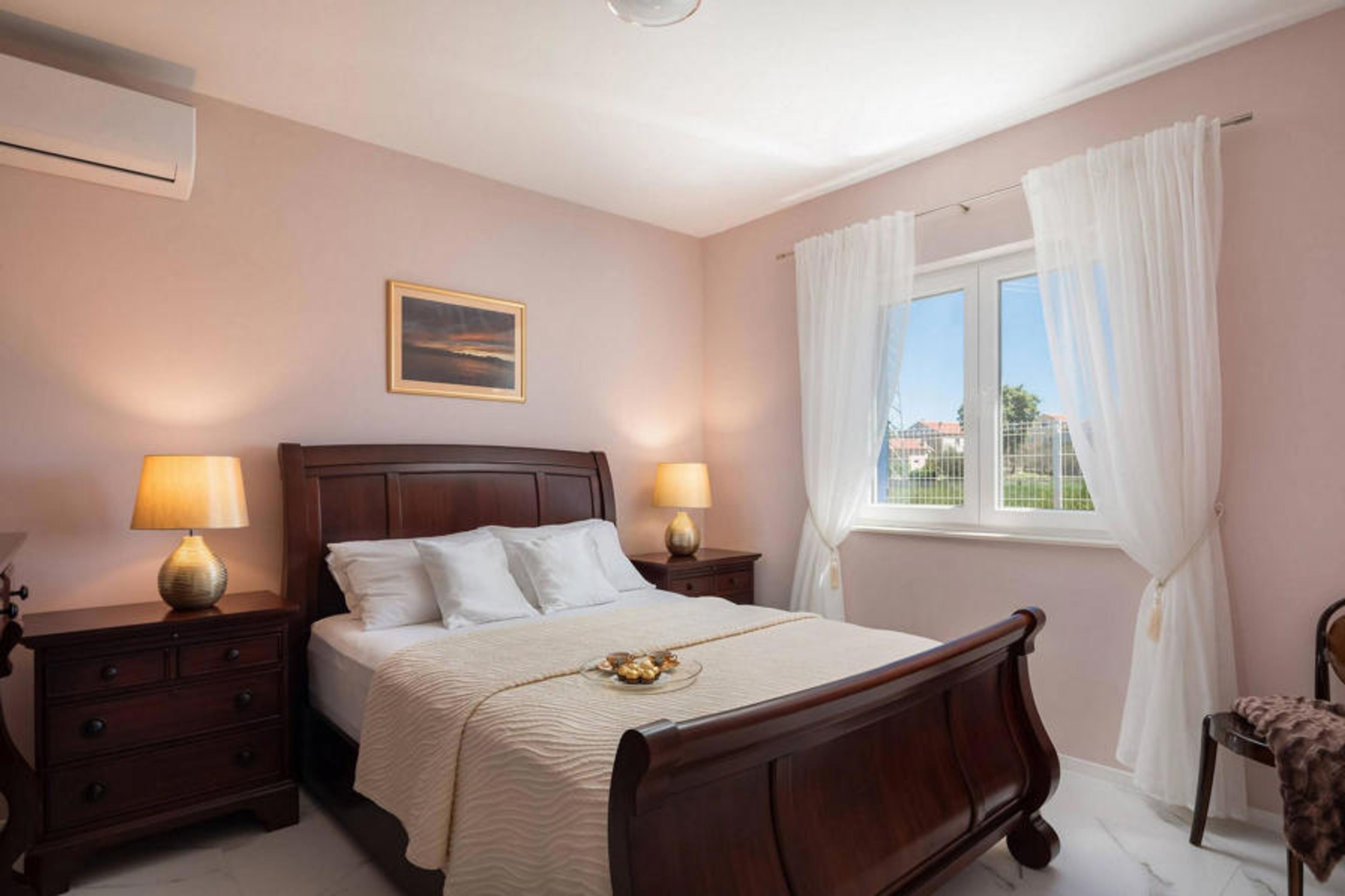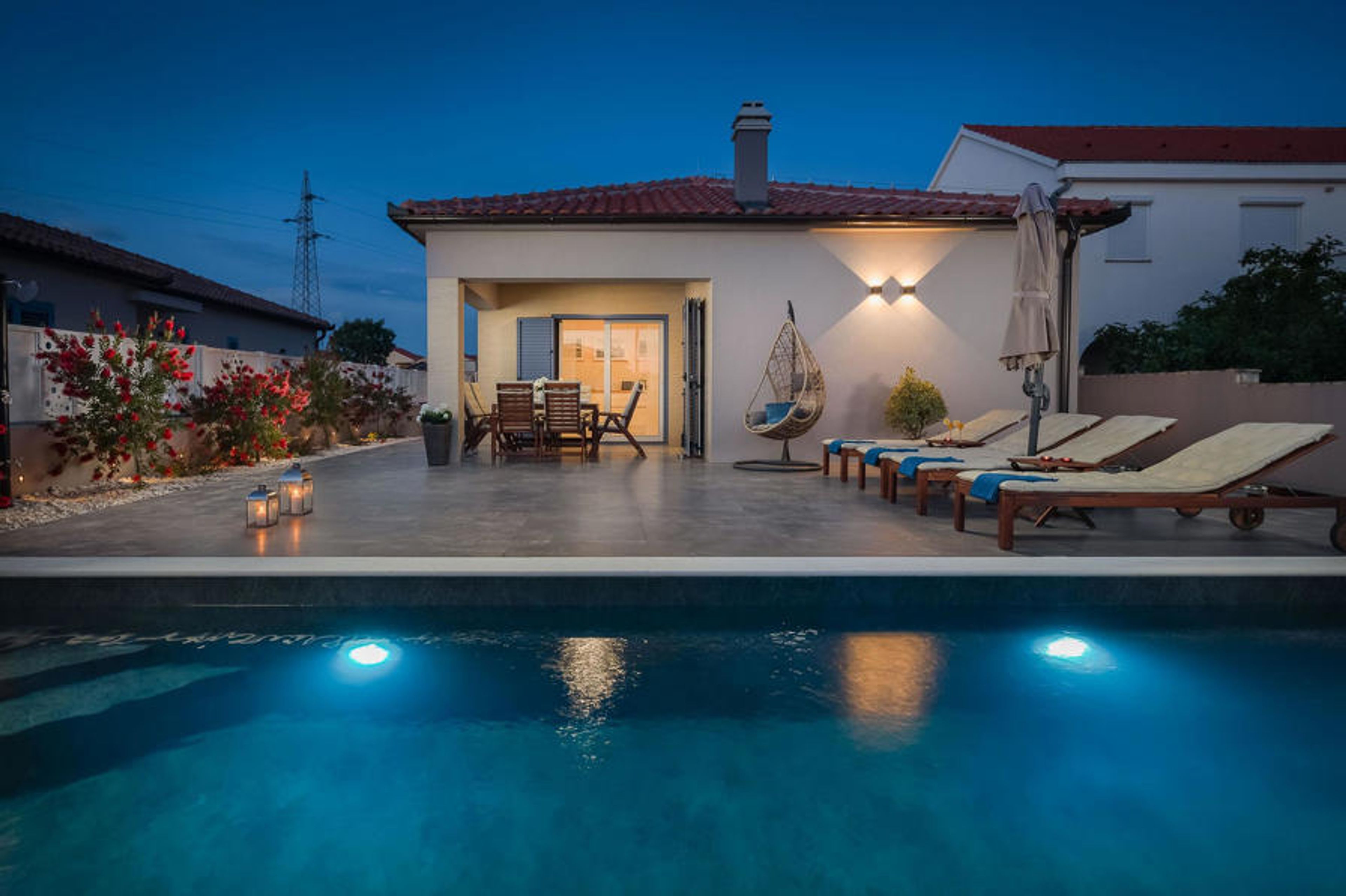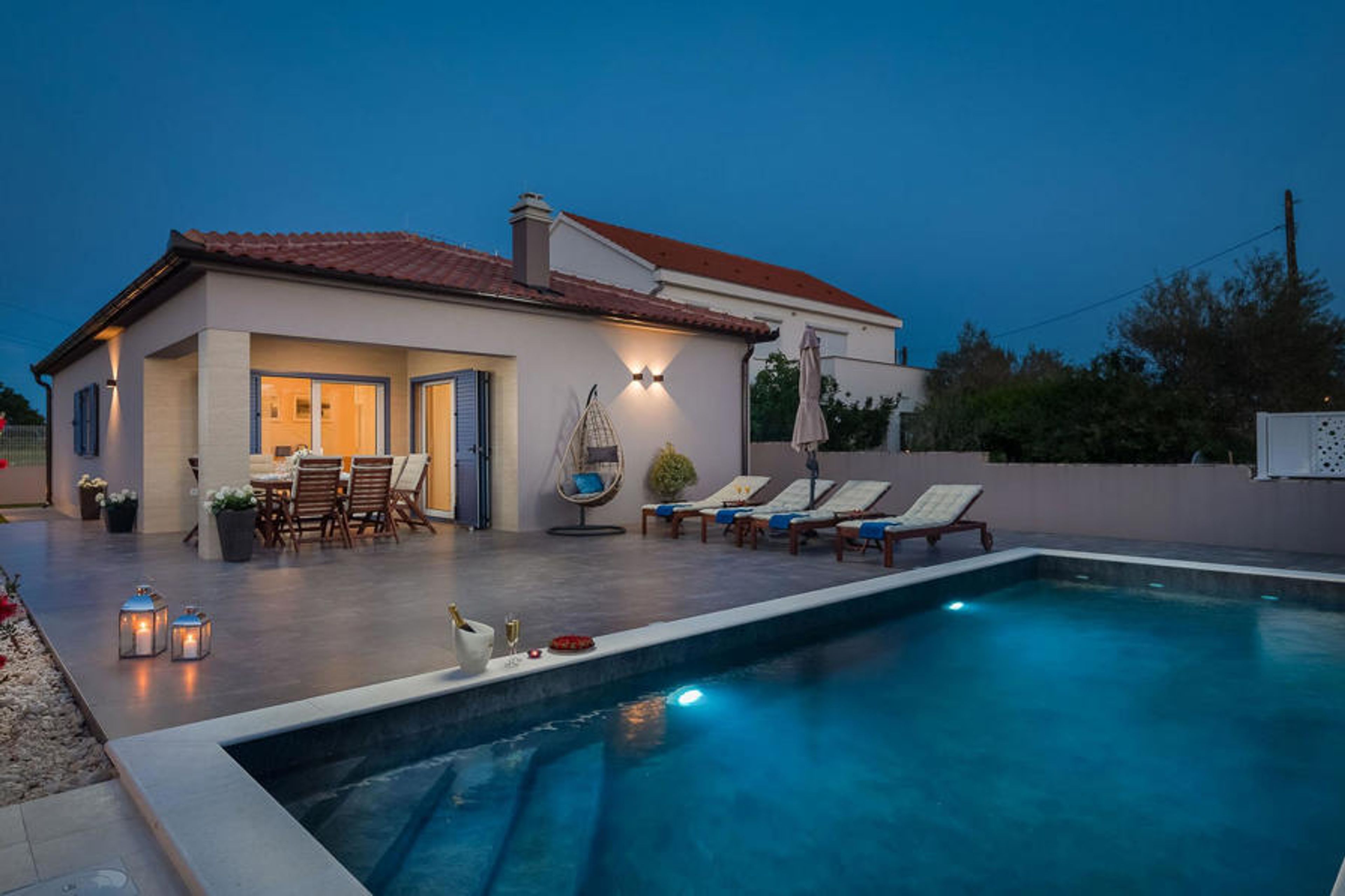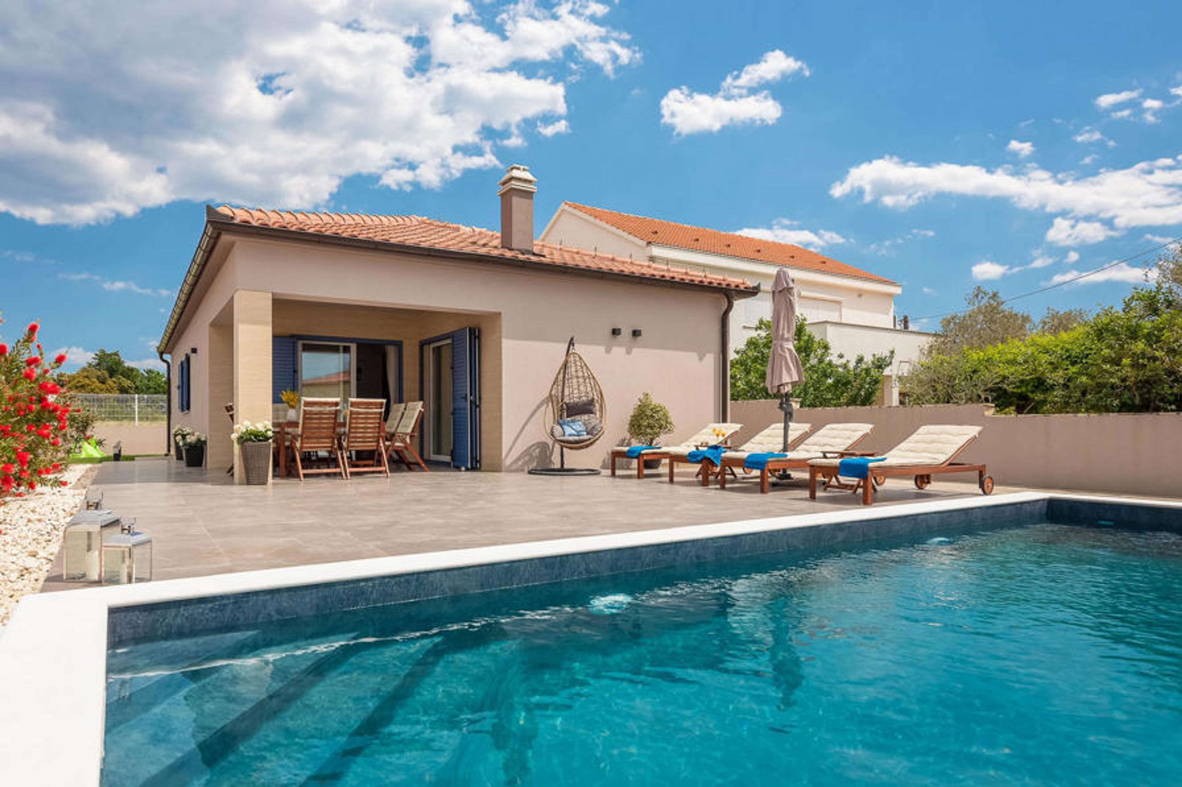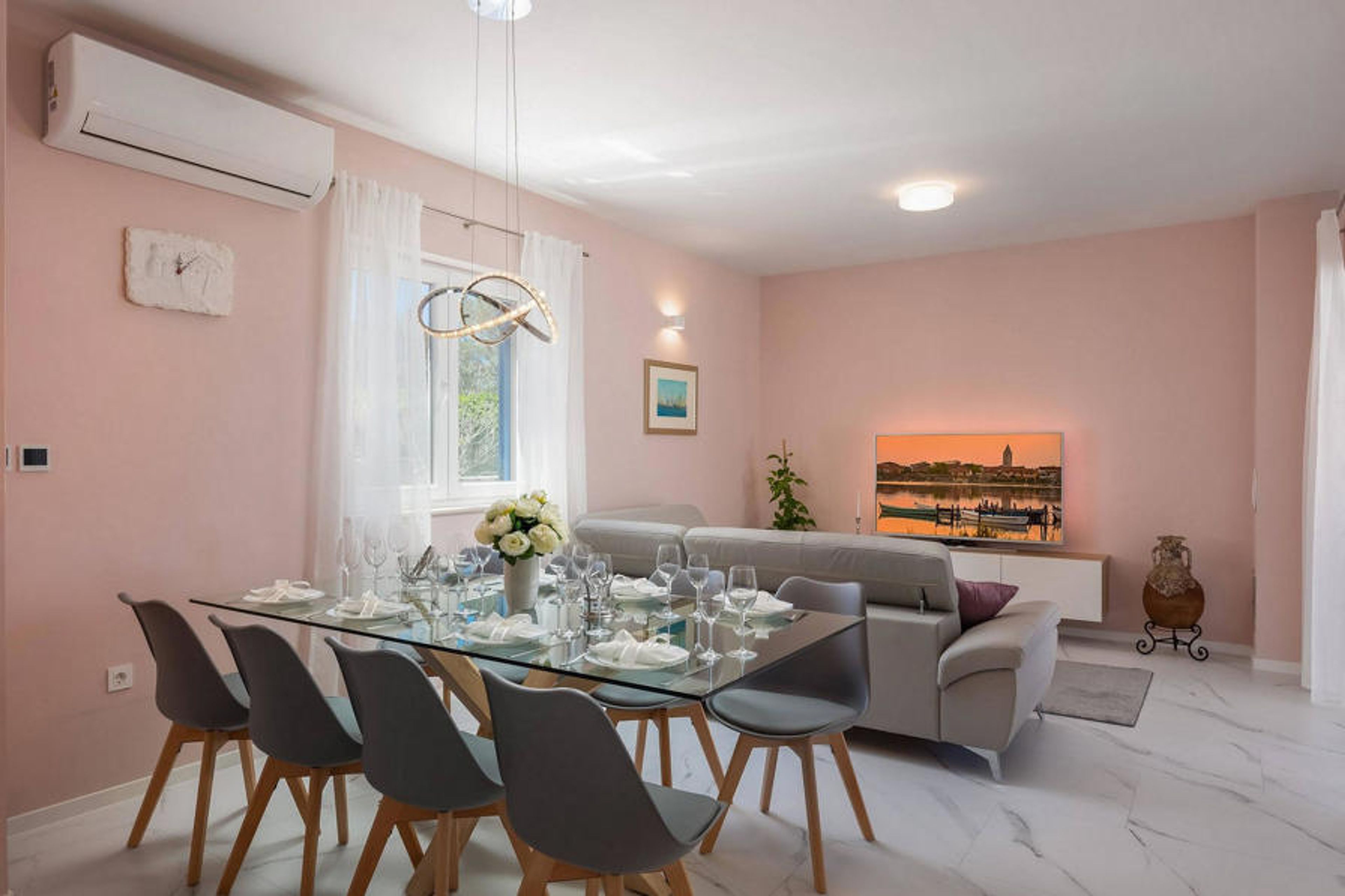 The modern-style luxury villa Karla Nin is located in the picturesque town of Nin and promises relaxing days not far from the coast and attractive excursion destinations. Conjure up culinary highlights in the modern kitchen, take a seat at the stylishly laid dining table and enjoy the bright and pleasant atmosphere with good conversation on the sofa.