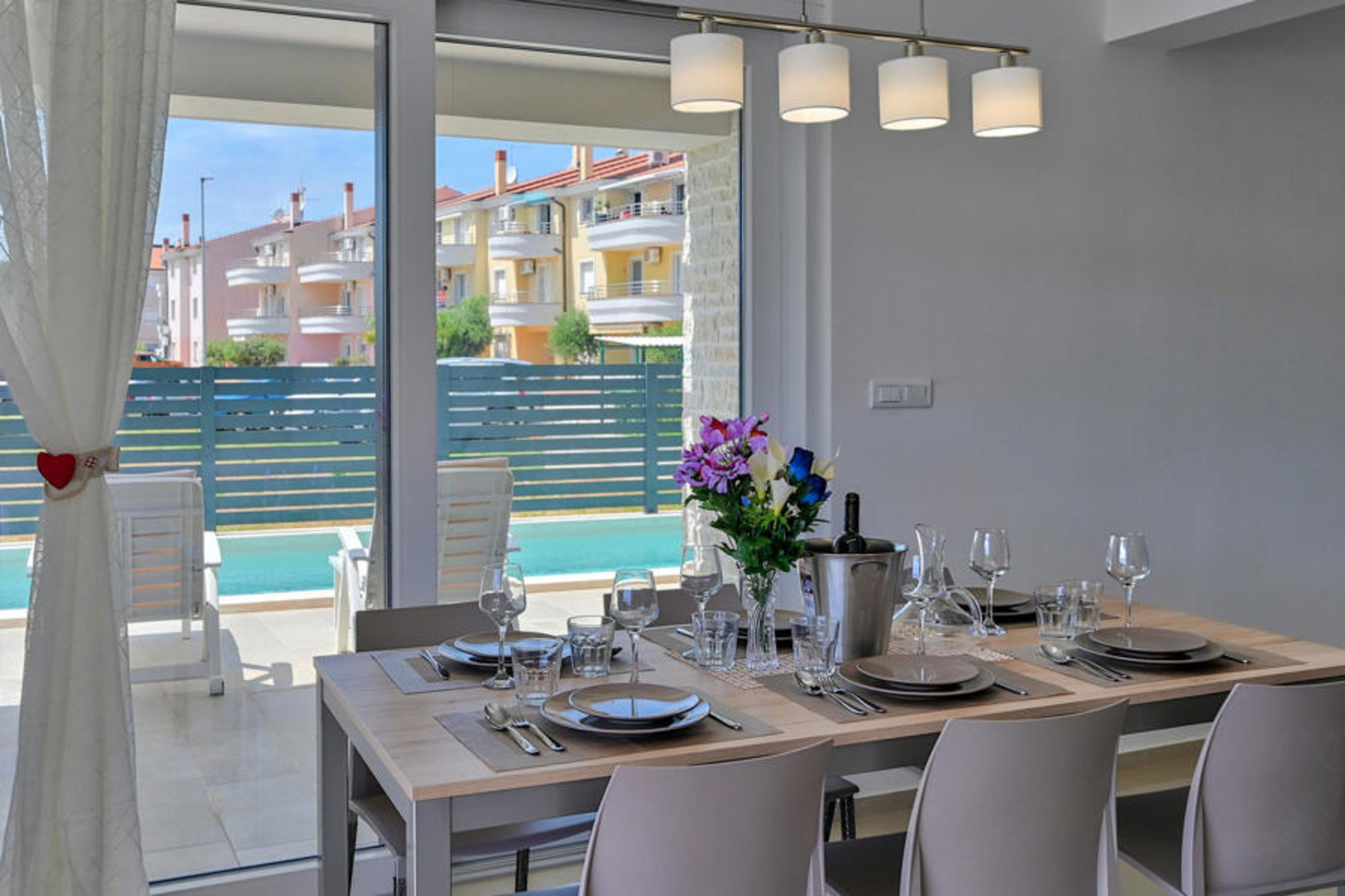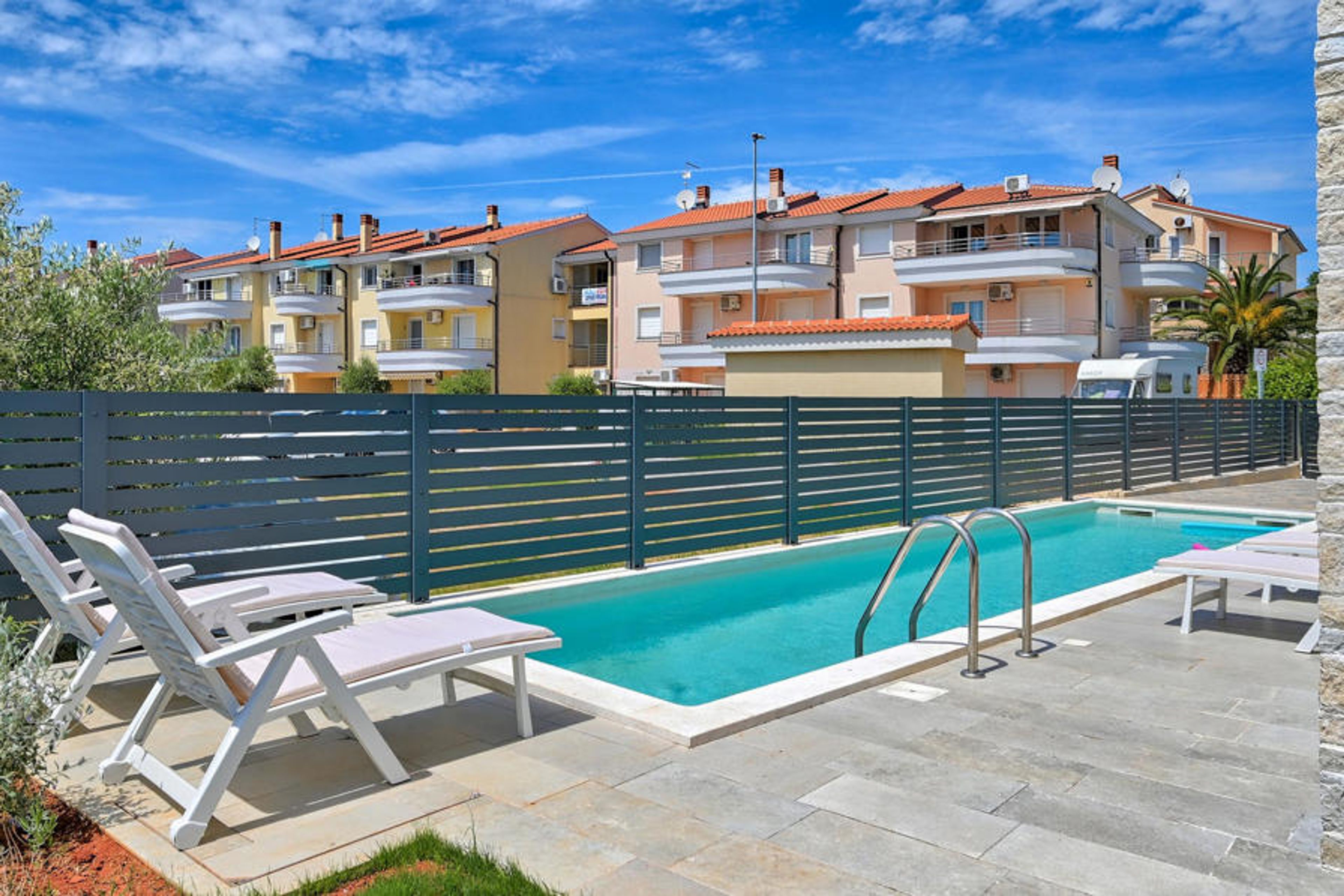 It will never be easier to prepare delicious meals because you have a modernly equipped and spacious kitchen, a living room with a sofa, table and TV, and a dining room with a table for 6 people from which you can see the outdoor terrace and pool. The terrace includes an outdoor dining table for 6 people, an outdoor grill and a green area that gives a special visual atmosphere. The 26 m2 pool allows you to cool off during the day or night in complete privacy because Villa Medulin 1 is completely fenced. On 6 deck chairs you can relax and enjoy a pleasant sunbathing. Villa Medulin 1 opens its doors to you throughout the year, so you can visit it whenever it suits you and your loved ones!