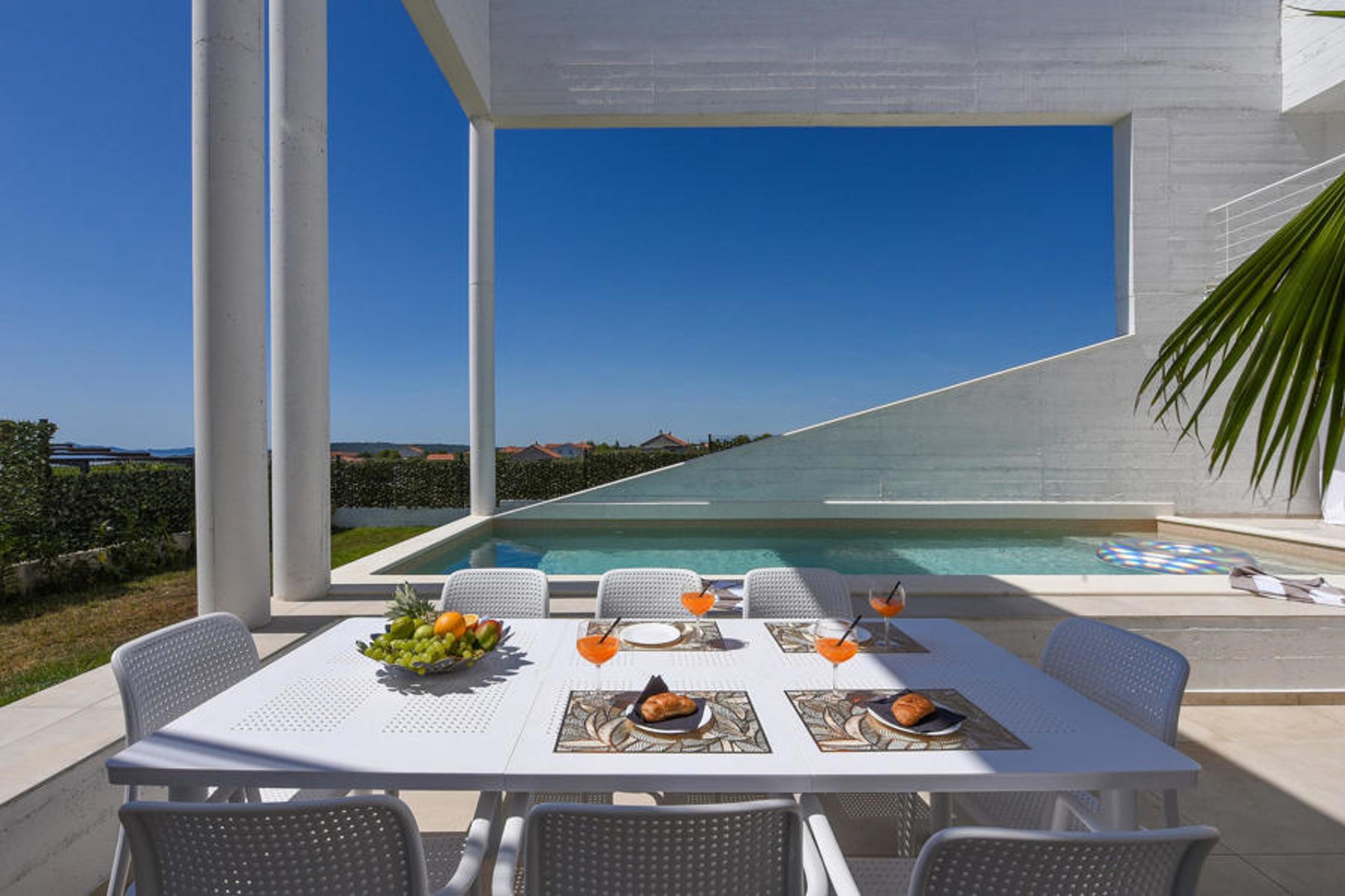 Unique and very modern villa Dante, with a beautiful sea view, is located in a quiet location in the small town of Debeljak near Zadar and is ideal for your dream holiday. Contemporary construction, stylish simplicity and a spacious exterior with a large swimming pool are the features of this luxury villa that invites you to relax in the perfect holiday.