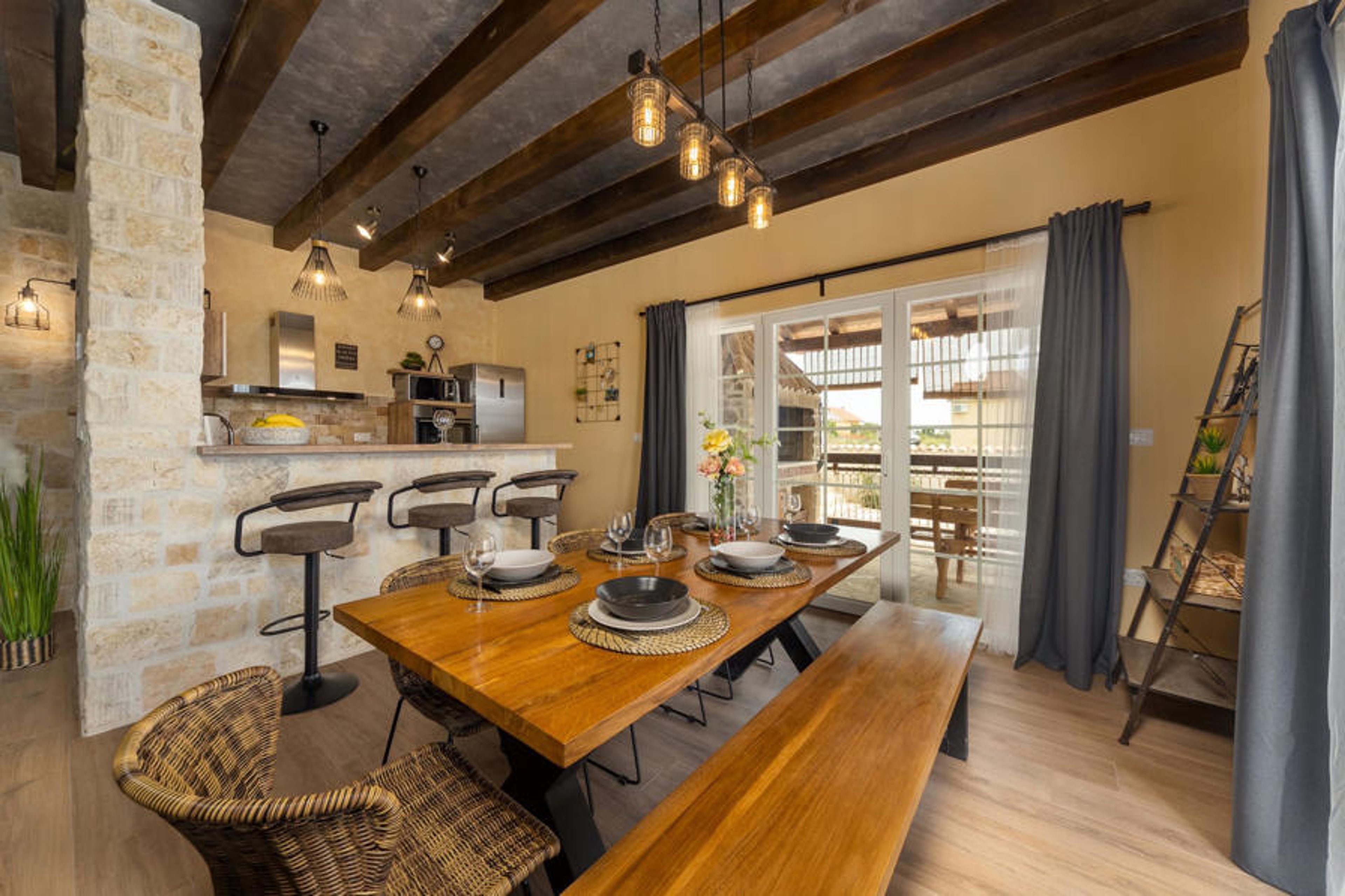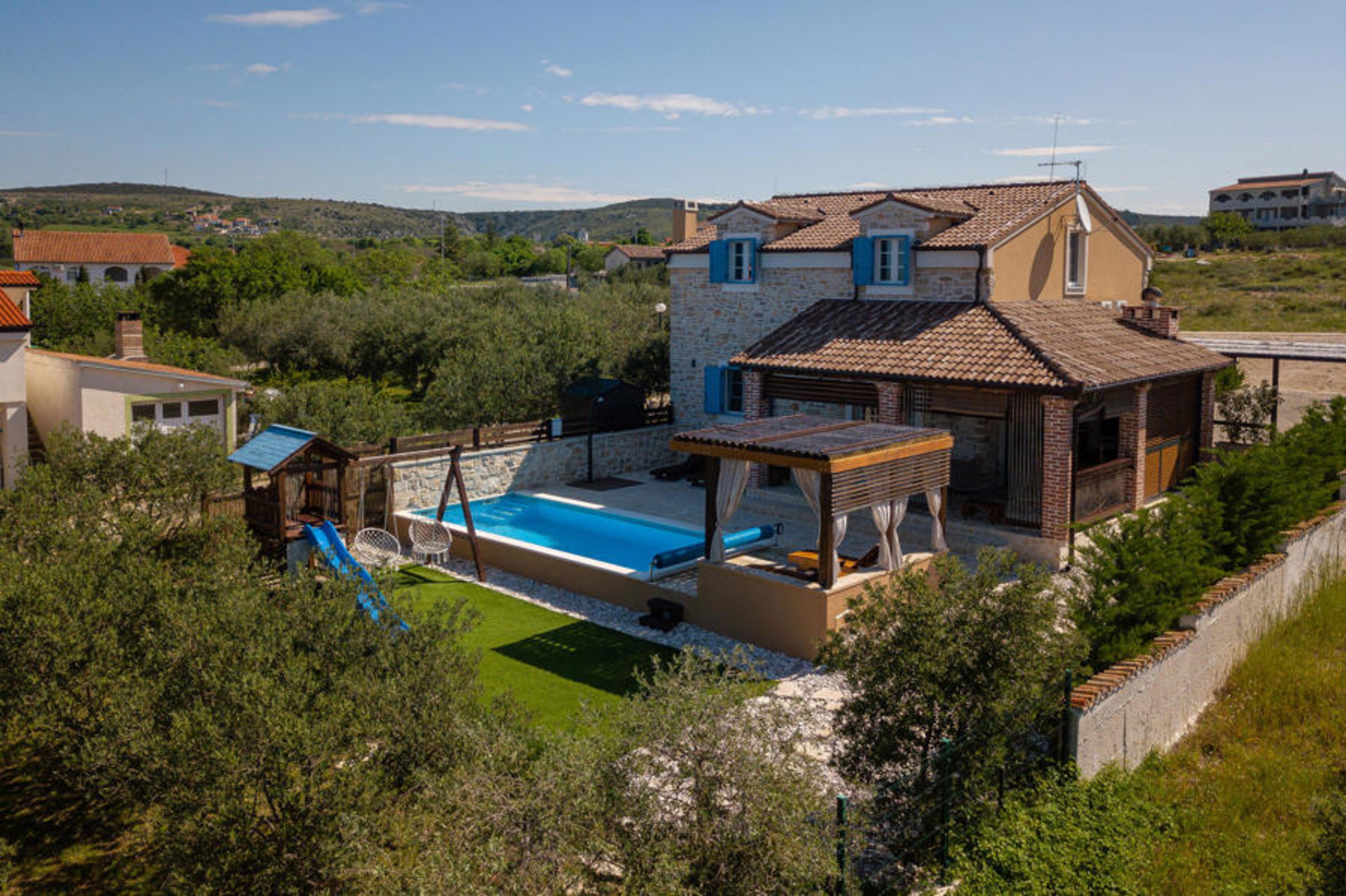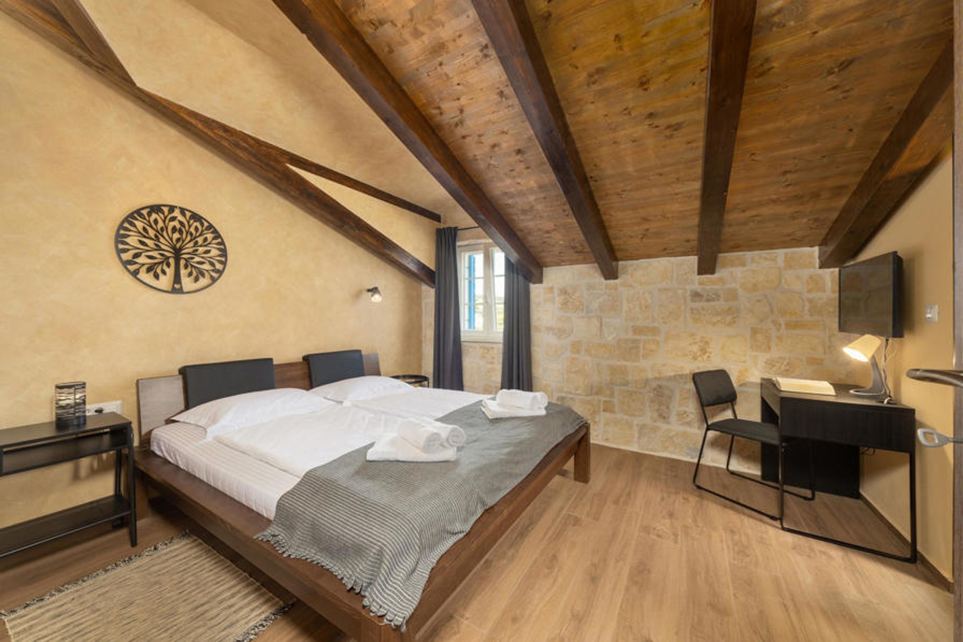 The beautiful Villa Stella del Lago owes its name to its proximity to the enchanting Lake Vrana and its idyllic nature park. Step inside and soak up the harmonious, rustic atmosphere where you can relax with the whole family. Lots of wood and natural stone, pleasant lighting and tasteful furniture create an ambience in which you will feel at home from day one. Plan your activities at the inviting dining table, compete at the foosball table or darts board and round off a long day with a cosy games evening.