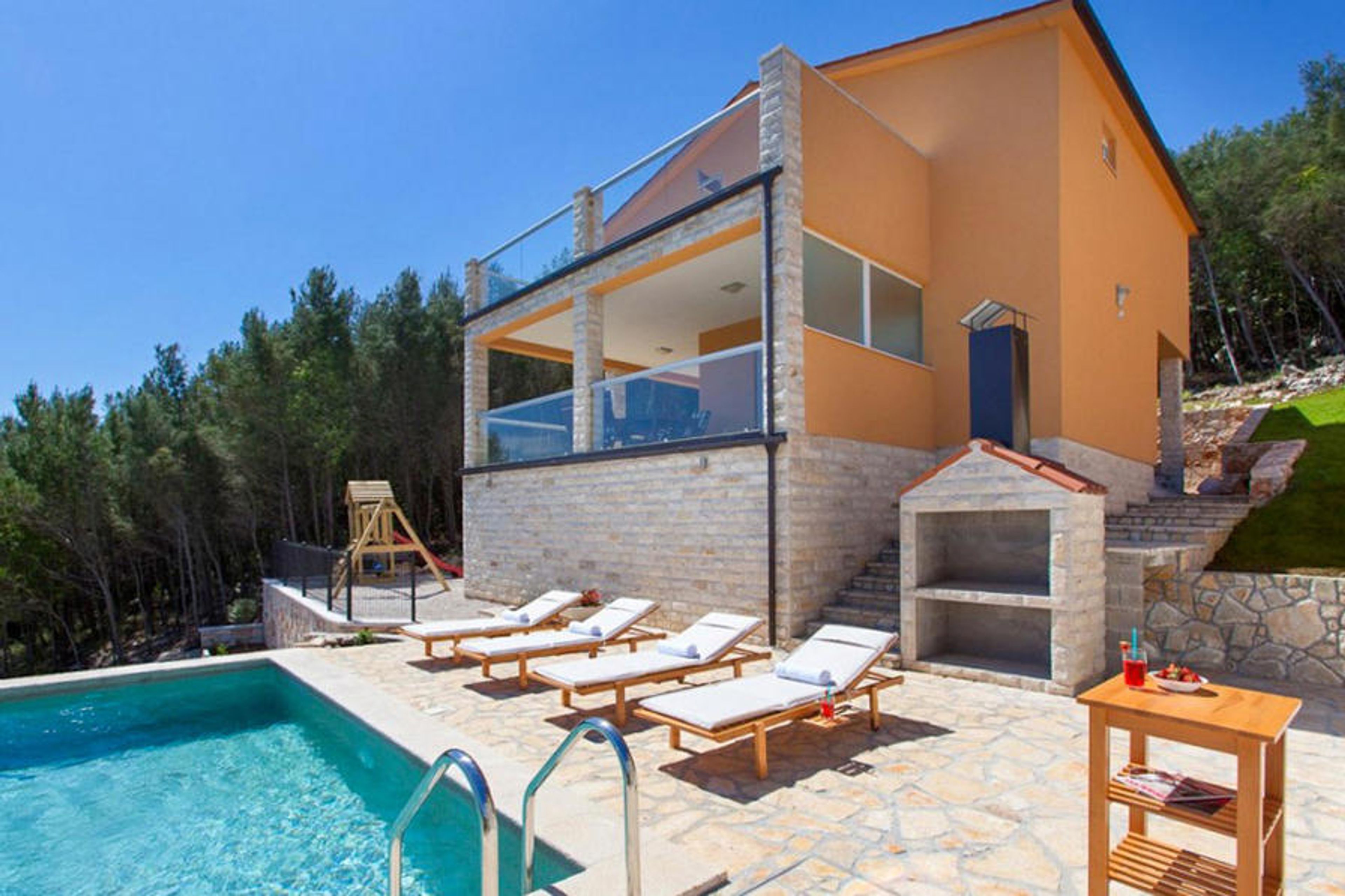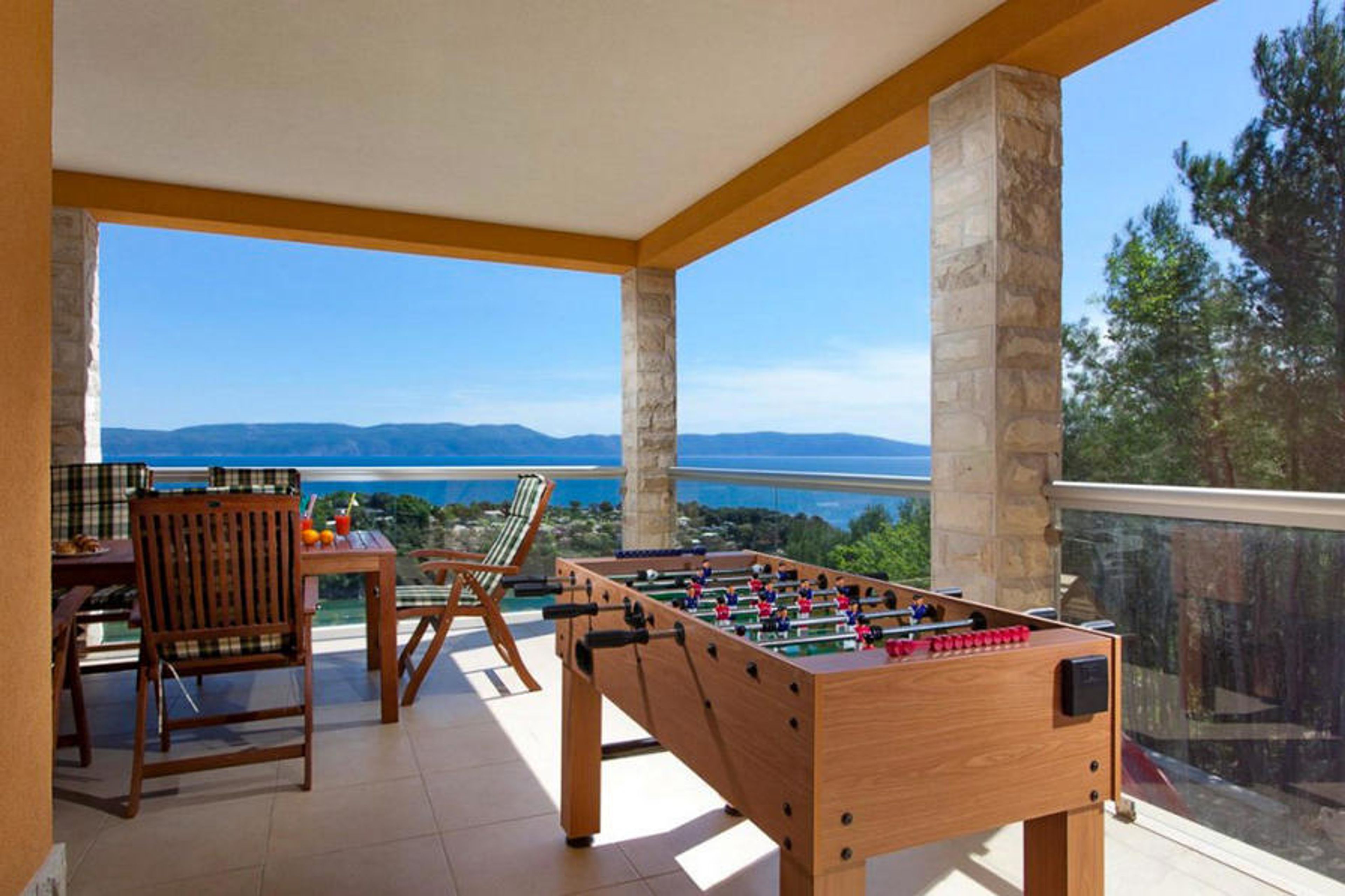 There is a lovely outside barbecue where guests can prepare fresh dishes every day, alongside a nice playground for children. Villa Marina also has a beautiful heated swimming pool in the garden where you can relax with a glass of quality autochthonous Istrian wines, and you can have fun playing table tennis and table football if you're in need of a little activity. Restaurants and shops with a fantastic offer are just 300m away from the villa. If you're in need of an amazing holiday, choose Istria and Villa Marina!