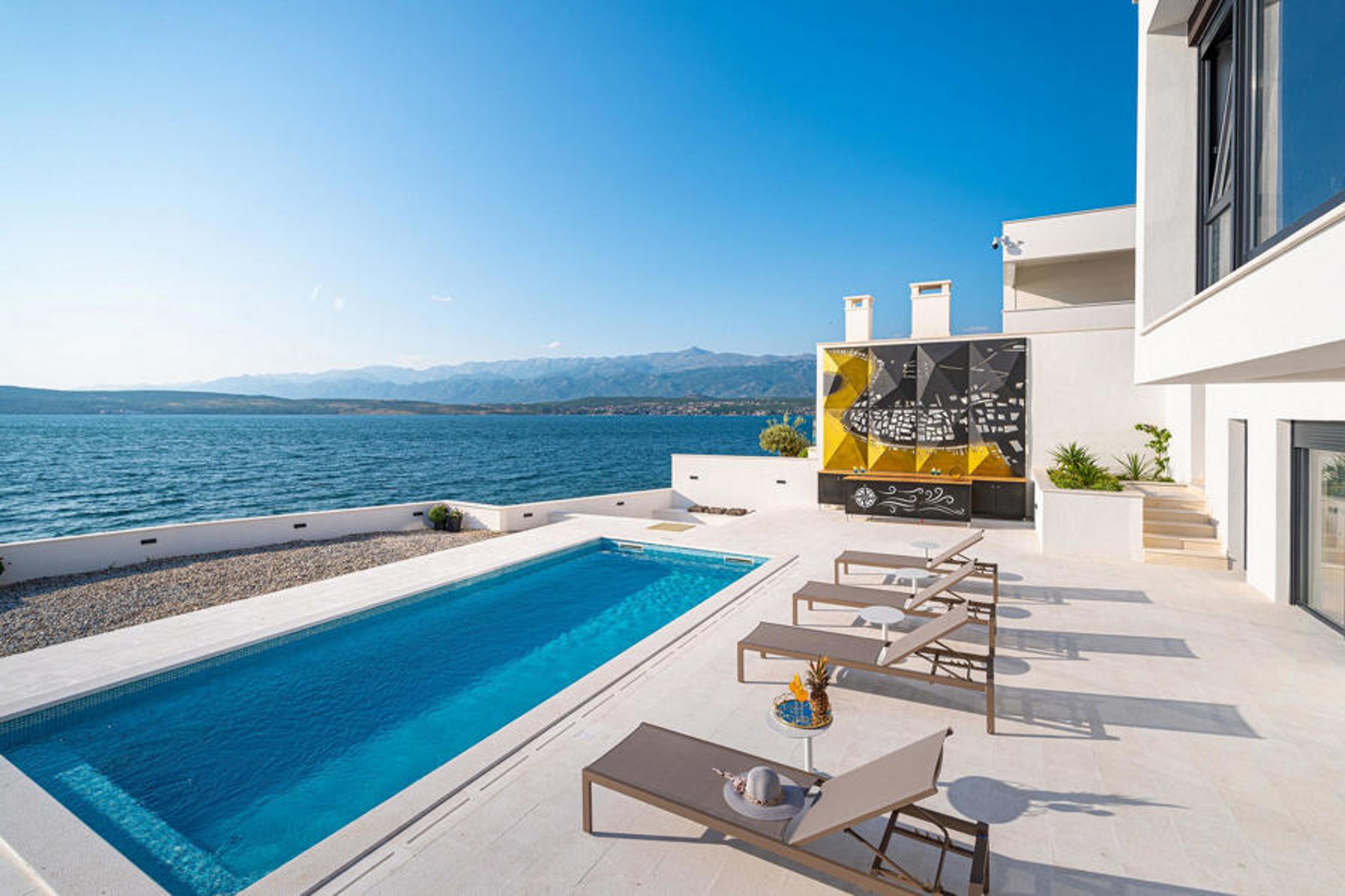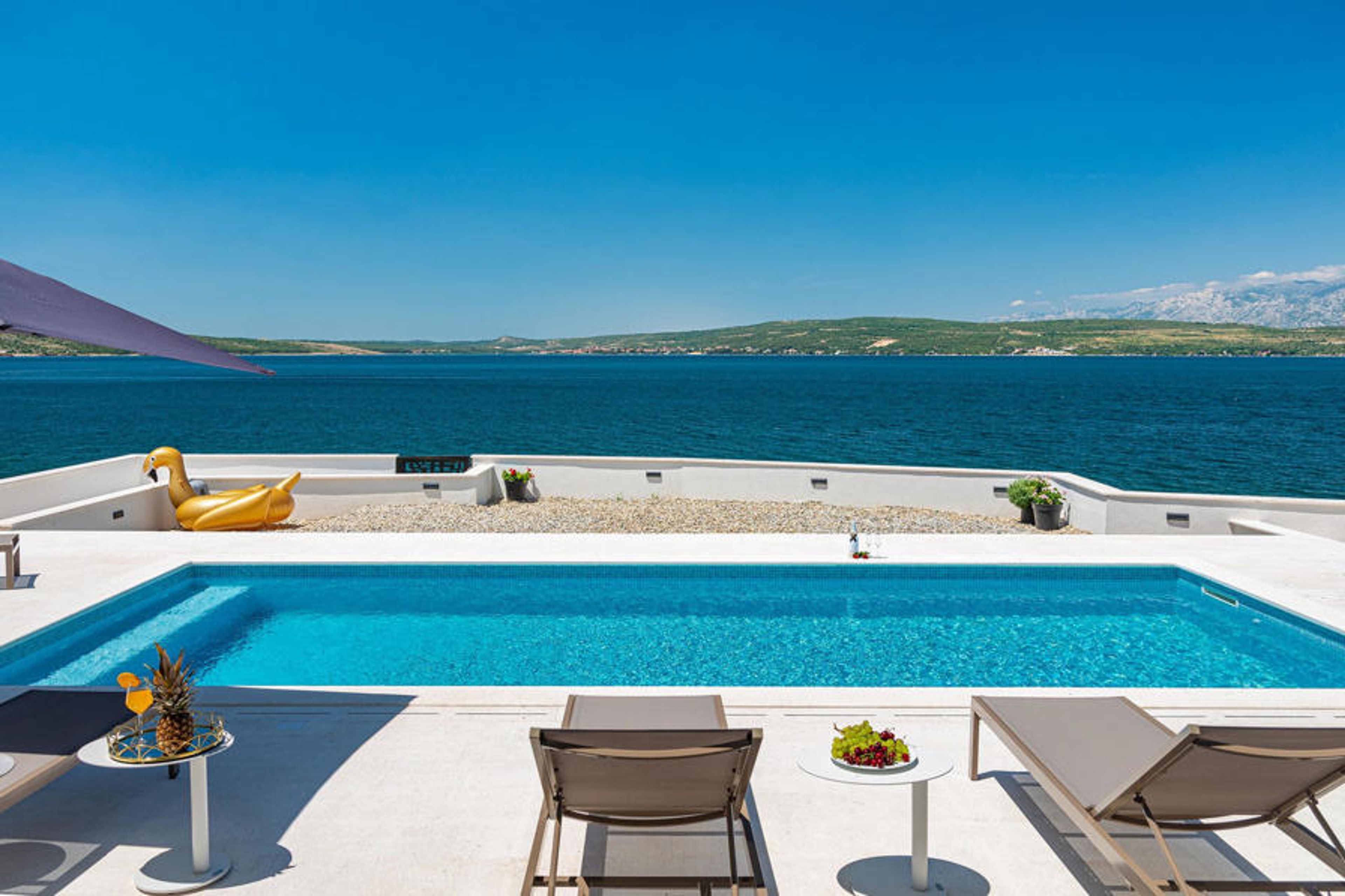 The beautiful Villa Bonella welcomes you in a privileged location directly on the shore of the Novigrad Sea. Enjoy relaxing days here with your family or your favourite friends, cooking together in the modern kitchen, enjoying convivial meals at the stylish dining table and stimulating conversations in the elegant living room. After an eventful day, the sauna invites you to enjoy some soothing moments.