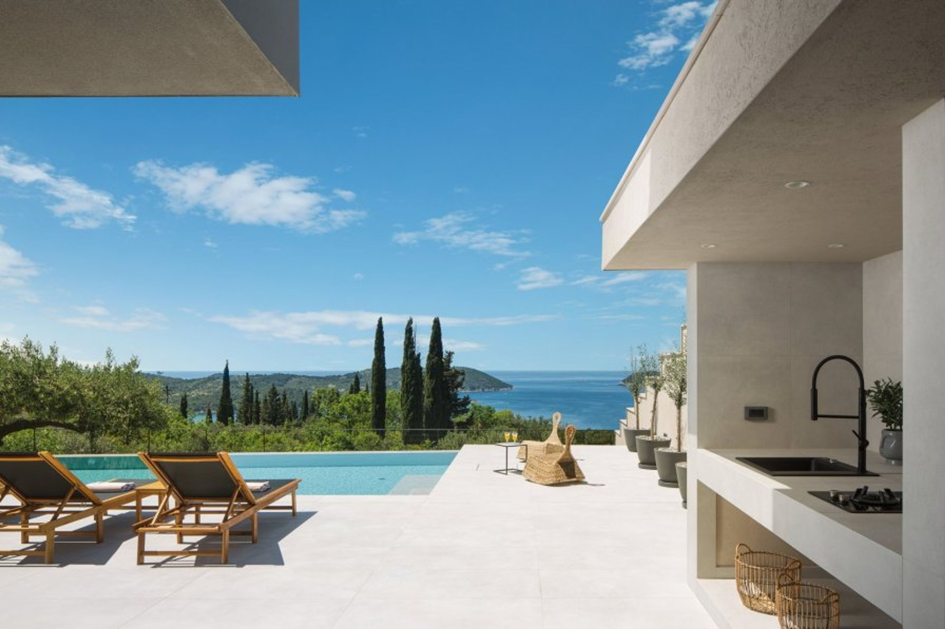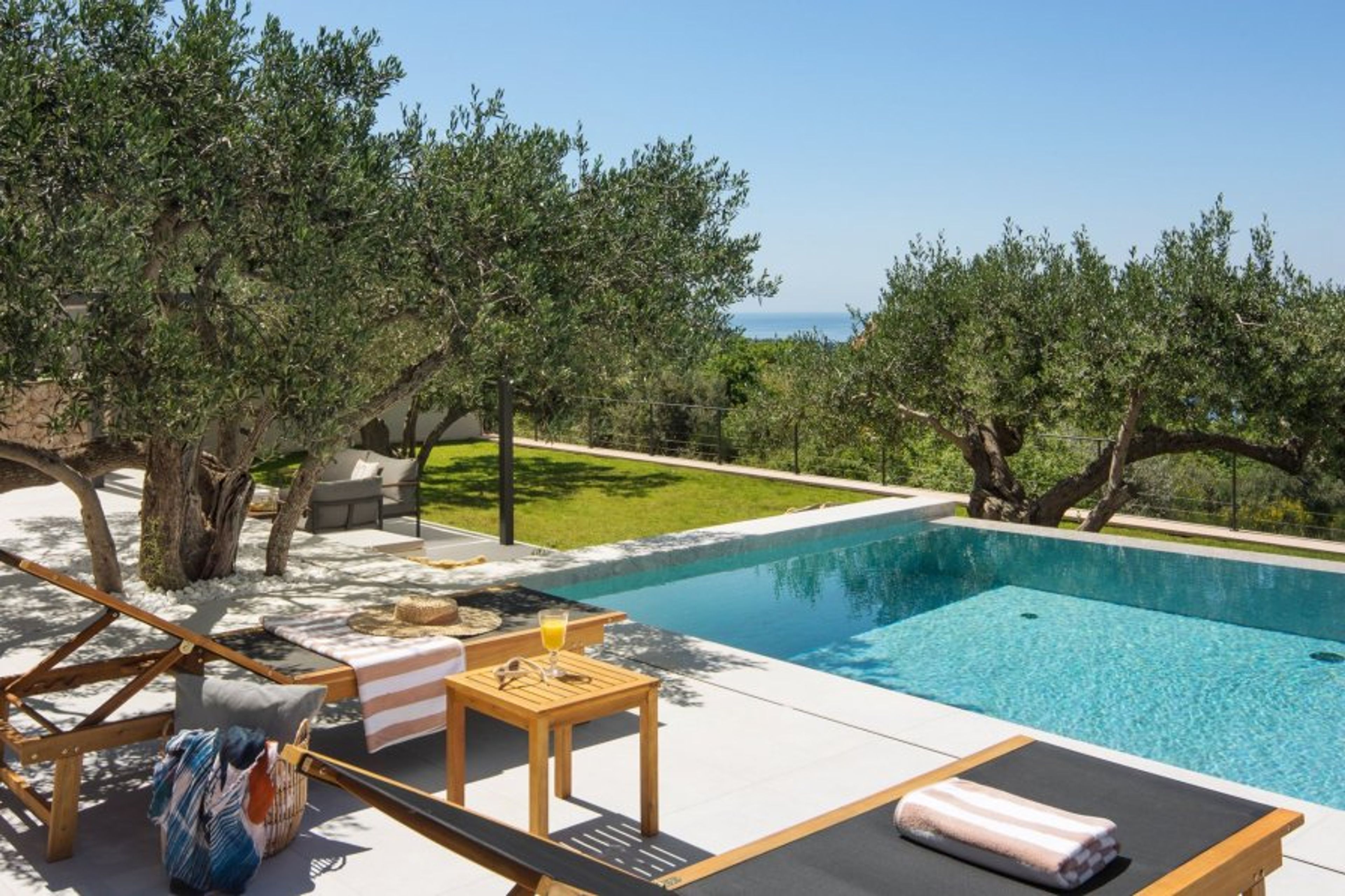 Each of the villa's four bedrooms is beautifully designed, with three of them featuring a double bed and one with the option of twin beds. All rooms have ensuite bathrooms, and two of them have balconies with stunning views of the sea.
