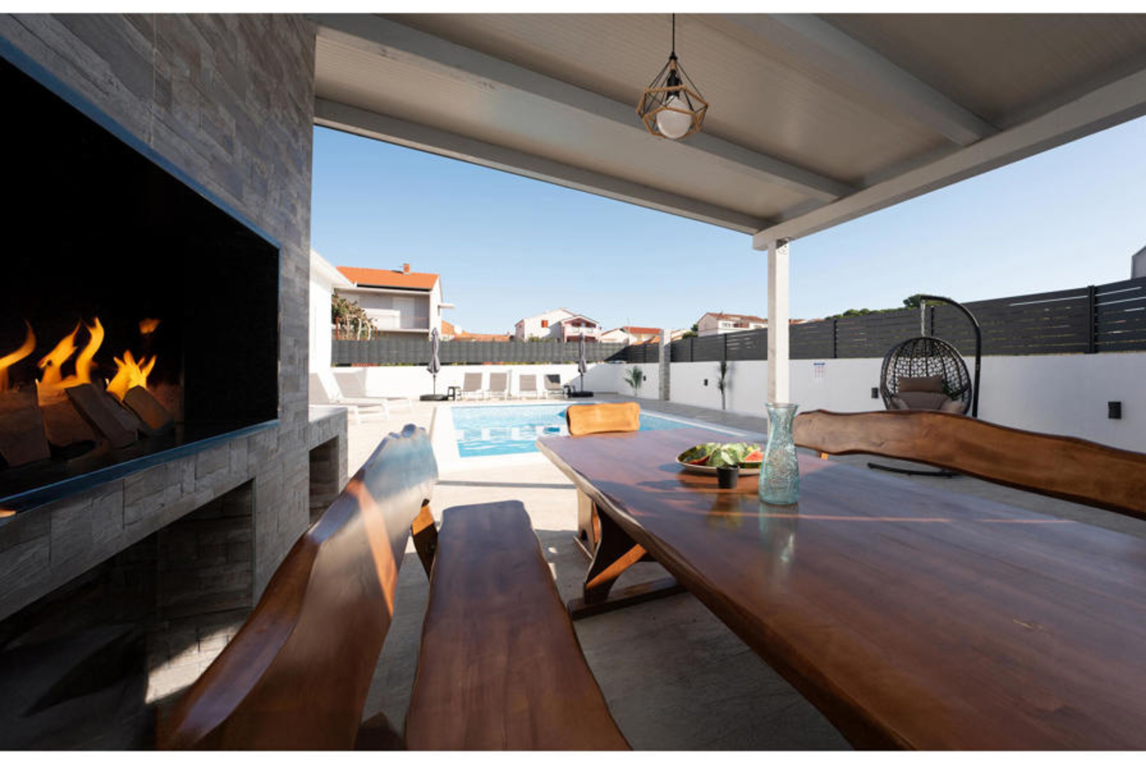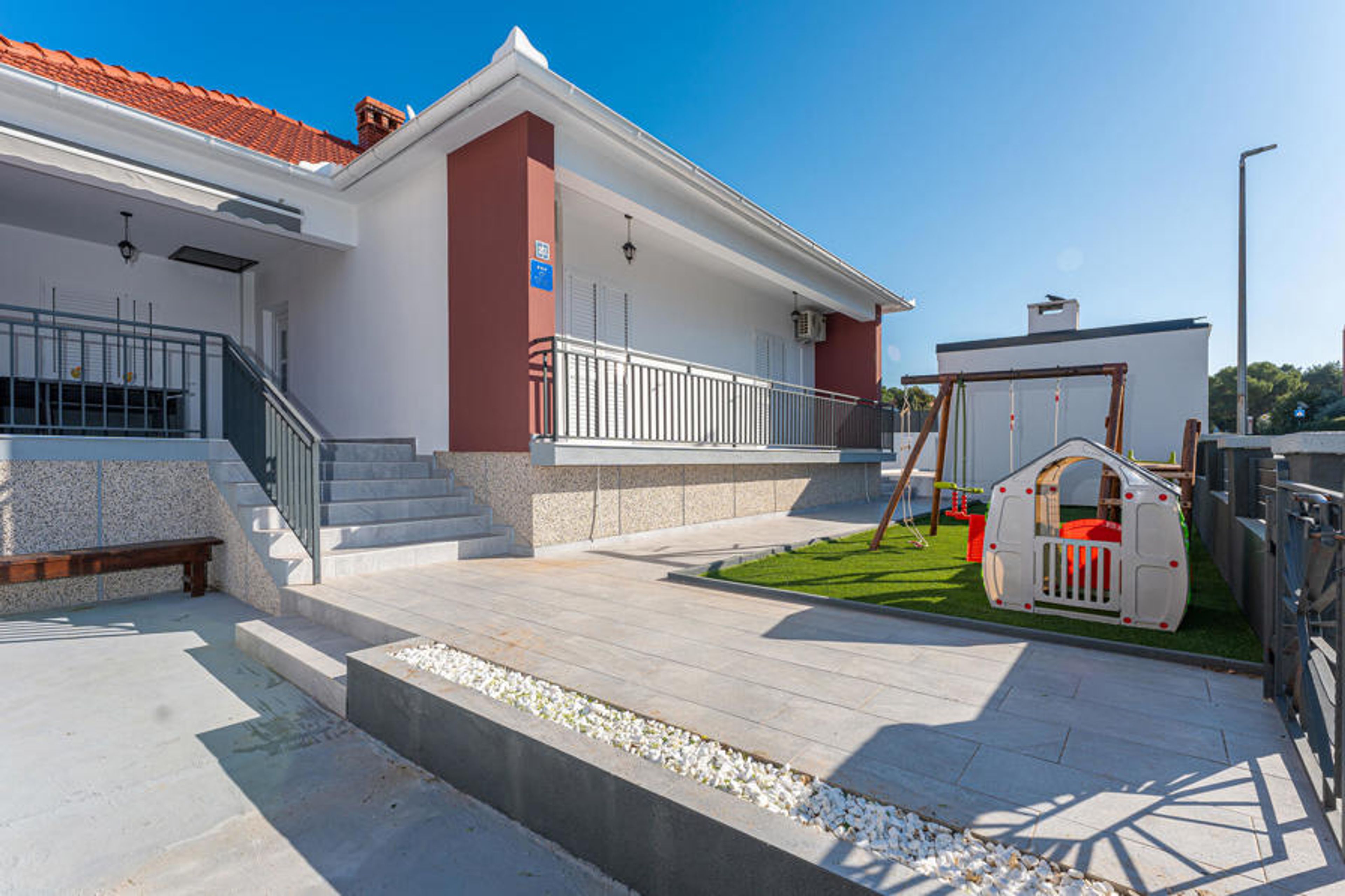 This comfortable vacation home with pool is centrally located in Biograd na Moru. Combine city life and sunny beach days in this beautiful vacation home and feel right at home.