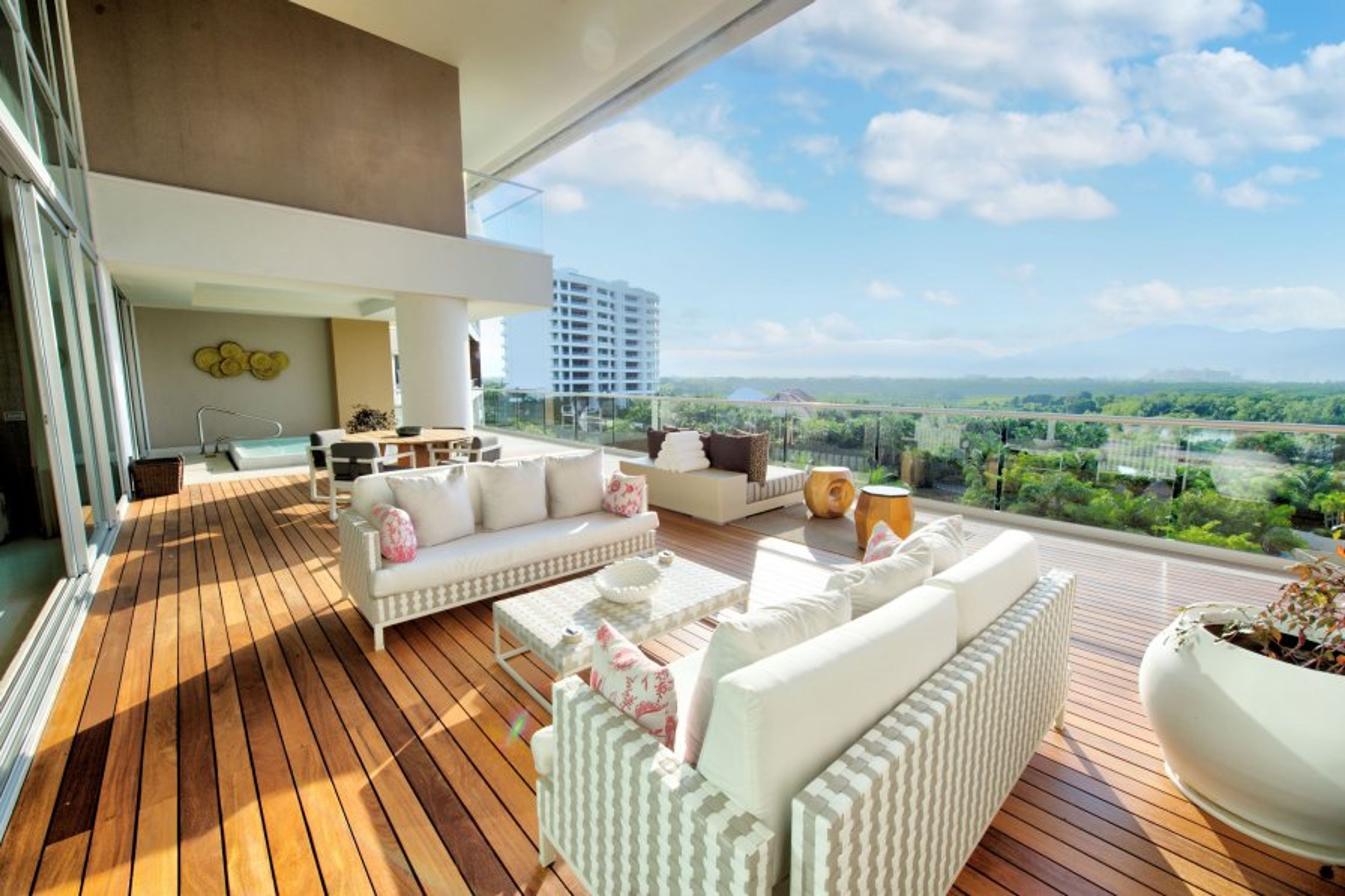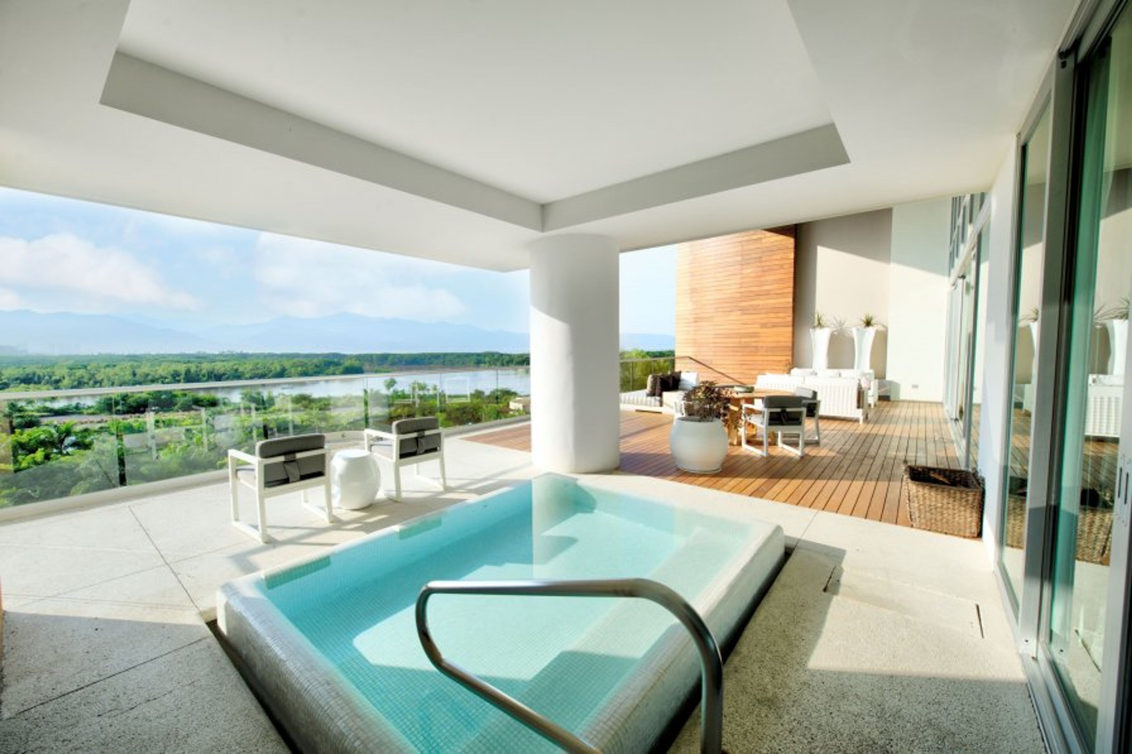 Immerse yourself in the most extraordinary experience in Mexico’s Riviera Nayarit in a luxury beachfront property. This fully-equipped residence offers quiet accommodations just steps from the Enclave’s exclusive spa, pools, restaurants, and fitness center. Beyond that, an unlimited variety of activities beckons in all directions: Golf championships? Spectacular slides? World-class shopping and dining? This is up to you! The apartment offers a light-filled residence to energize all your mornings and relaxing moments with your loved ones. A double-height glass wall highlights the panoramic views of the Ameca River flowing exquisitely through the coastal landscape to Banderas Bay. Enjoy a relaxing dip in the pool on the terrace, or gather for an outdoor cocktail before an unforgettable evening. The soaring ceiling design forms a voluminous interior, where deft touches of vibrant colors mesh perfectly with the neutral tones and natural accents of wood and stone. It has a fully equipped kitchen where you can be inspired to prepare gourmet delicacies around the dining room surrounded by the spacious living room which is the perfect place to rest after living adventures. The master bedroom is located on the main floor, which opens directly onto the wonderful pool; the upper floor has 2 bedrooms and a multimedia room. The villa is adapted for guests who require the use of wheelchairs and has air conditioning and a wireless internet connection. The extraordinary network of pools and jacuzzis culminate in the nearby water park. Golfers can choose from 2 championship courses and a par 3 course, or hone their skills at the Golf Academy. And this is just a select sample of the countless offers. Beyond the resort, you can drive just 10 kilometers to the bustling colonial streets of Puerto Vallarta, or embark on an ecological adventure to the sublime Marieta Islands.
