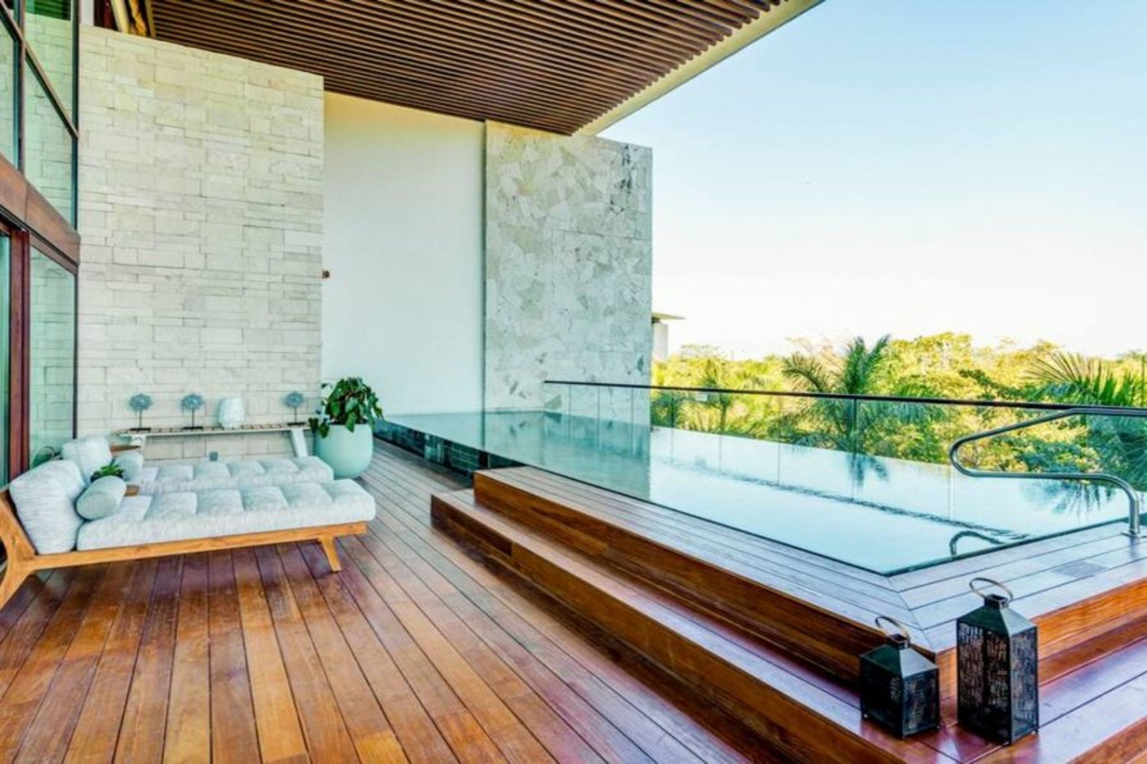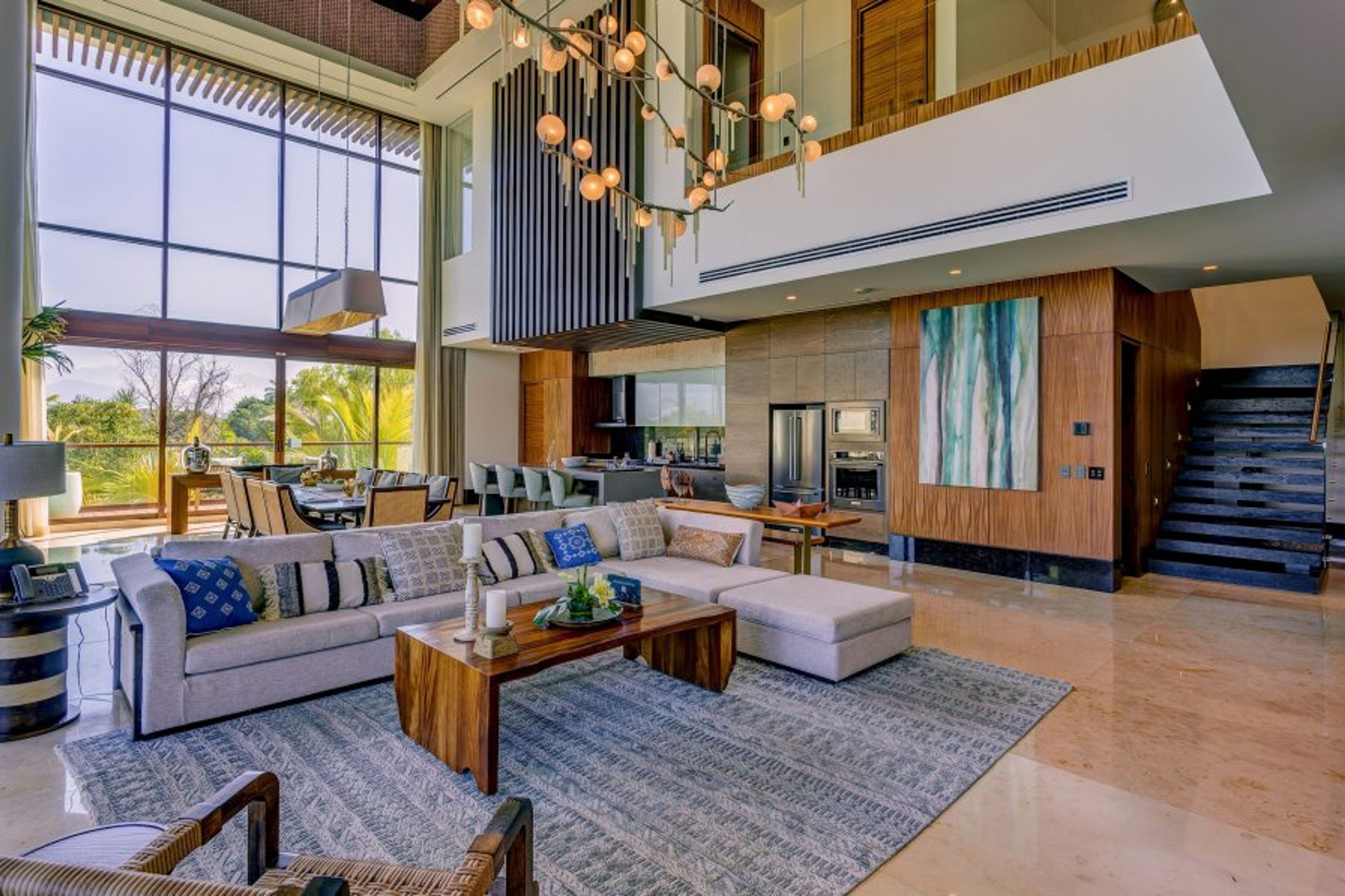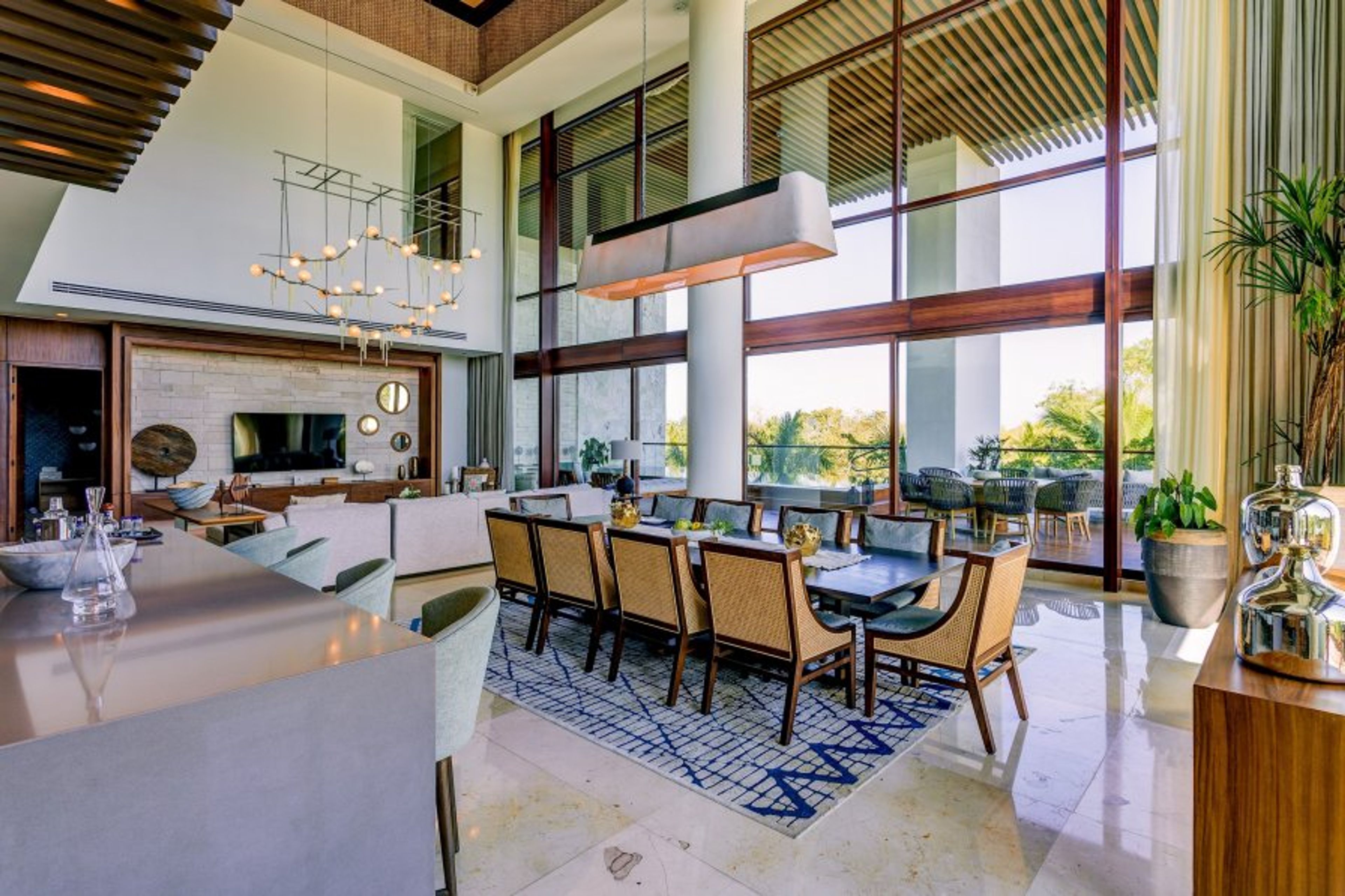 The Estates Four Bedroom Loft is the embodiment of the concept of perfection, showcasing in every detail the unparalleled combination of nature with opulence. Allow us to dazzle you with this spectacular and Luxuriant Estates Four Bedroom Loft and all it has to offer for up to 12 Adults. What you’ll find in the Estates Four Bedroom Loft in Nuevo Vallarta. The main bedroom of the Grand Luxuriant 4 Bedroom Loft Residence in Nuevo Vallarta is dreamy. You will find a spacious and sumptuous space with a king-size bed, Smart TV, a large closet, desk, and a bathroom equipped with a nice whirlpool tub, 2 sinks, and a large shower to enjoy unparalleled relaxation. The second master bedroom provides similar Luxuriant and comfort as the master bedroom. It features a king-size bed, large closet, Smart TV, desk, and an excellent whirlpool tub inside a spacious bathroom with 2 sinks. The first guest room will give all the comfort to those who occupy it with 2 queen size beds, a closet, a desk and Smart TV, a whirlpool tub, and 2 sinks properly placed inside a large bathroom. Last but not least, the second guest room features two single-size beds, Smart TV, a closet, and a Luxuriant bathroom with a shower and 2 sinks. The common spaces inside The Estates Four Bedroom Loft Residence in Nuevo Vallarta. A magnificent dining room for 10 people and an incredible gourmet kitchen with high-tech equipment and a breakfast bar for 4 people are all you will need to enjoy your stay at the Estates Four Bedroom Loft in Nuevo Vallarta. Plus, if you want to enjoy some quality time watching family movies or your favorite sports, the large living room with Smart TV and oversized sofa is perfect for you. To top it all off, the incredible private terrace with a pool and a spectacular view of the nature that surrounds this resort will take your breath away. What to do in Nuevo Vallarta Nuevo Vallarta’s exclusive shopping and dining experiences appeal to all guests from many directions starting with the magnificent shopping mall, and bars and ending with over 40 restaurants designed for the most discerning palates. The enclave of ultra-luxury residences is located just 12 kilometers from downtown Puerto Vallarta and a short boat ride will take you to the Marietas Islands, a true natural treasure of the Riviera Nayarit, making it a highly recommended destination for unforgettable experiences that only Mexico can offer. You will also have access to the fantastic Ultra-Luxuriant Fitness Center and Spa facilities. For Golf lovers, we have World-class Golf courses. If you are a lover of water and relaxation, you will have exclusive access to the sophisticated pools of the beach club with a breathtaking view of the sea, the lounge area with elegant touches everywhere you look and the dual pools made to relax and provide serenity and complete disconnection from the routine of everyday life.