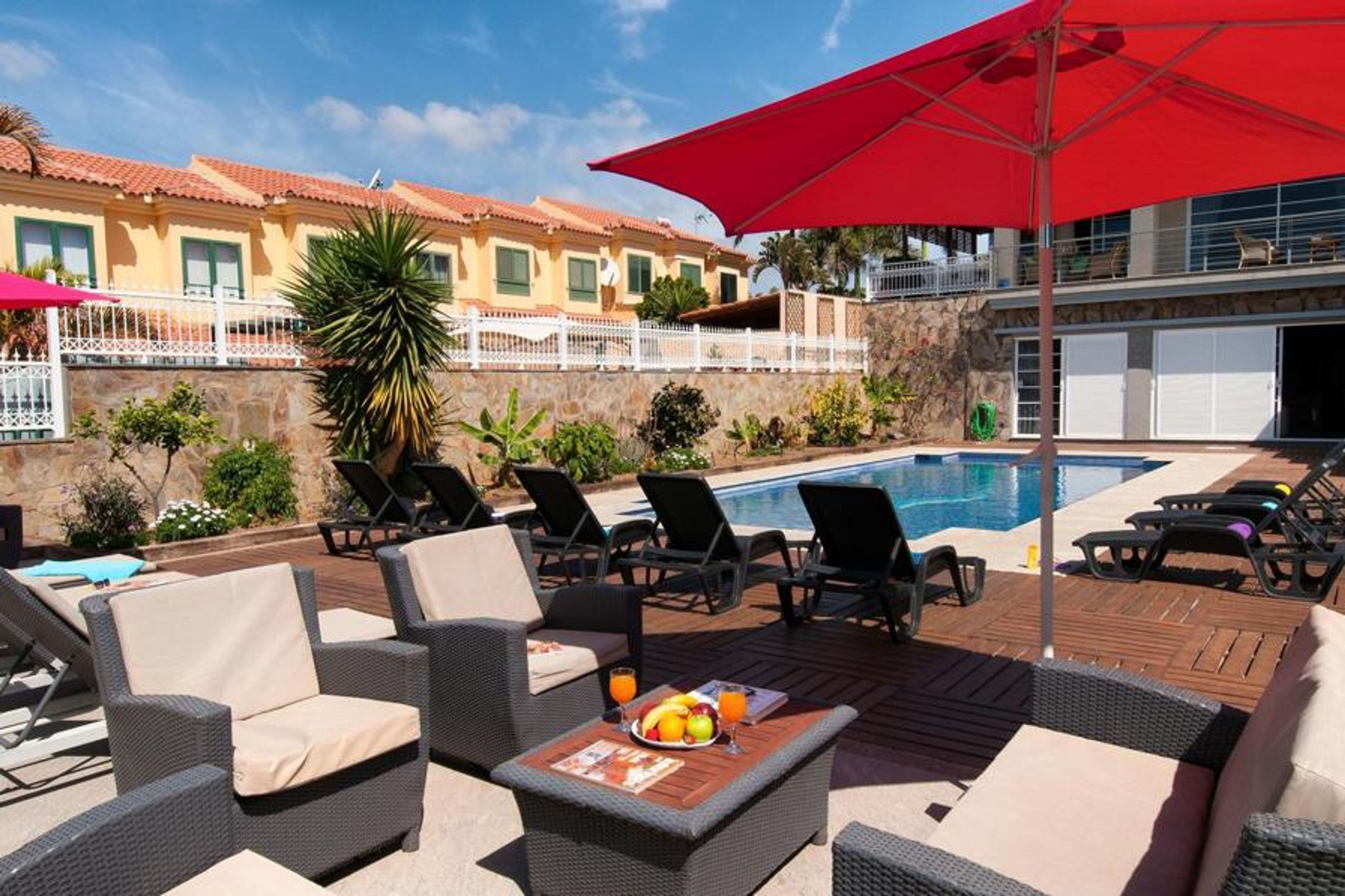 Large, comfortable single-family house. On the outskirts Maspalomas, in a quiet position. Private: garden (fenced) with lawn, swimming pool angular (11 x 5 m, depth 160 - 140 cm, seasonal availability: 01.Jan. - 31.Dec.). Outdoor shower, patio, garden furniture, barbecue. In the house: billiard table. Single garage, public parking on the road. Bus stop "Vistamar" 30 m. The owner does not accept any youth groups. Neighbourhood highly sensitive to noise. Quietness and good behaviour expected.