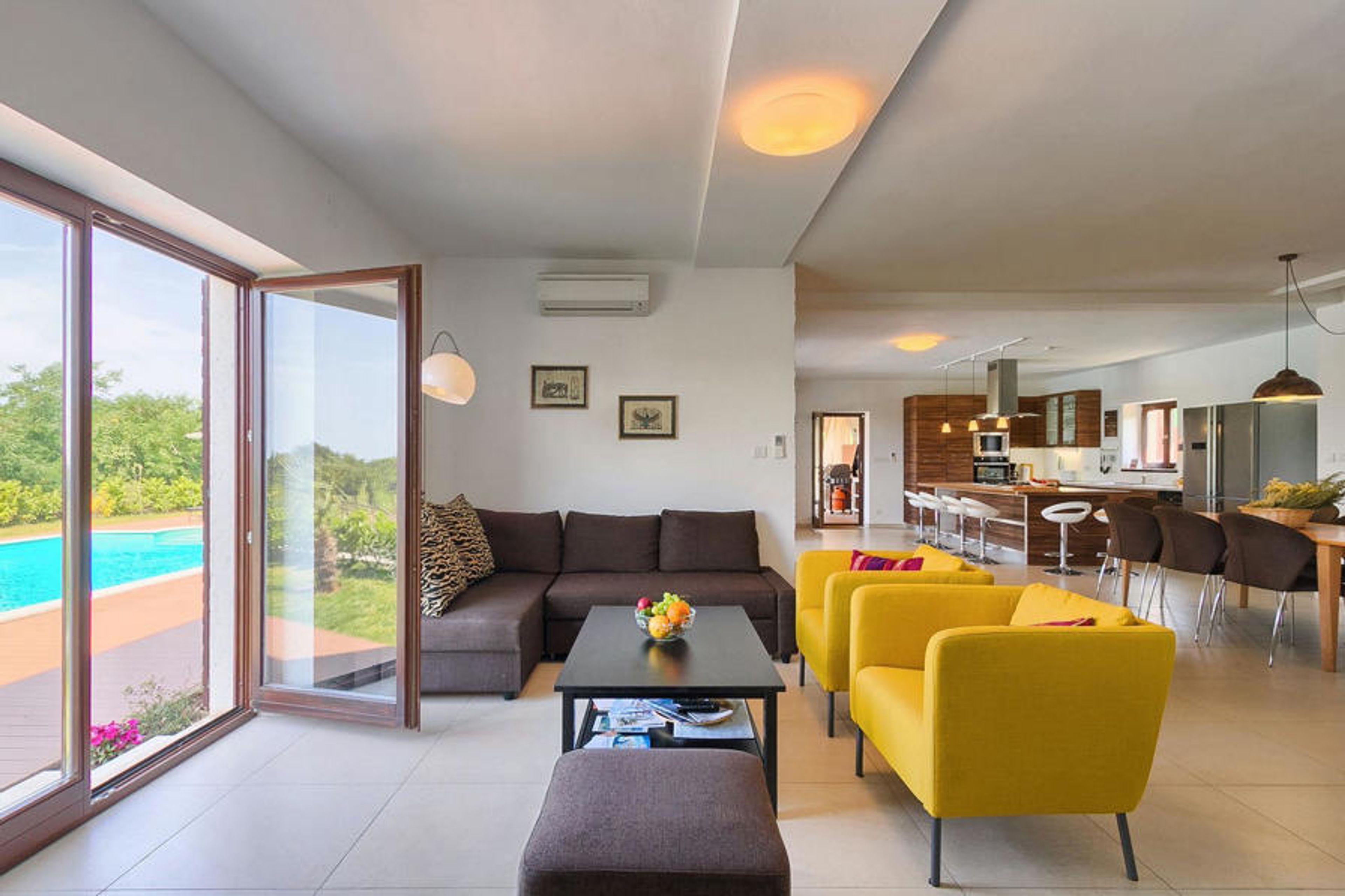 With its location in the middle of a small hamlet in central Istria, this family villa is perfect for those who want to spend a quiet and relaxing vacation in beautiful countryside, but at the same time only a short drive from the enchanting beaches. Villa Dubravka has a spacious and bright but also colorful living room and a fully equipped modern kitchen. Furthermore, this air-conditioned villa has 3 bedrooms, 3 en-suite bathrooms and can accommodate up to 6+5 persons. Both from the villa and from the spacious garden you have a magnificent view of the unspoiled landscape and the beautiful sunsets. Spend your vacation relaxing in the pool, followed by a delicious dinner on the charming covered terrace.Centralisten is one of the rare regions of the Mediterranean that has been blessed with both unspoiled, natural landscapes and a rich cultural heritage. Numerous small bays and hills connect and separate many almost magical places, creating almost unreal landscapes. Here you can enjoy numerous specially prepared traditional dishes that will fulfill your desire for authentic Mediterranean cuisine and forgotten pleasures. The very famous Istrian prosciutto, pork tenderloin and sausages have their own specific smell and taste, and seafood and fish come from an idyllic archipelago where beauty, joy and tradition merge.
