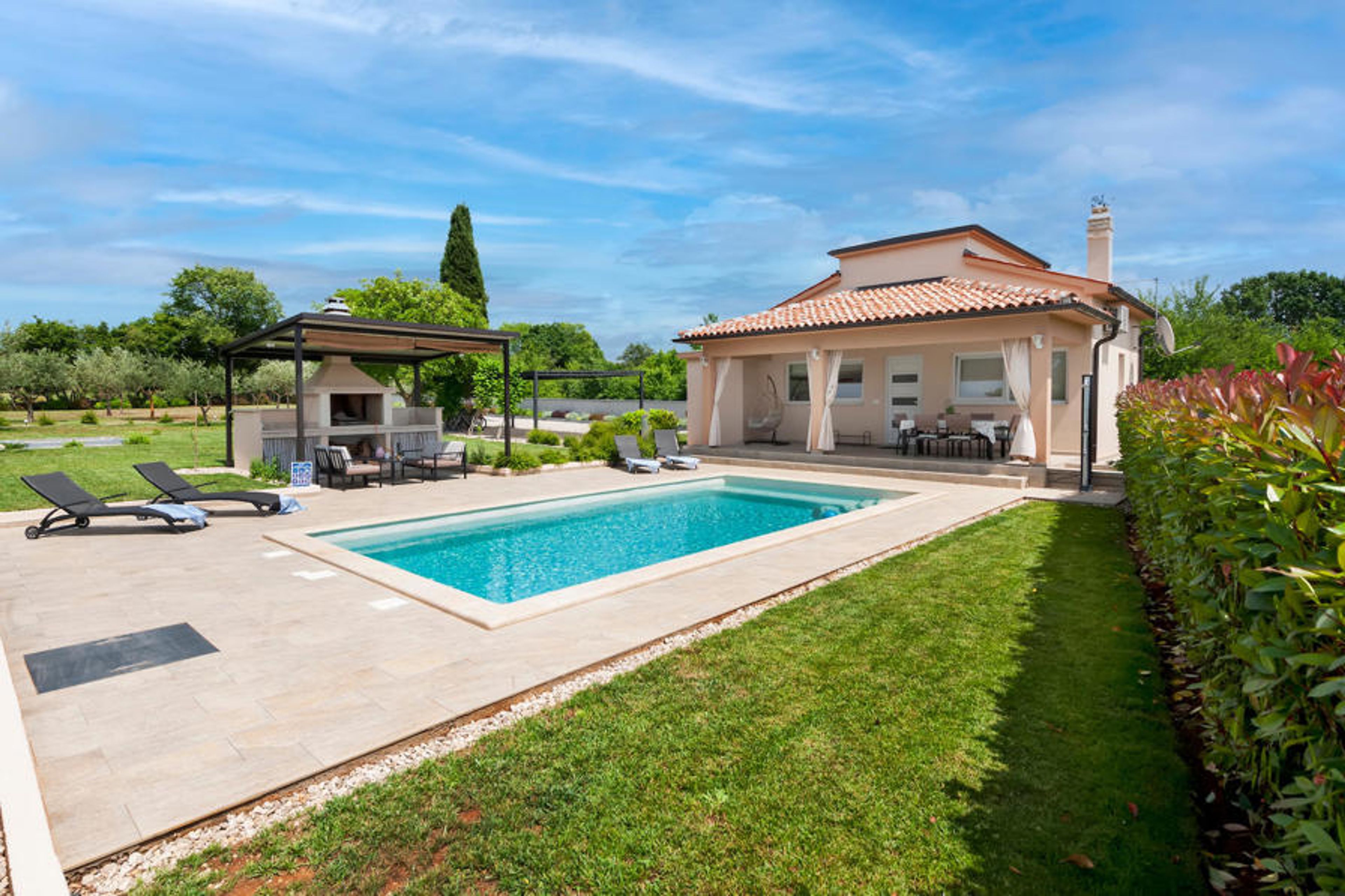 If you're looking for cozy accommodation in Istria's famous Rovinj, check out Villa Mila Rovinj, which is suitable for up to 4 people. When you arrive at the property, the very first thing you'll notice is the olive grove - a true Mediterranean ambience. As you enter the beautiful house, you will notice the warm tones and the wooden ceiling, which will immediately give you a pleasant feeling. In particular, the banister of the staircase leading to the gallery will literally give your vacation a unique 'touch'. In the fully equipped kitchen, you can take a seat on one of the bar stools in the dining area directly in front of the window. From there, you can enjoy the view of the garden with its own private pool. From the open-plan kitchen and living area, you can access the bedroom on the first floor and the bathroom. The bathroom has a walk-in rain shower for maximum relaxation. The gallery room on the upper floor, from which you look down into the living area, is designed as an open bedroom with its own TV. If you would also like some additional entertainment such as table tennis, table soccer, darts or a games console, make your way down to the basement - this is where you will find the villa's entertainment room. Outside in the garden, you can make yourself comfortable on the covered terrace. Here you will also find a ready-to-use barbecue - an inspiration for preparing delicious meals. And don't forget, the sun loungers and private pool are also waiting for you outside. If you would like to explore the surrounding area, bicycles are also available. Make your vacation a perfect, cozy experience and book Villa Mila Rovinj nowVilla Mila Rovinj is located in a former fishing village and one of Croatia's most famous destinations, the charming town of Rovinj, located on the west coast of Istria's peninsula. Various beaches and the old town are just a few minutes' drive from the accommodation. As you walk along the promenade and approach the old town, you will be treated to breathtaking views. Enjoy the colorful, picturesque ambience as you explore the numerous alleyways of the old town. Immerse yourself in the romantic flair of this city! Take a seat in one of the cozy cafés or restaurants and sample the local delicacies. Make your way to one of the main sights, the Church of St. Euphemia. From there you can enjoy the wonderful panoramic view of the sea and the surrounding islands. Don't miss the opportunity to take a boat trip - visit the islands and enjoy the incredible view of Rovinj from the sea. Not far from the villa, you can also visit other sights in Istria, such as the Limski Canal or the Brijuni National Park. Rovinj offers you a wide range of possibilities that will make your vacation unforgettable!