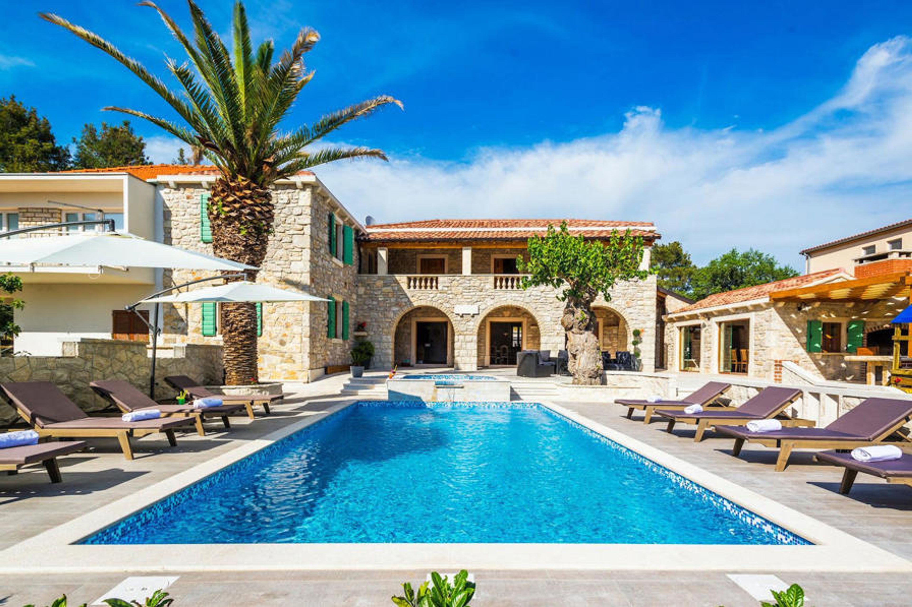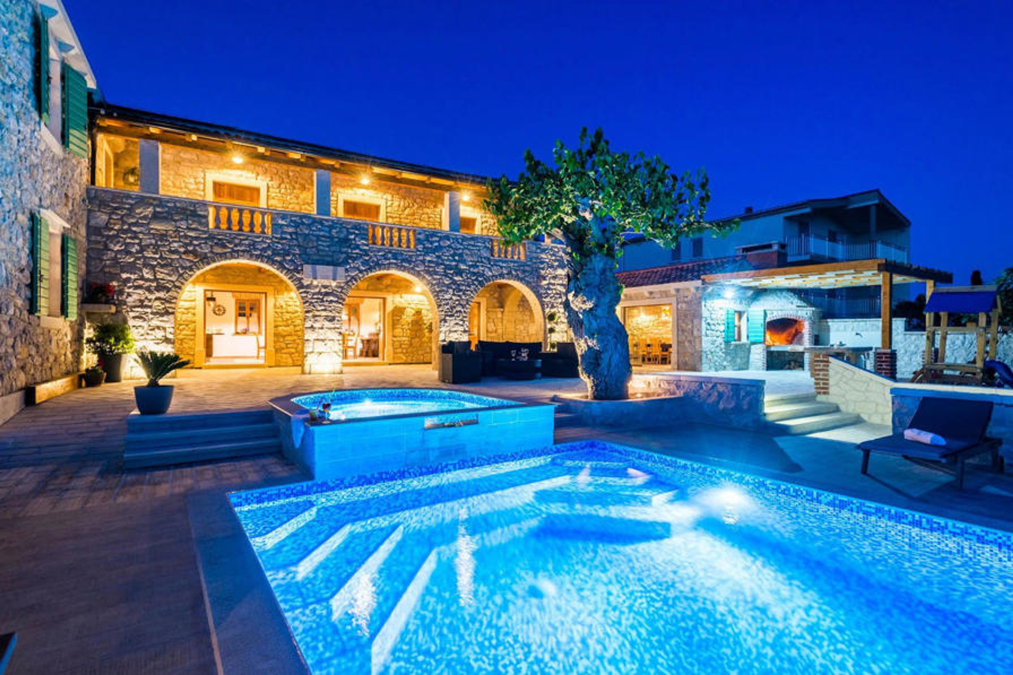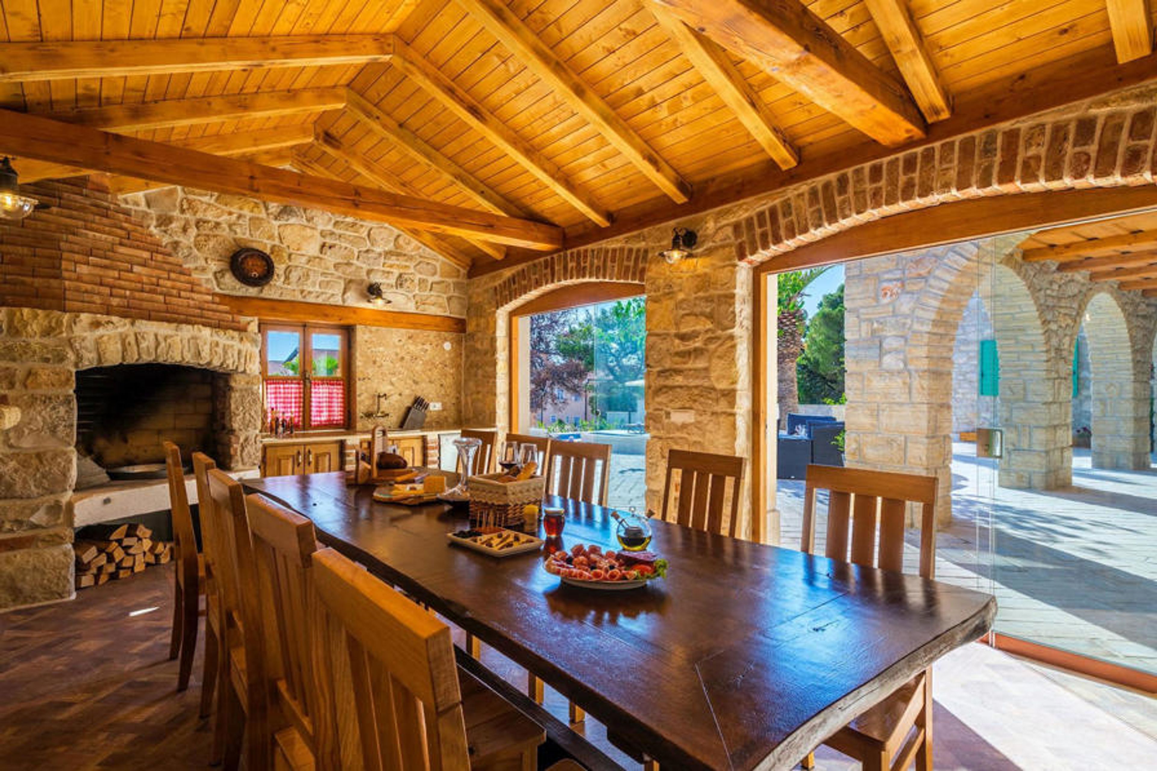 The ground floor has a lovely open-plan lounge, dining and kitchen area, with wooden beams, rustic furniture and fireplace, creating a warm, welcoming atmosphere. Large doors open directly onto the outdoor terraces and pool area, creating a seamless outdoor experience. On the ground floor there is also a large double bedroom with en-suite bathroom, but also a private gym with modern sauna and separate shower and WC. There are four double bedrooms with en-suite bathrooms upstairs, with private access to a very romantic panoramic terrace overlooking the islands and the crystal clear Adriatic Sea.Villa Dumina is located in the small village of Sukosan, just a short drive from Zadar. Zadar is an old town rich in cultural heritage and historical attractions. The famous Alfred Hitchcock said that the most beautiful sunset is in Zadar - don't miss it!