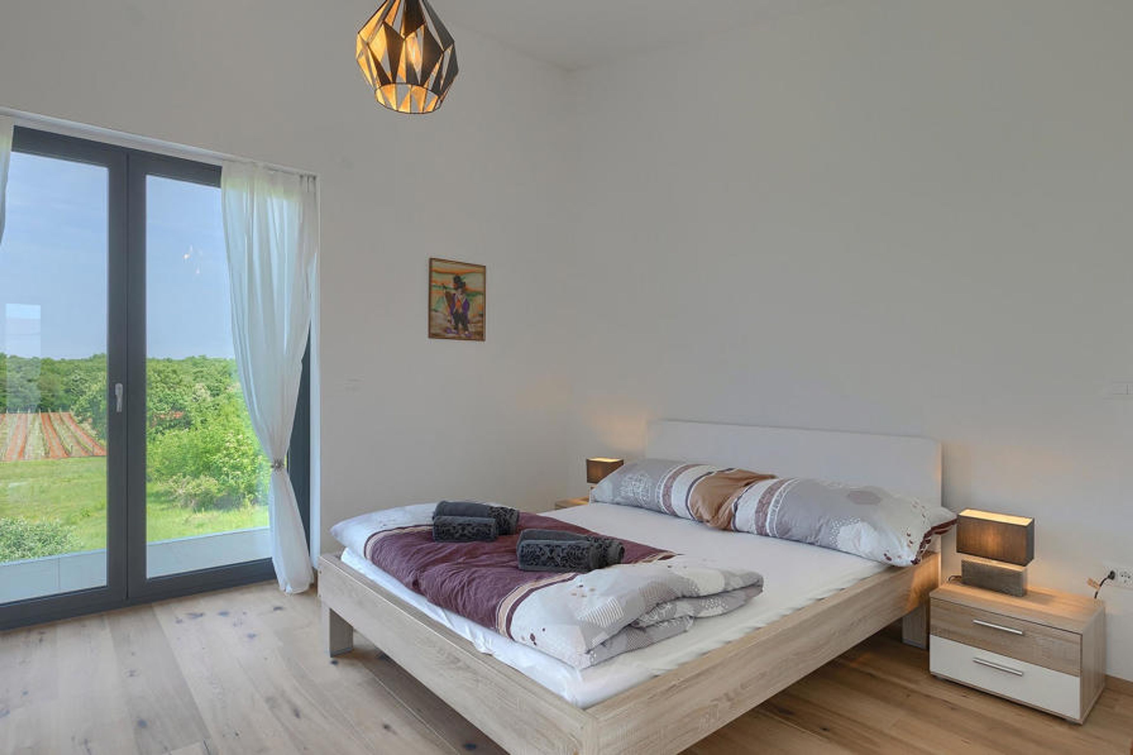 Entering the bright and open interior of Villa Felice Novigrad, you will find yourself in the fully air-conditioned living and dining area with a well-equipped kitchen. The 3 spacious bedrooms on the upper floor have comfortable double beds that promise restful nights. There is also a sofa bed for 2 people in one of the bedrooms. Two of the bedrooms have access to the large balcony. The fantastic location of Villa Felice Novigrad should be emphasized, as it is only 2.8 km away from the nearest pebble beach.