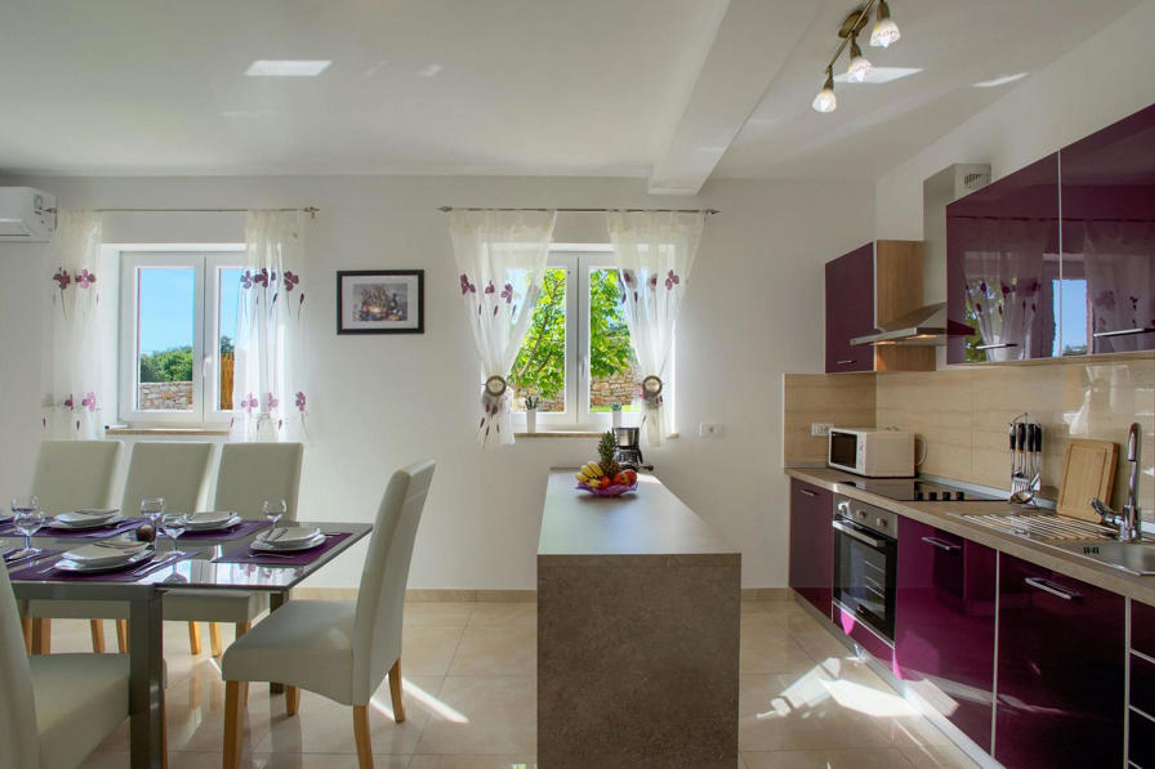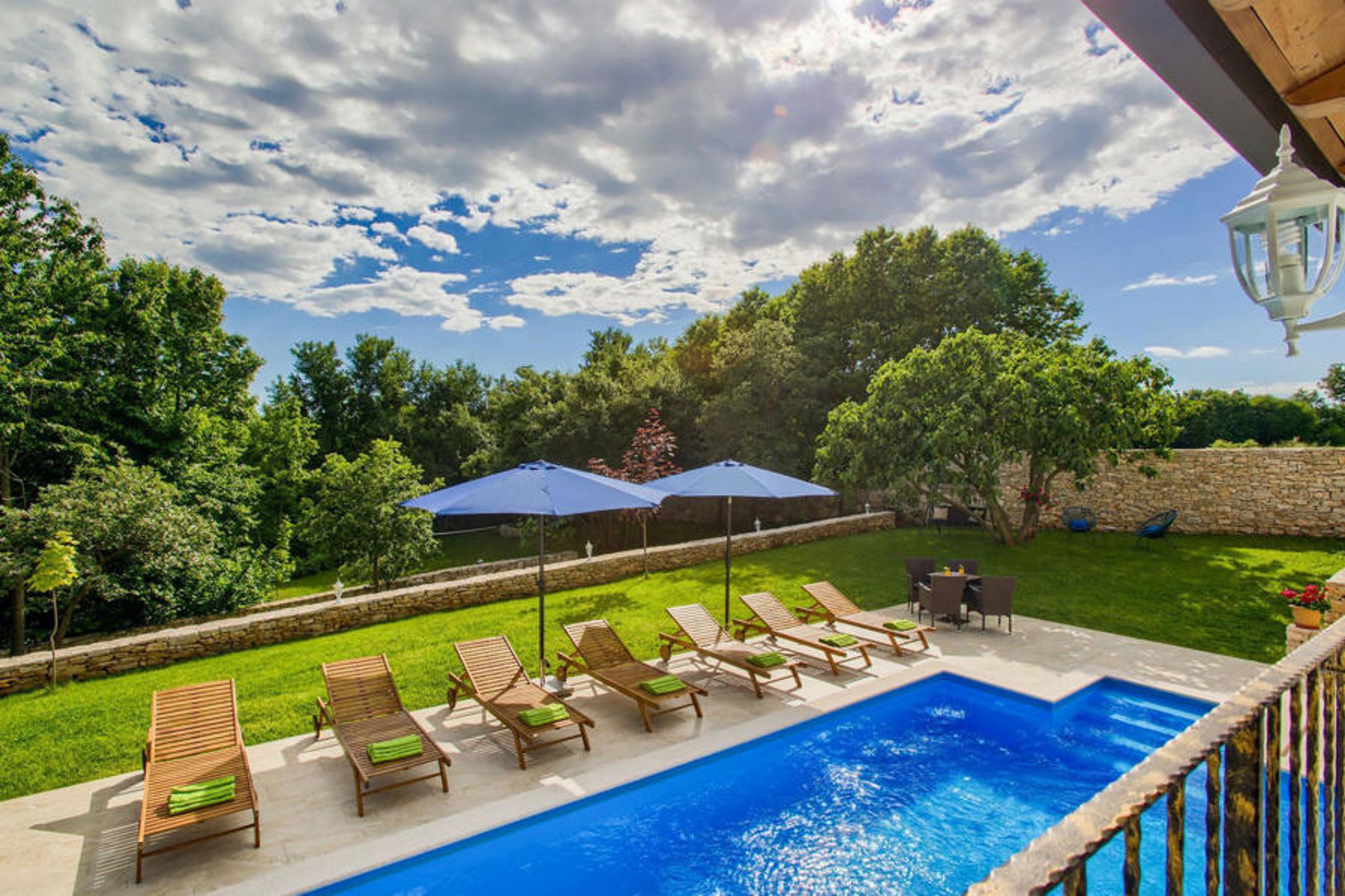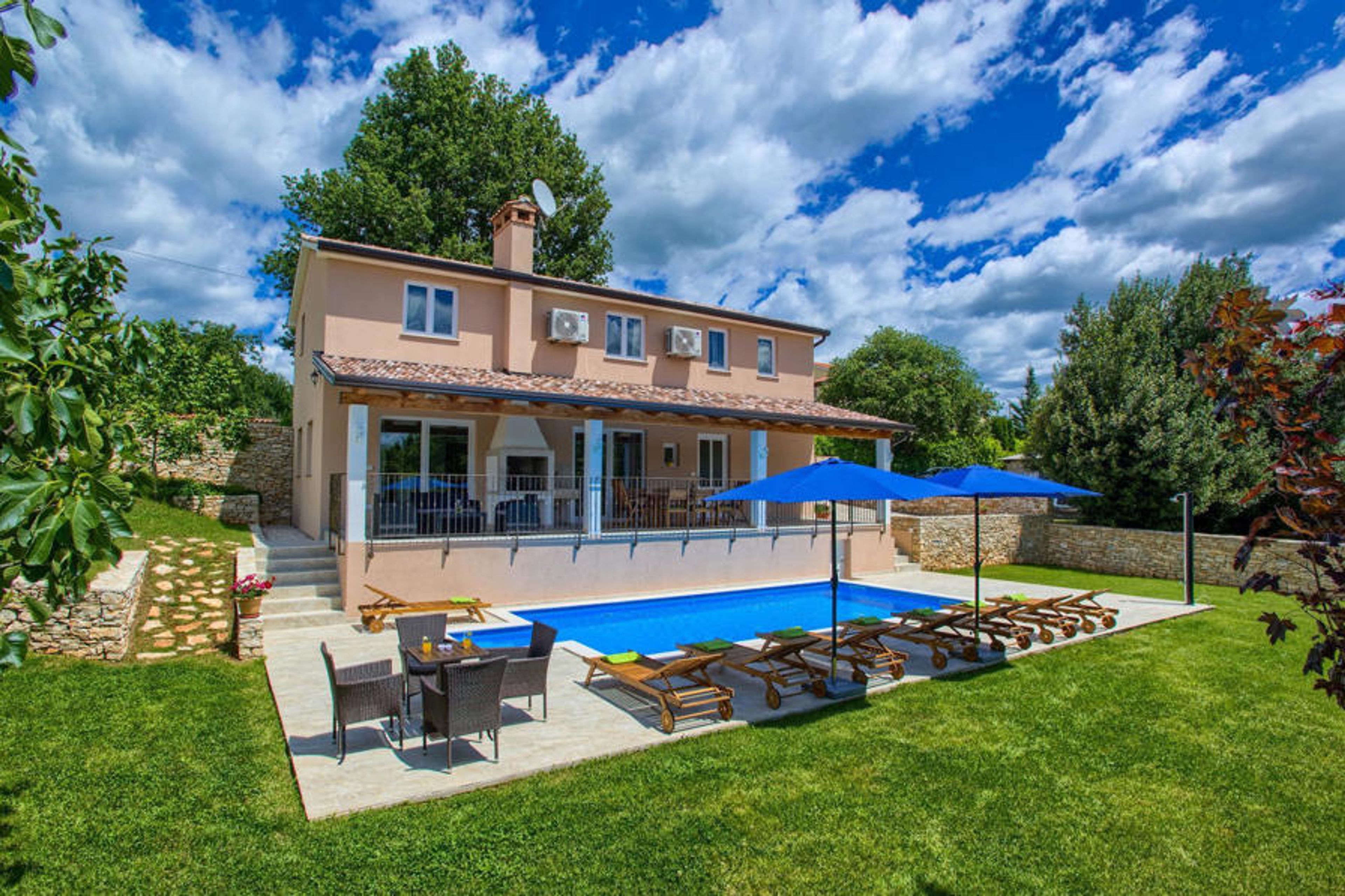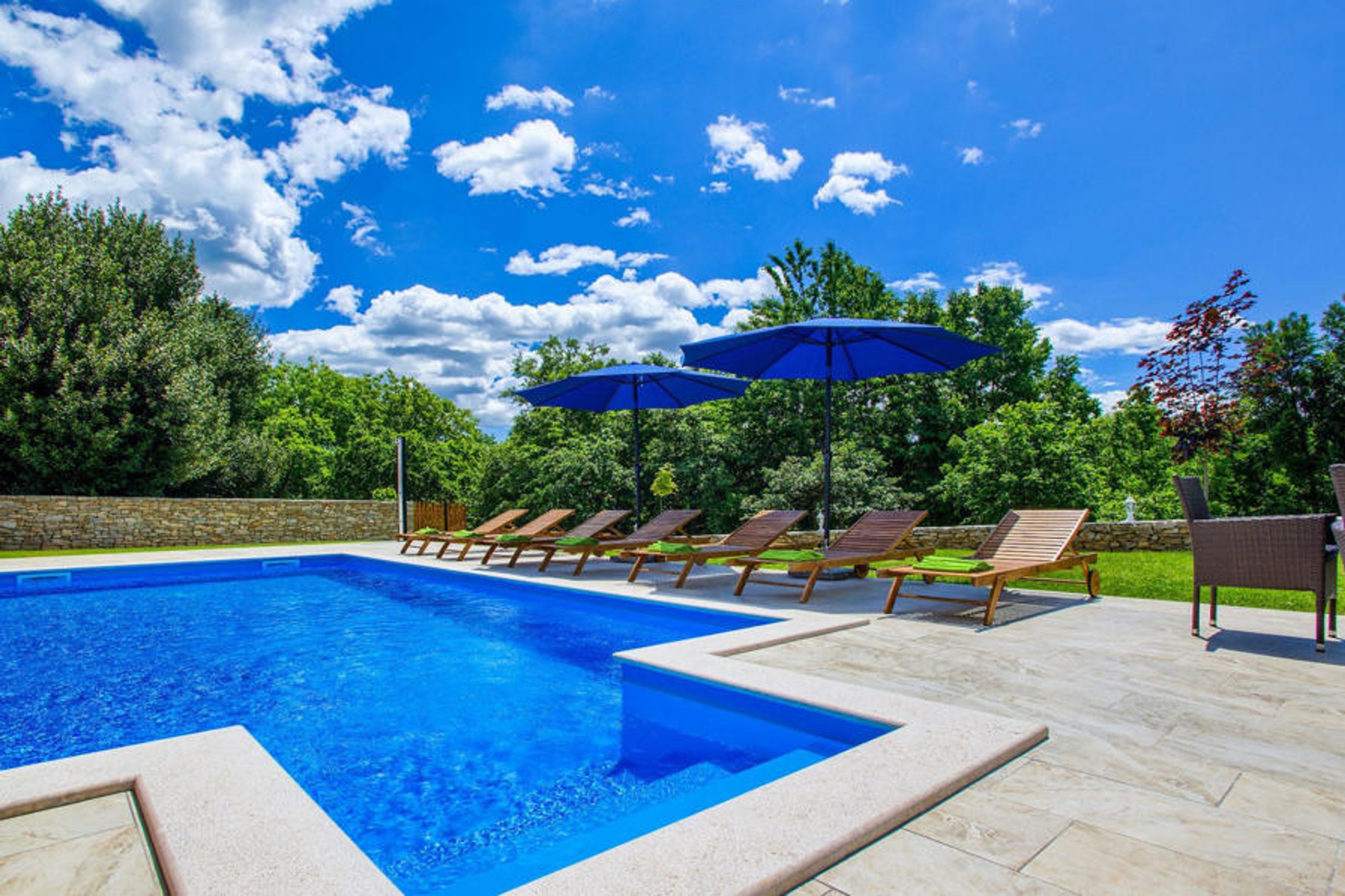 If you want to spend your vacation in a villa with a private pool and a large green garden, Villa Samanta could be the perfect choice for you! This charming villa offers four bedrooms for eight guests with the possibility of additional accommodation for two people. Three bright bedrooms are located on the second floor. All bedrooms have a double bed, an en-suite bathroom and are air-conditioned. On the first floor of the villa you will find another air-conditioned bedroom with two single beds and an additional bathroom. The first floor also offers a cozy living room with TV and sofa bed, a dining area and a fully equipped kitchen connected in an open-space concept. The whole area is air-conditioned. The living room and dining area have access to the covered terrace overlooking the pool. On the terrace you will find a dining table, a barbecue and a lounge area. The pool with sun loungers is surrounded by a beautiful green garden. If you are looking for an activity, you can play table tennis next to the pool. Guests who want to hide in the shade can relax on the garden swing under the tree overlooking the pool. In the lower part of the garden you will find a green oasis with a volleyball and badminton net, soccer goals and a swing for our younger guests. Villa Samanta is completely fenced, has a private parking lot for four cars (2 are fenced, 2 are outside the fence) and offers everything you need for a relaxing and unforgettable family vacation.the villa is located in a quiet environment that offers a perfect location for your peaceful retreat from modern everyday life. Central Istria, known for its mountain villages and beautiful countryside, is ideal for driving, cycling and hiking. Nevertheless, it is only a short drive away from Istrian tourist centers such as Porec, Rovinj and Pula, historical sites and beaches.