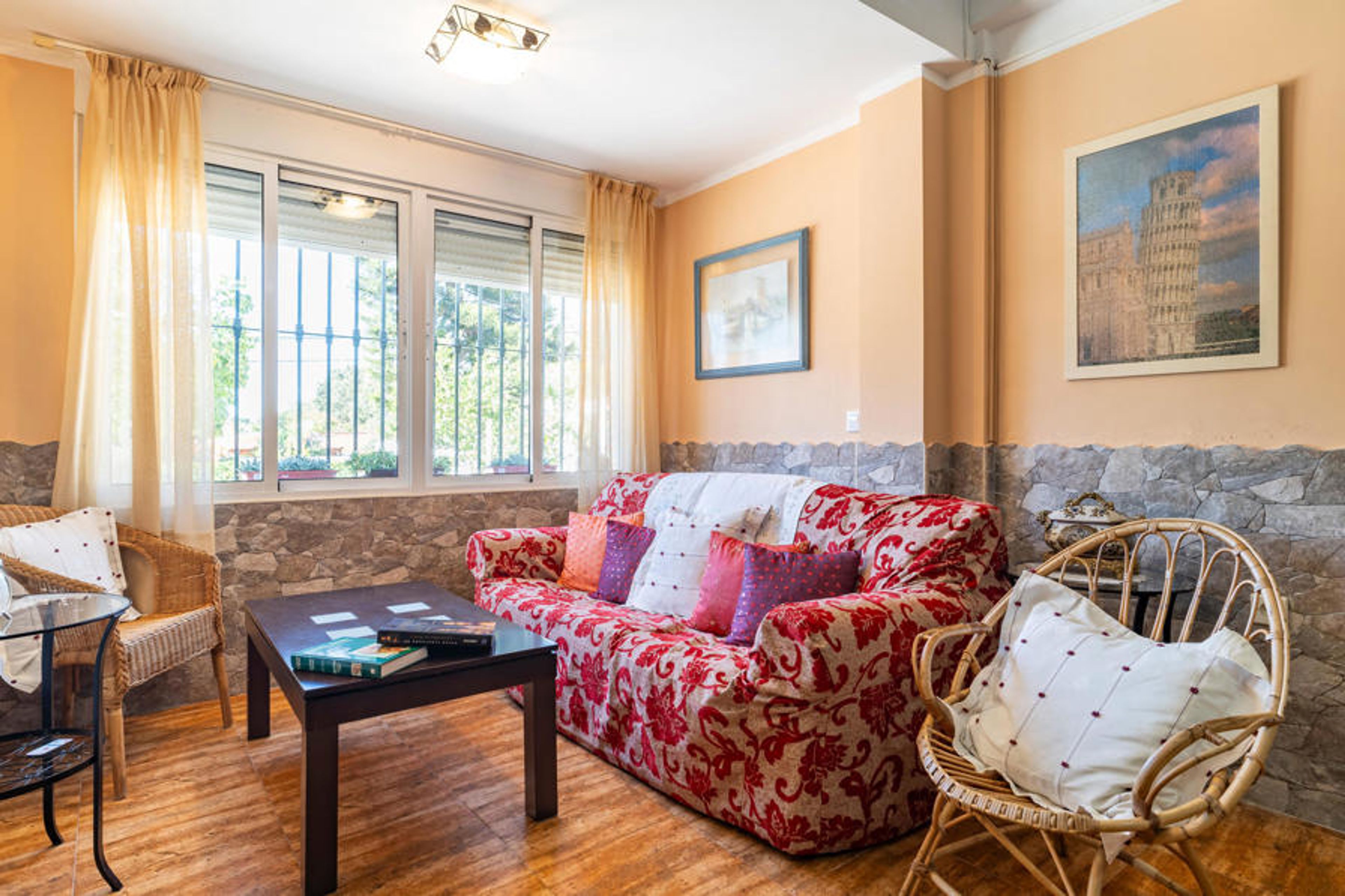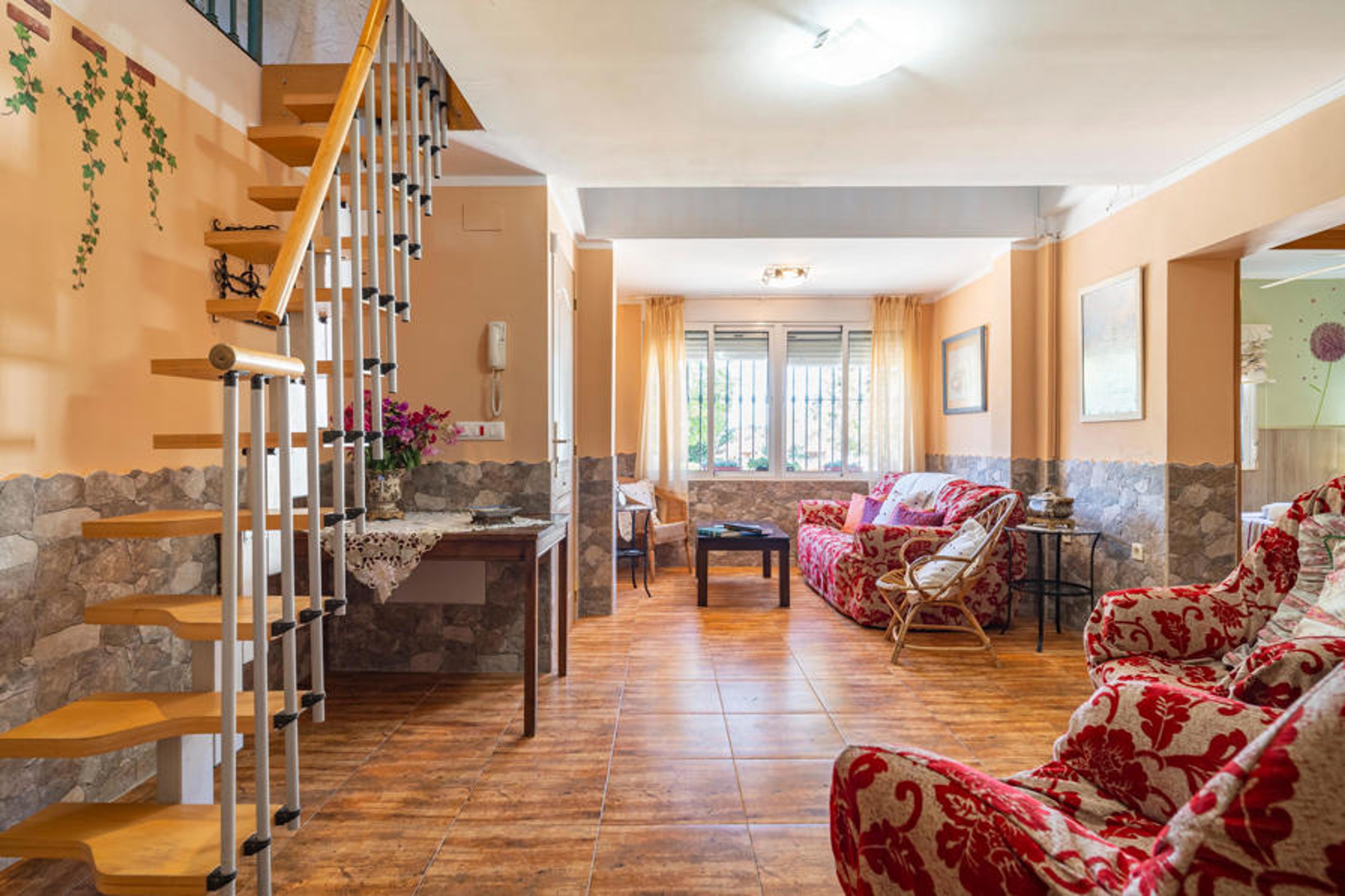 Treat yourself to a family break together under the sun of southern Spain, which welcomes you with this spacious house with homely furnishings. The lovingly decorated house creates an inviting atmosphere in which everyone can feel at home. Make yourself comfortable in the armchairs by the wood-burning stove or discover the terrace outside, where you can enjoy an evening barbecue, play basketball or take a dip in the pool. The large garden offers plenty of space for young and old to play and sunbathe and will become your private oasis.