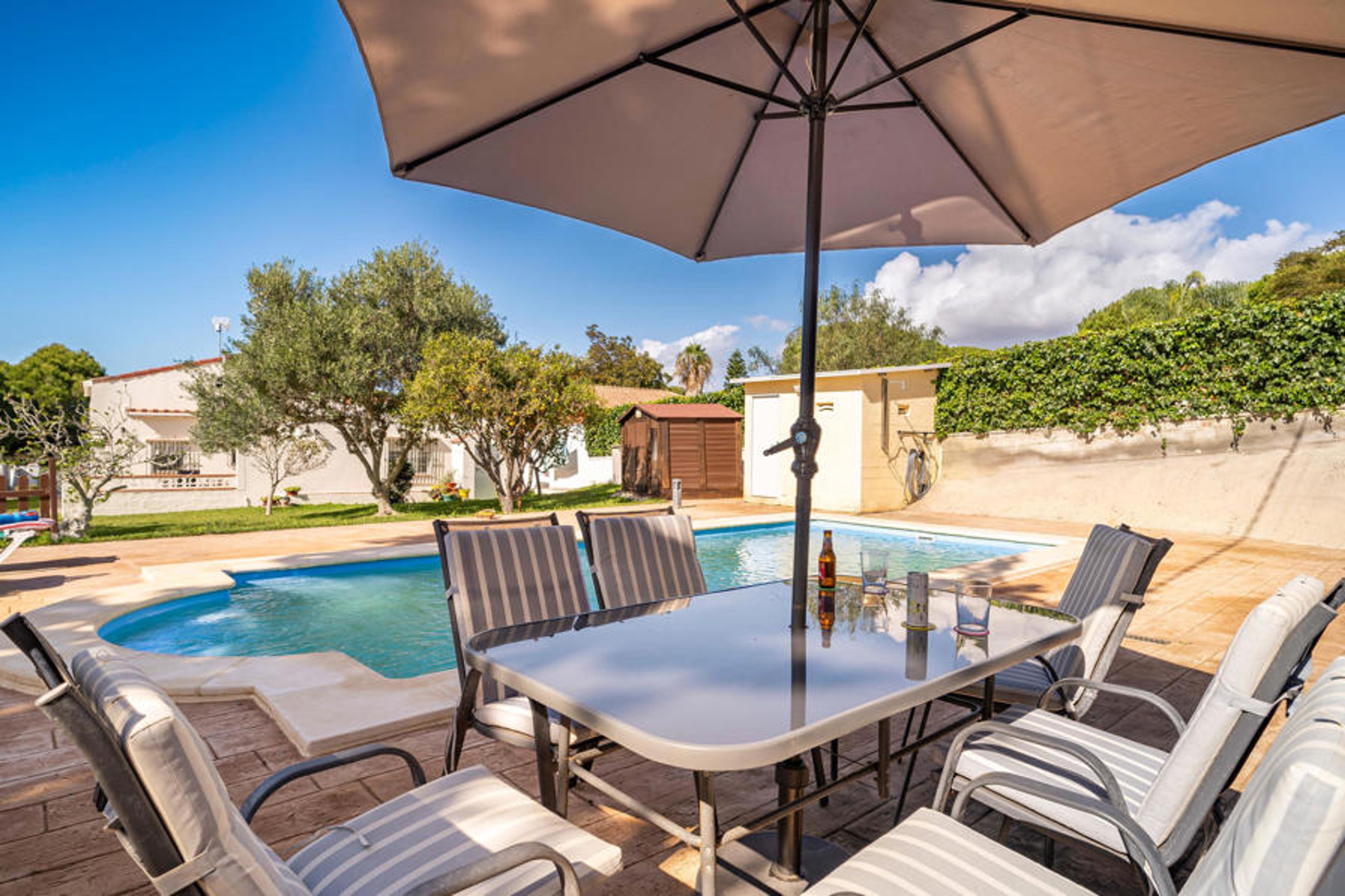 Family-friendly vacation home with pool near the Bahia de Cadiz Natural Park.