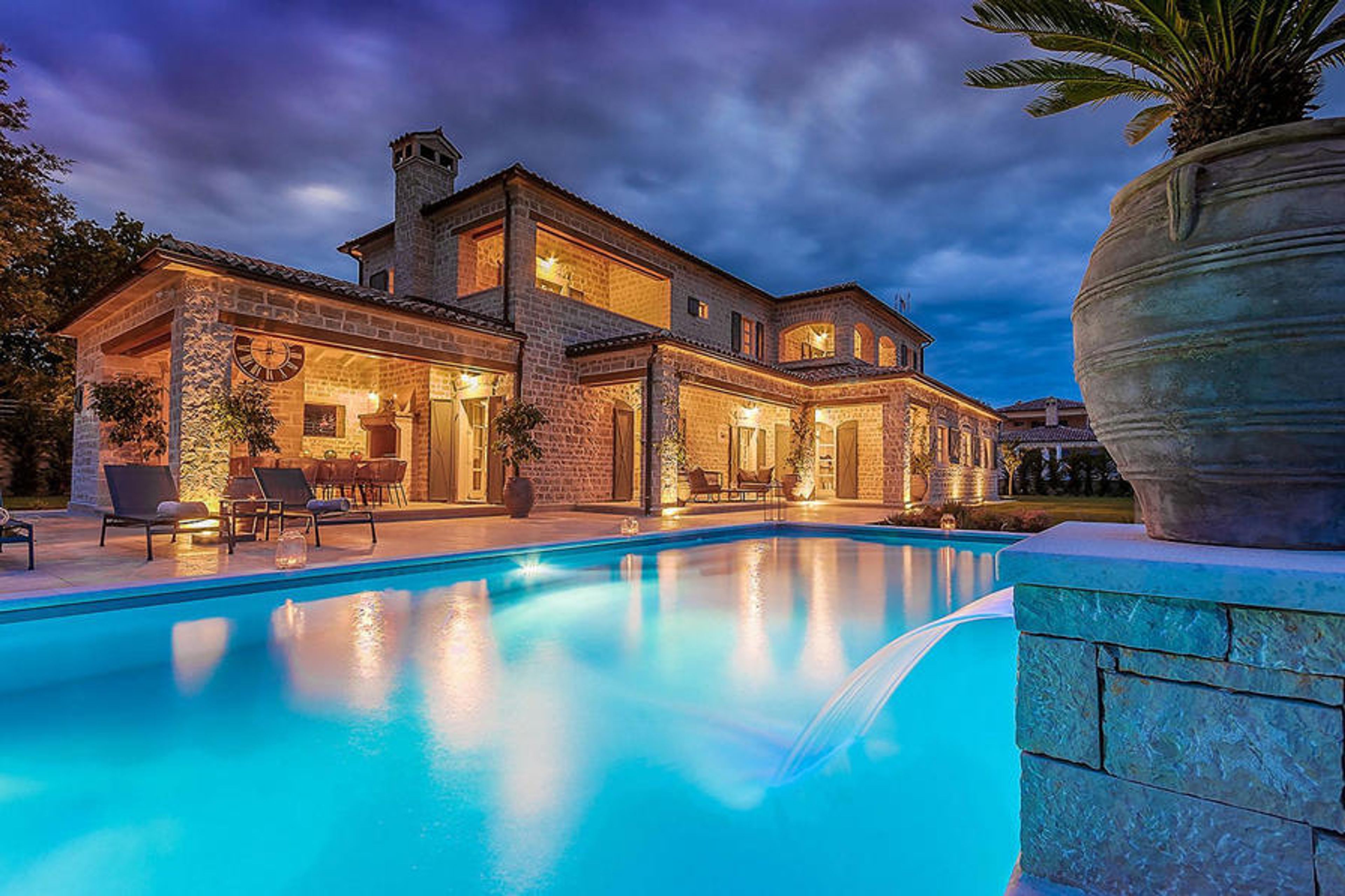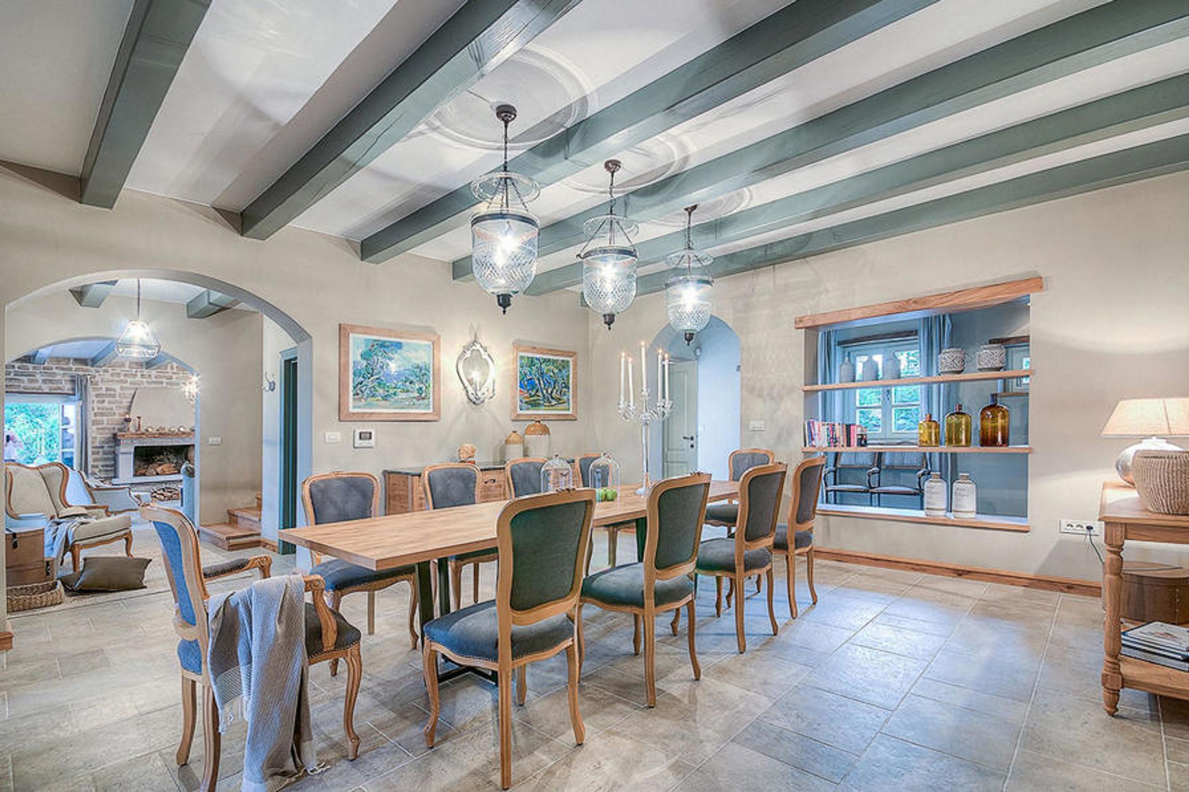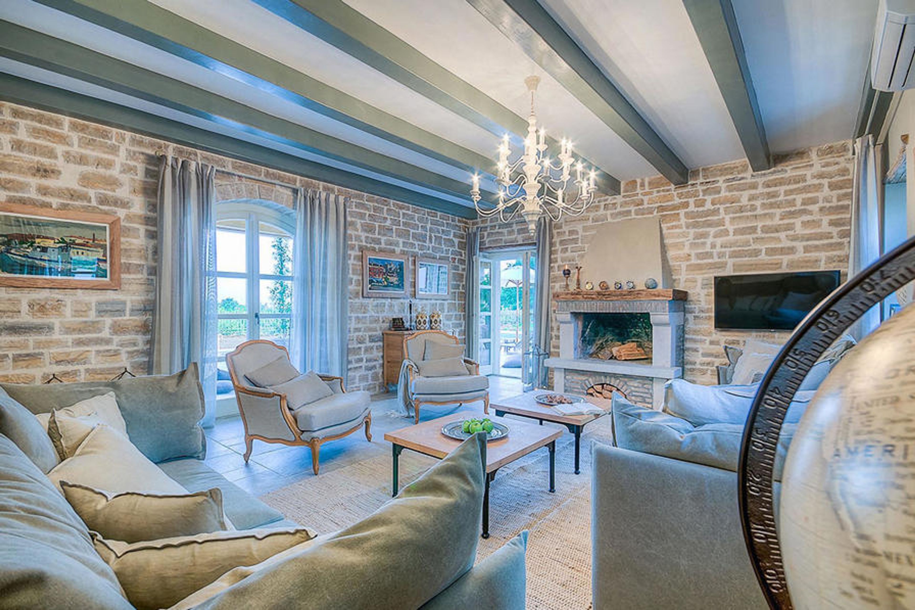 Elegant, stylish and superbly located amidst the picturesque Istrian countryside, yet still close to sunny beaches and lively coastal towns, Villa Nevia offers luxurious accommodation where you can relax and enjoy every minute of your vacation. The first floor is entirely dedicated to lavish entertaining. The wonderfully spacious room is divided by a stone archway into living, dining and cooking areas, with huge French windows bringing in an abundance of warm Istrian light. Natural stone walls, wooden beamed ceilings and the magnificent open fireplace create a warm, cozy atmosphere, while the mix of modern and vintage furnishings and exquisite décor provide you with first-class comfort. Three bedrooms are spread across the upper floor, while the other two on the first floor open directly onto the enticing private pool, a wonderful place to relax and unwind. The pretty, covered veranda with its authentic built-in barbecue and large dining table is an attractive refuge from the summer heat, as well as the perfect spot for enjoyable al fresco meals.