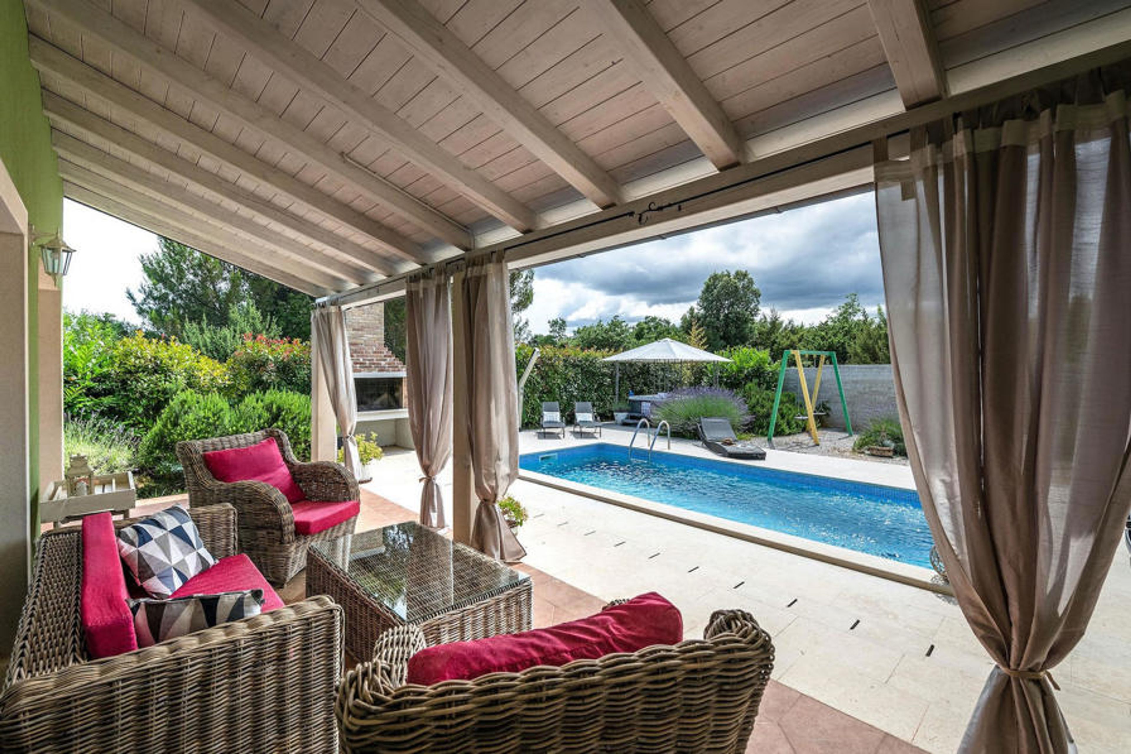 You will certainly enjoy the fully fenced outdoor area of Villa Branka. Here you will find a private pool, an outdoor jacuzzi, a lounge and a children's playground. Take advantage of the refreshing pool to escape the summer heat and enjoy the outdoor jacuzzi on warm summer nights. Show off your cooking skills at the barbecue and enjoy freshly prepared meals at the dining table on the outdoor terrace. Villa Branka offers everything to make your holiday dreams come trueThis charming villa is located in a small village on the east coast of Istria - Rakalj. It is the perfect starting point for day trips to the famous towns of Pula, Rovinj and Opatija. Rakalj offers a perfect combination of relaxing and active holidays. In the nearby harbour there is an excellently equipped diving centre for both beginners and advanced divers. Here you have the opportunity to discover old sunken ships, spectacular underwater caves and cliffs.