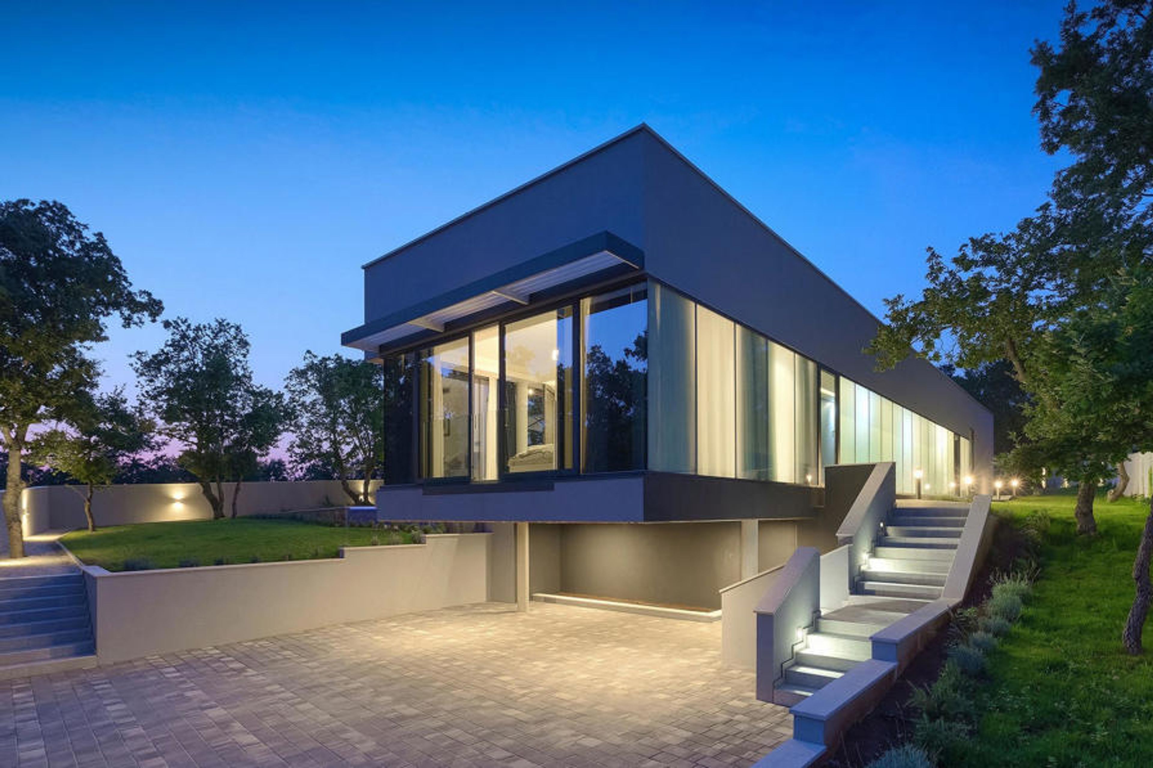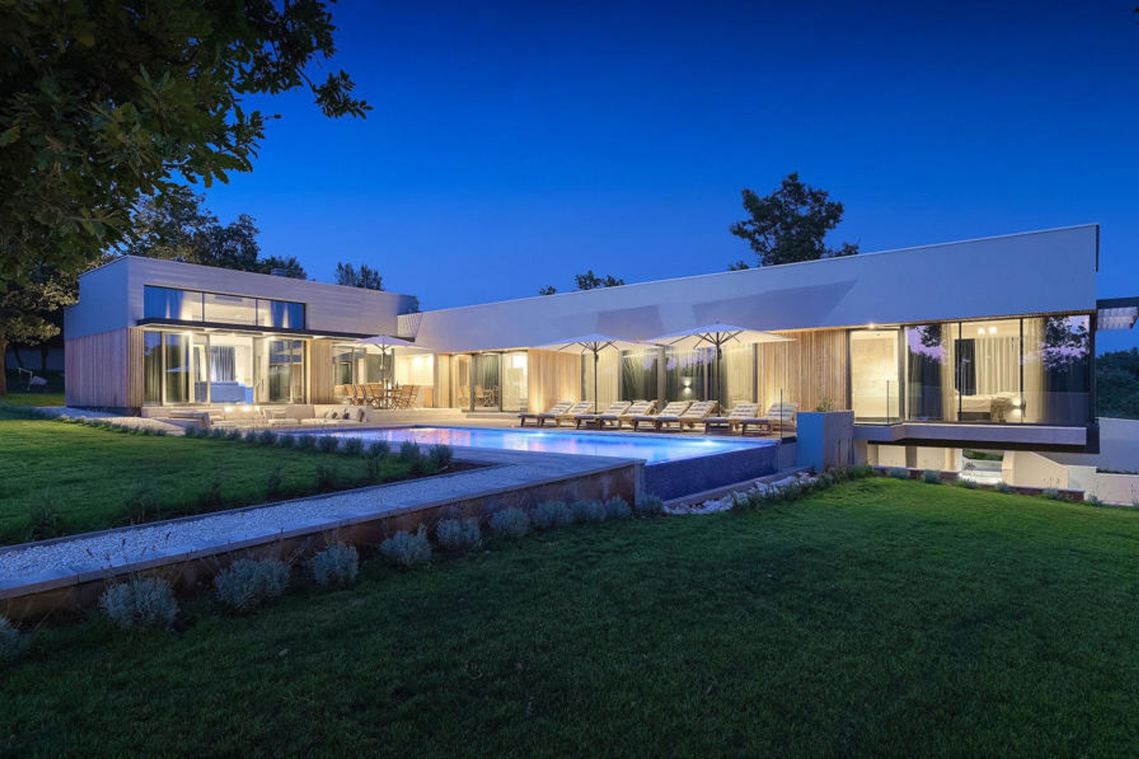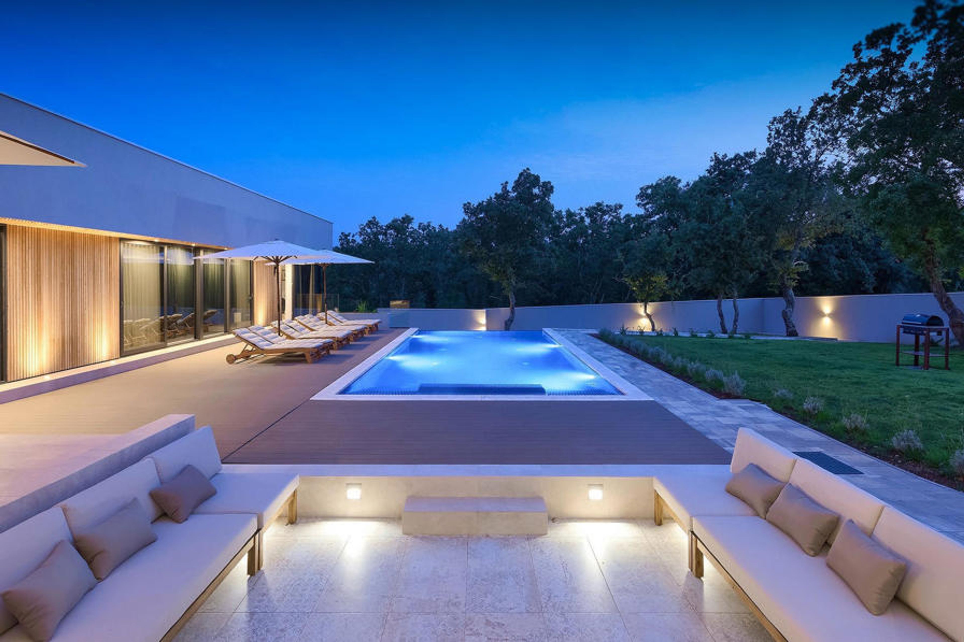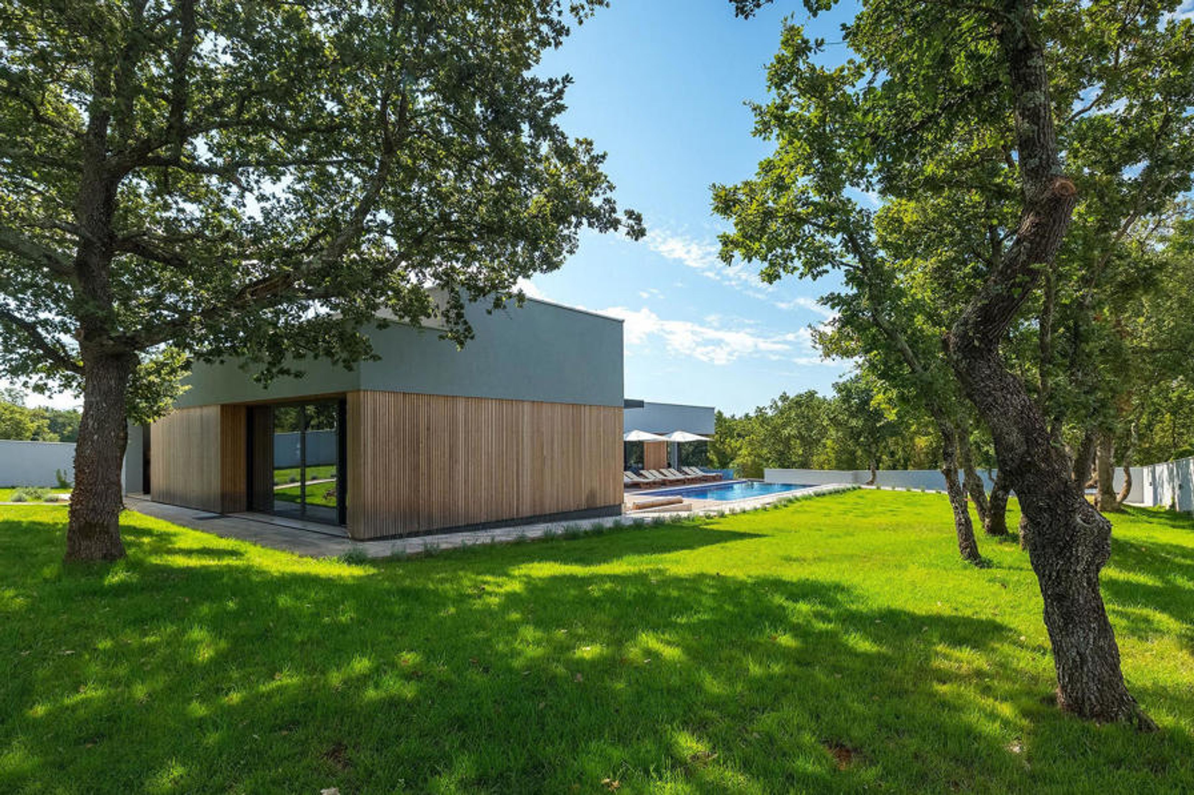 The mesmerizing Villa Agnes is located in the tranquil Istrian countryside in a small village called Butkovici. This beautiful gem of modern architectural design is surrounded by a forest and features a 60 m² private pool as well as a 2500 m² green garden with a barbecue and a hammock.