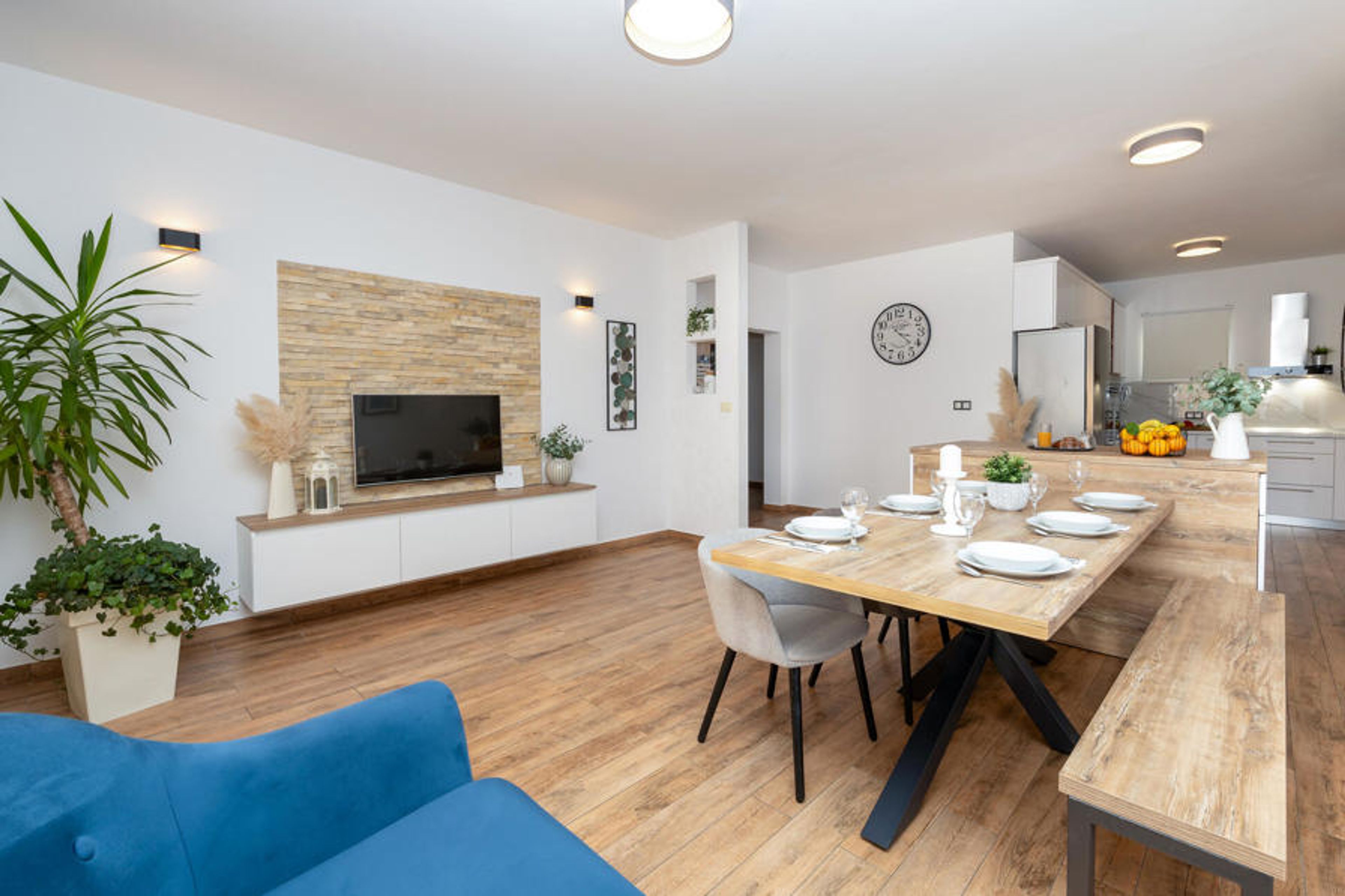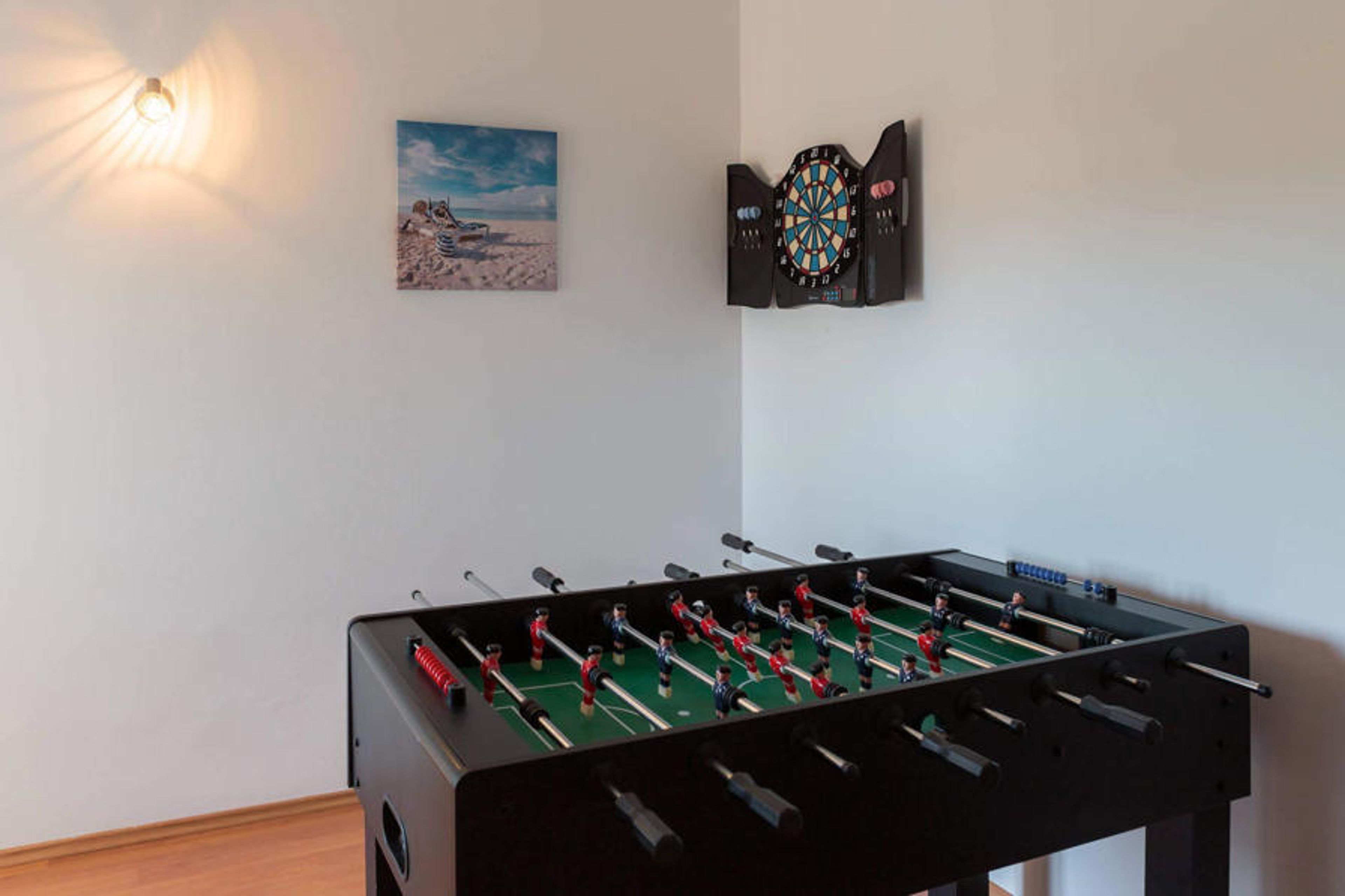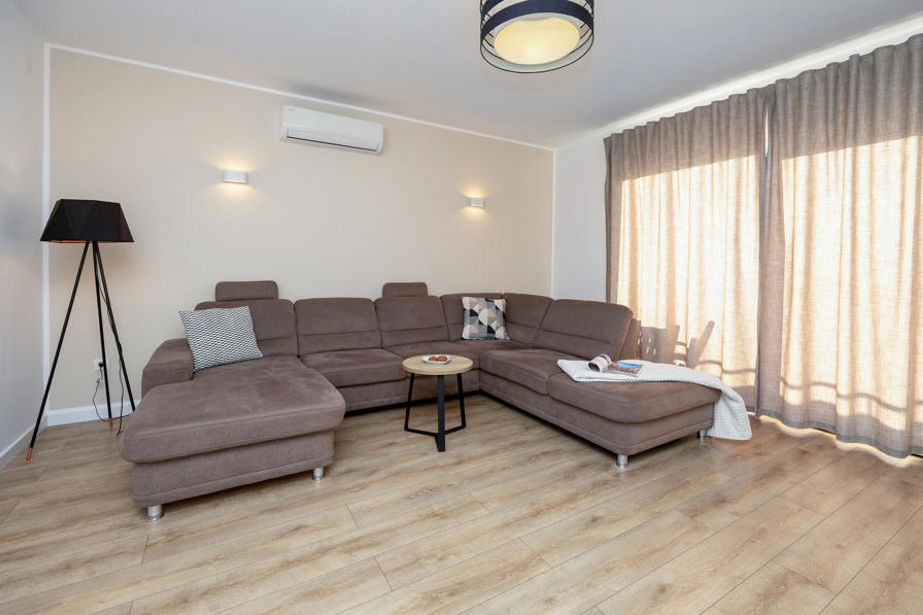 Travel to Kucine with your loved ones and look forward to relaxation, sun and this comfortable vacation home. Two fully equipped floors invite two family friends to spend their vacation here together. Entertainment is provided by table football or darts as well as time in and around the pool. The interior of the house is modern and chic and promises you the ideal parameters for a great vacation. You can also use the brick barbecue and enjoy delicious dinners on the terrace while enjoying the view.