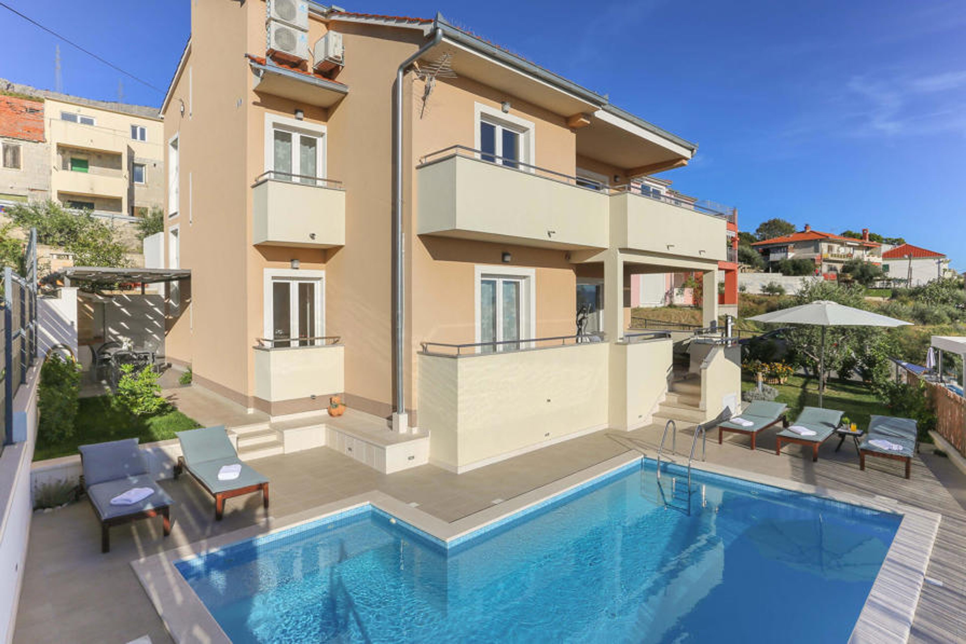 This spacious vacation home with pool welcomes you in the hinterland of Split with a beautiful view of the countryside.