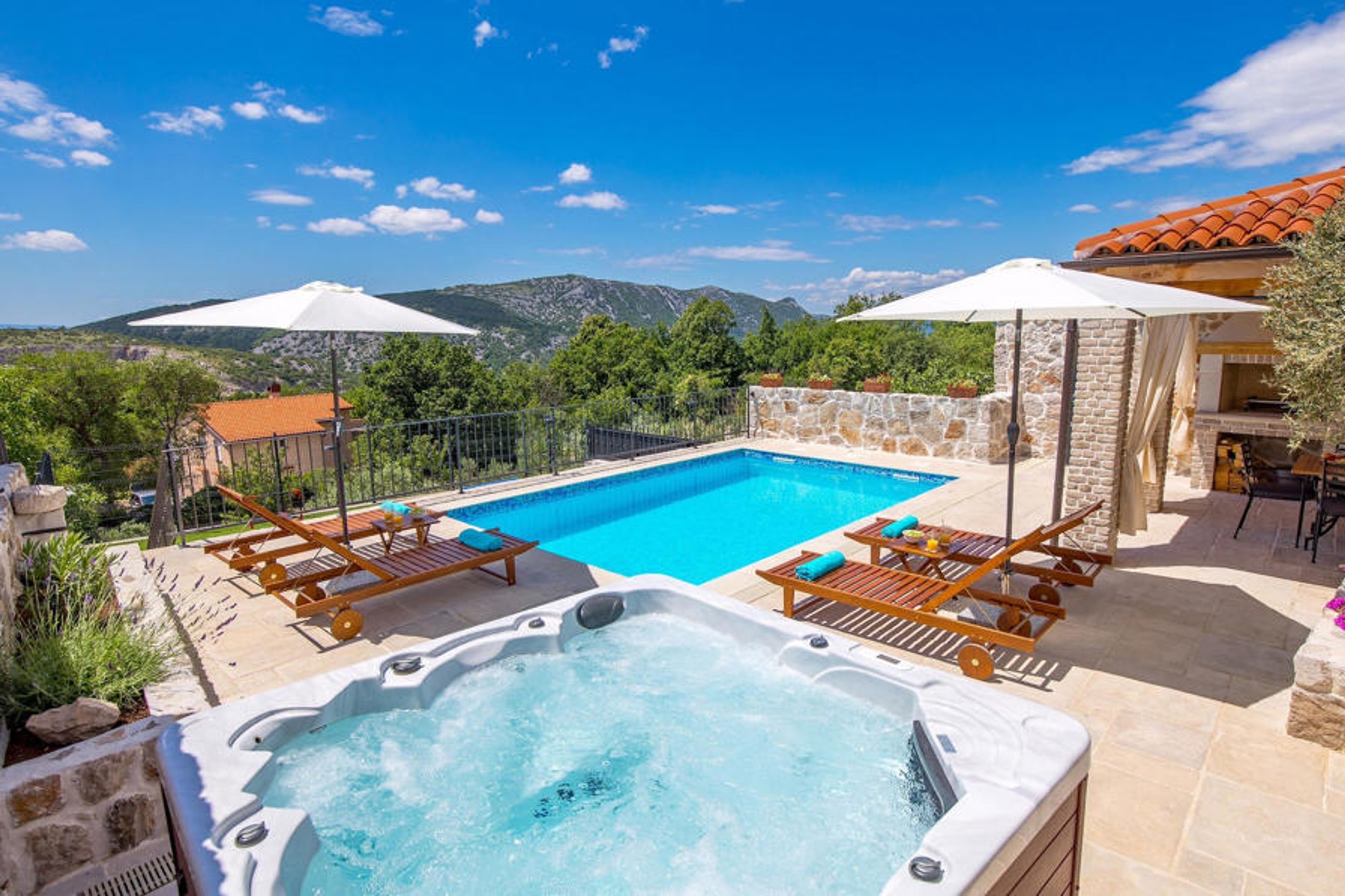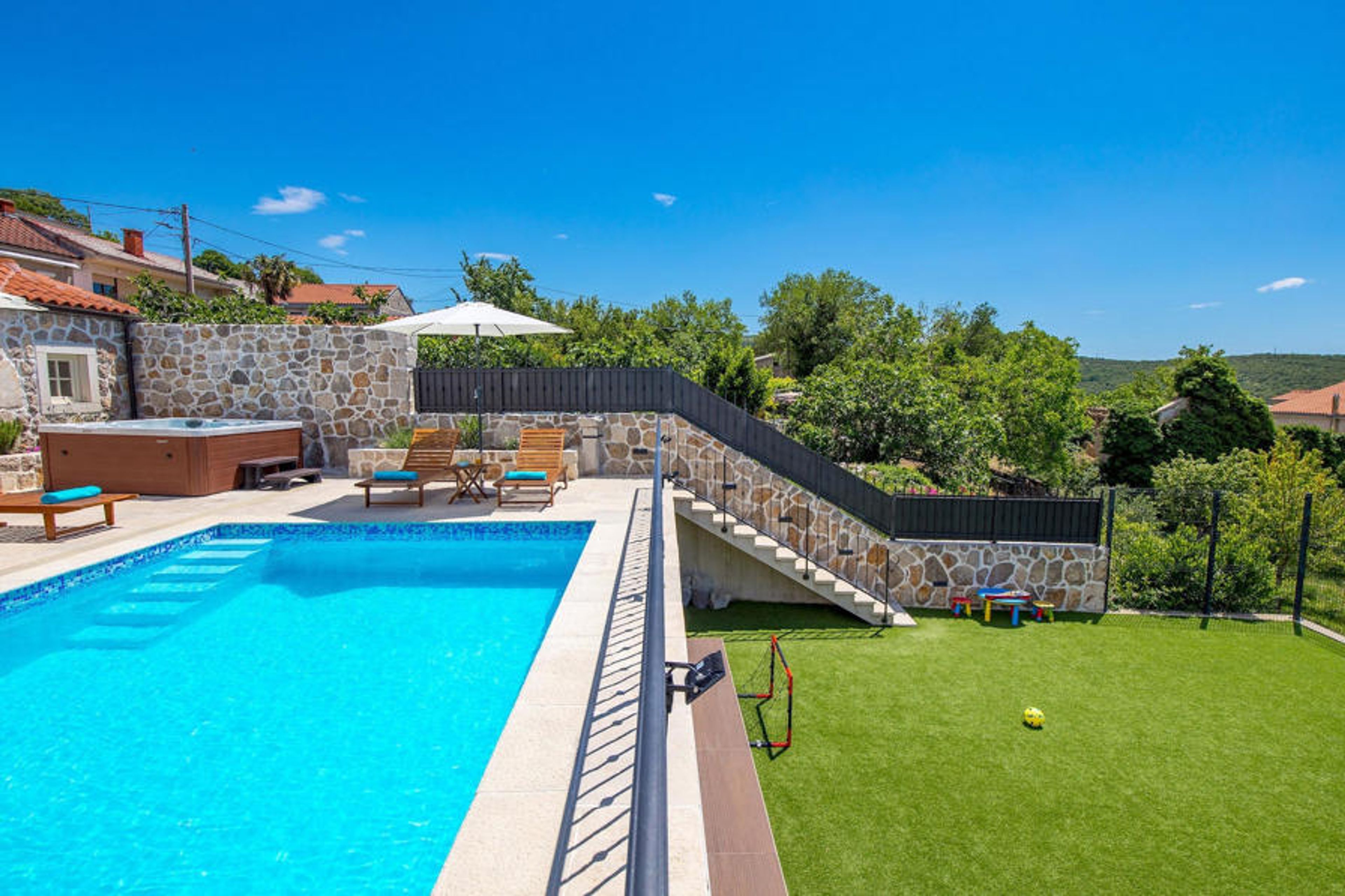 Villa Mavric, a beautiful stone villa, will give you a dream holiday. It exudes tradition and is reminiscent of the medieval castles typical of the Vinodol region. On the lowest floor of the house, with its own entrance, there is a bedroom with a private bathroom and a double bed decorated with a stone vault. Spend time for yourself in the lounge with fitness room and sauna, which is also located on the ground floor and has its own entrance. This floor is connected to the first floor via an external staircase. On the first floor of the house there is a bedroom with en-suite bathroom, an open-plan area with living room, a fully equipped kitchen and a dining room, whose wooden surfaces provide warmth and are ideal for preparing traditional recipes. Enjoy the morning sunshine with a coffee on the charming terrace on the first floor. On the second floor there is another cosy bedroom with an en-suite bathroom. All bedrooms are equipped with TV and air conditioning. Directly opposite the access road there is a car park and a garden with swimming pool. Take a refreshing dip in the pool or whirlpool and enjoy the panoramic views of Griane. In the covered area by the pool you can enjoy unforgettable gatherings with family and friends over a barbecue, refreshing drinks, board games or darts. Have fun playing table tennis in the garden under the pool. There is a table and chairs in the garden that are ideal for children to play on. Don't miss out on a holiday you will remember for a long time to come and enjoy the local atmosphere of Griane. Griane is a village near Crikvenica. It is known for its medieval castles and the rich history of the Frankopan family. You will be amazed by the surrounding forest and the tranquillity that this place offers. There are many hiking and cycling trails that connect you to the coast of Crikvenica and the beautiful beaches. Enjoy the rich traditional gastronomic offer. Crikvenica, Selce, Dramalj, Jadranovo are only a few kilometres away. Not far from Griane is the Plitvice Lakes National Park. Visit this small place where you will be enchanted by the scent of the medicinal pine forest and the sea, and discover the wide selection of restaurants in the area.