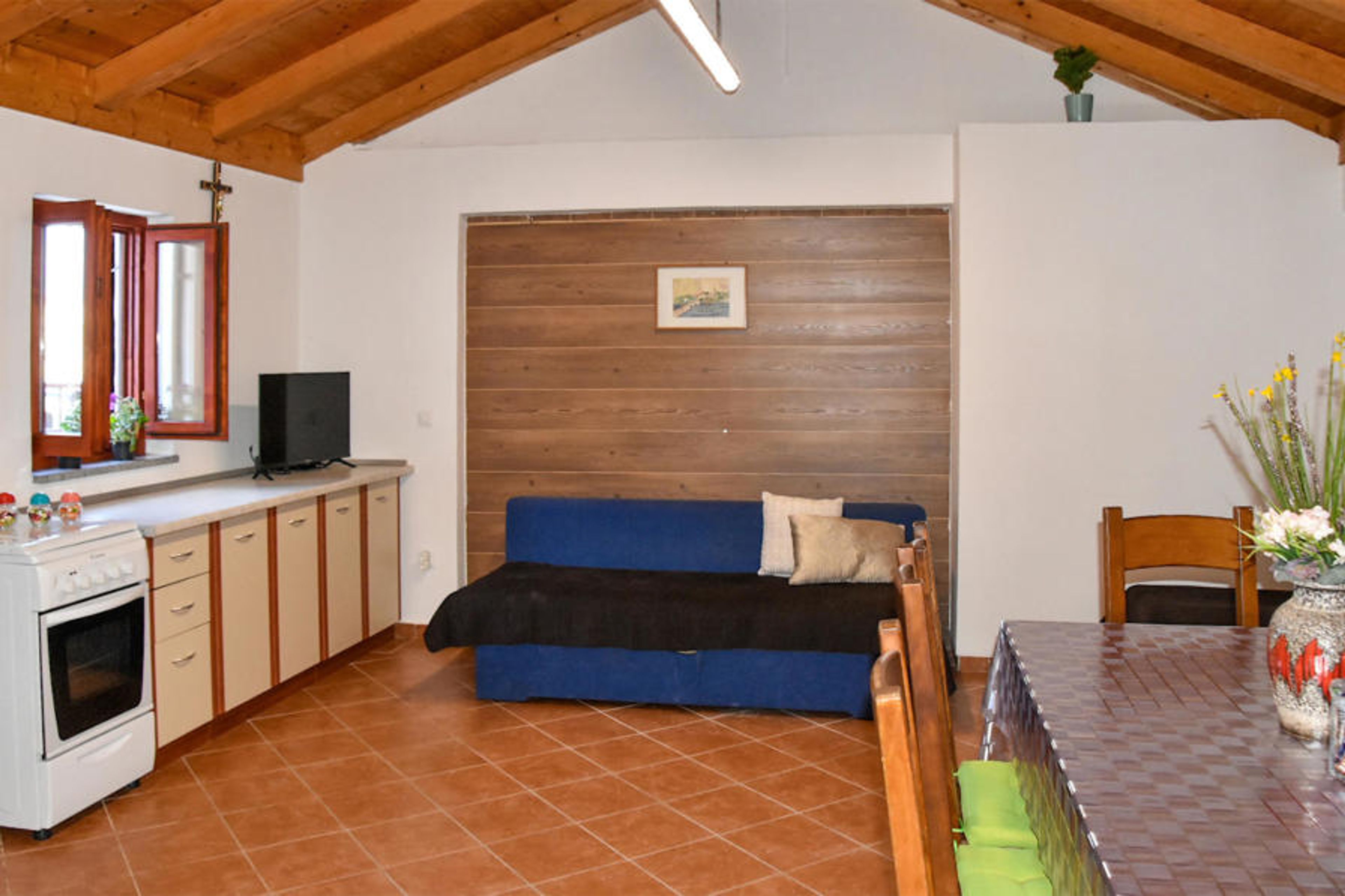 This cozy house is in a wonderful location for exploring the coast and the royal town of Nin and is within walking distance of the beach. The rooms are bright and homely, with beautiful wooden elements and friendly colors that create the ideal setting for a relaxing time together. Cook dinner together after an eventful day and relax on the sofa at the end of an eventful day.