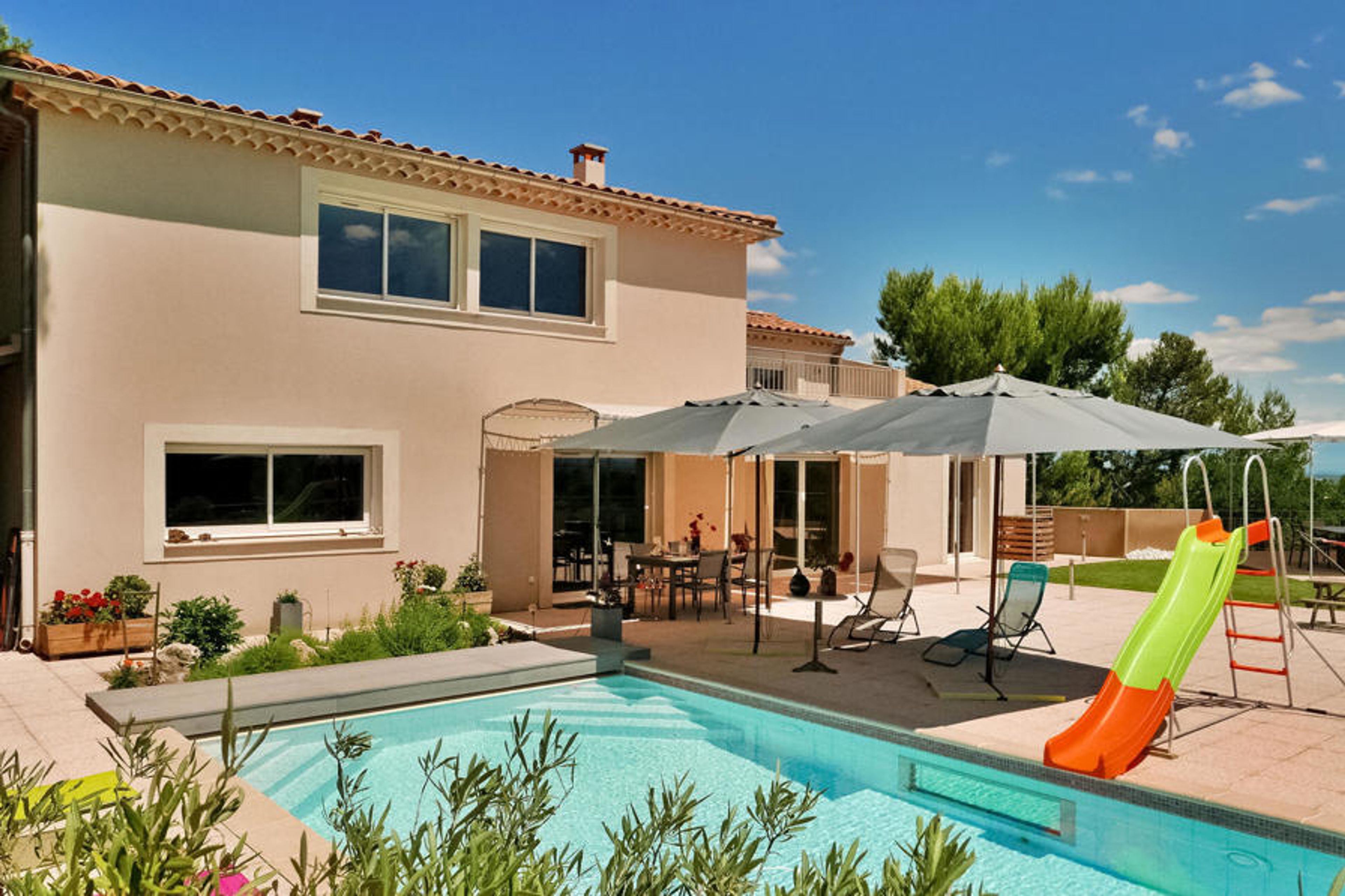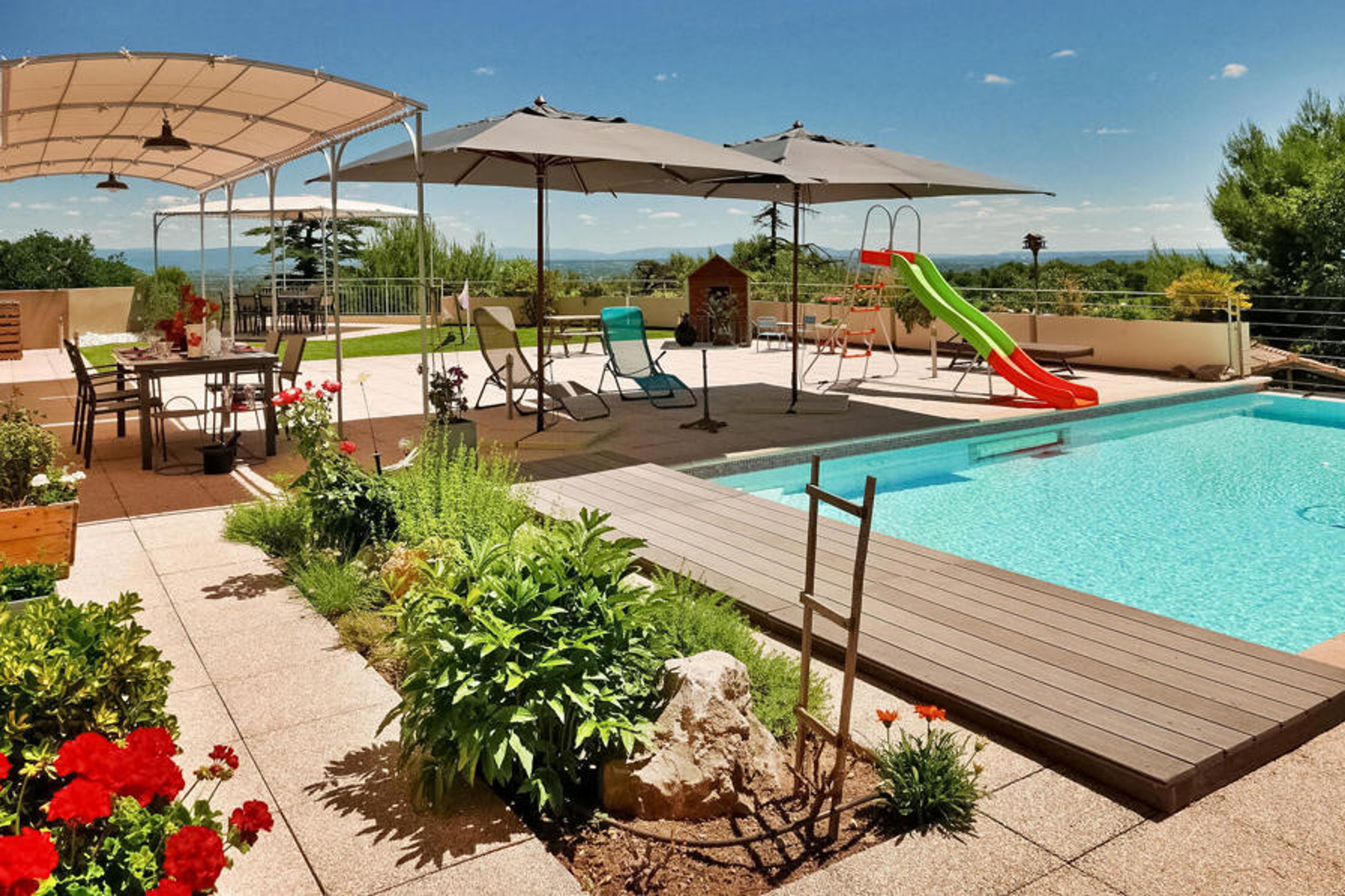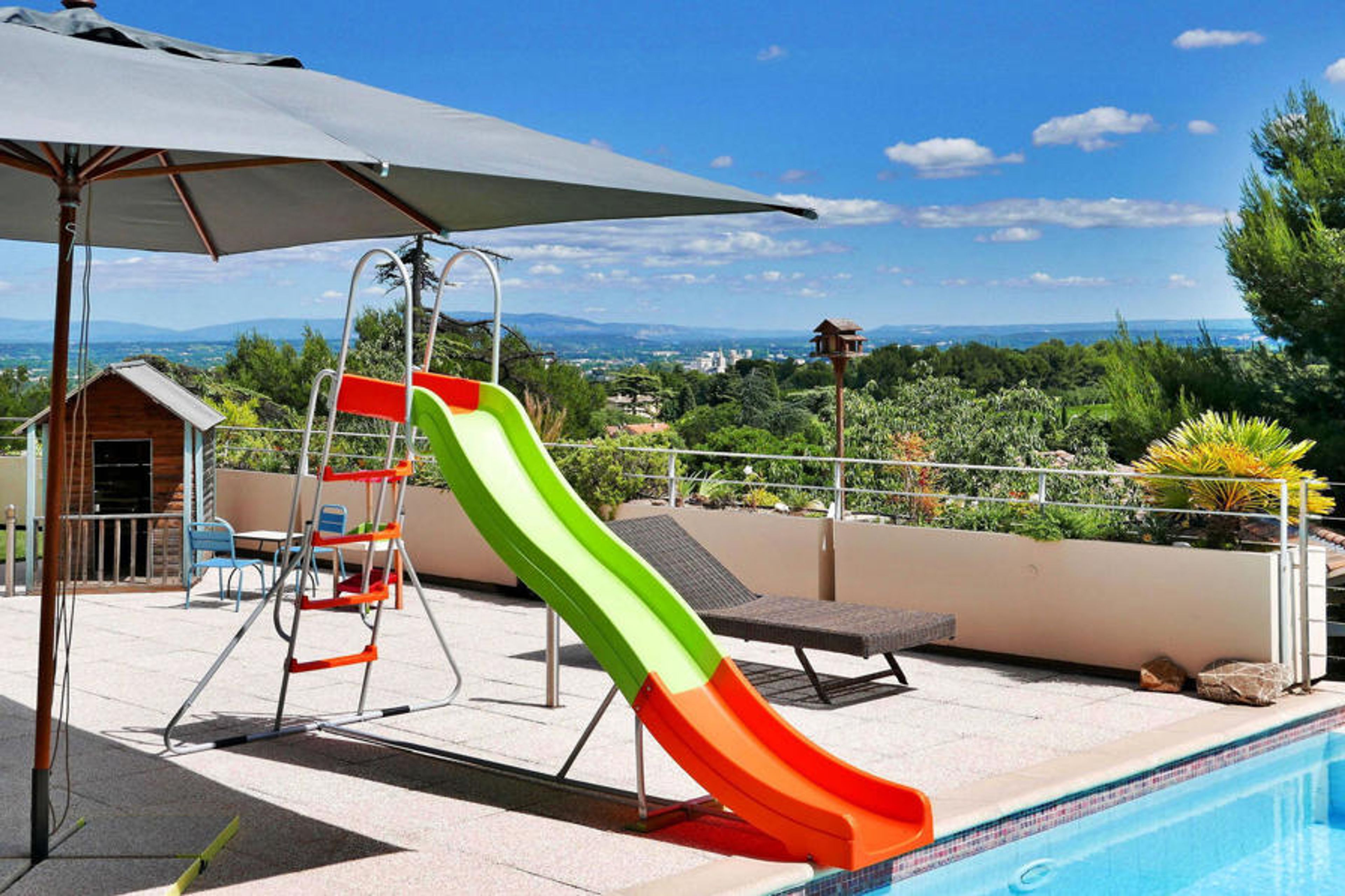 This holiday villa in Villeneuve lez Avignon offers panoramic views from Ventoux to the Alpilles mountain chain.