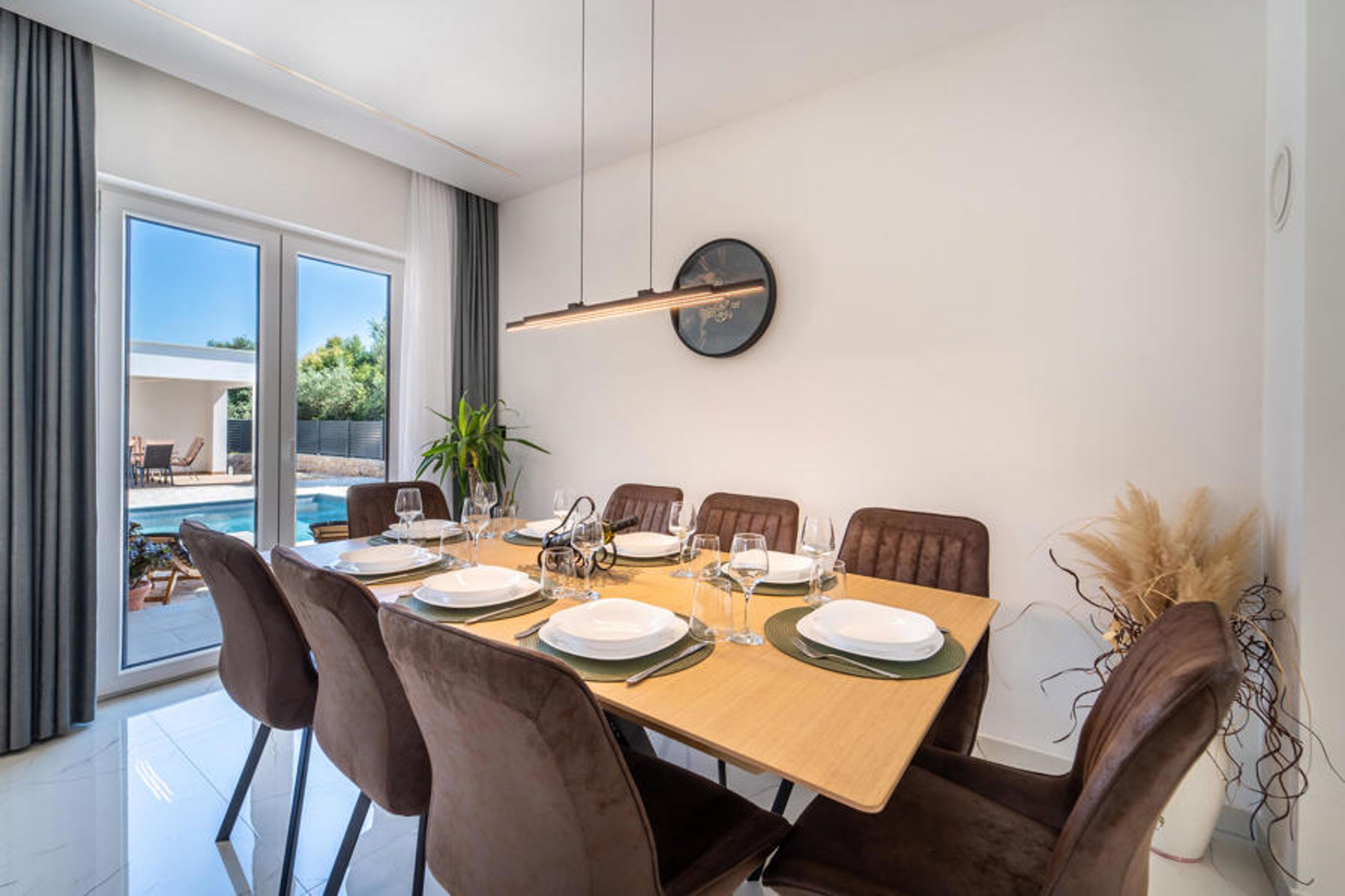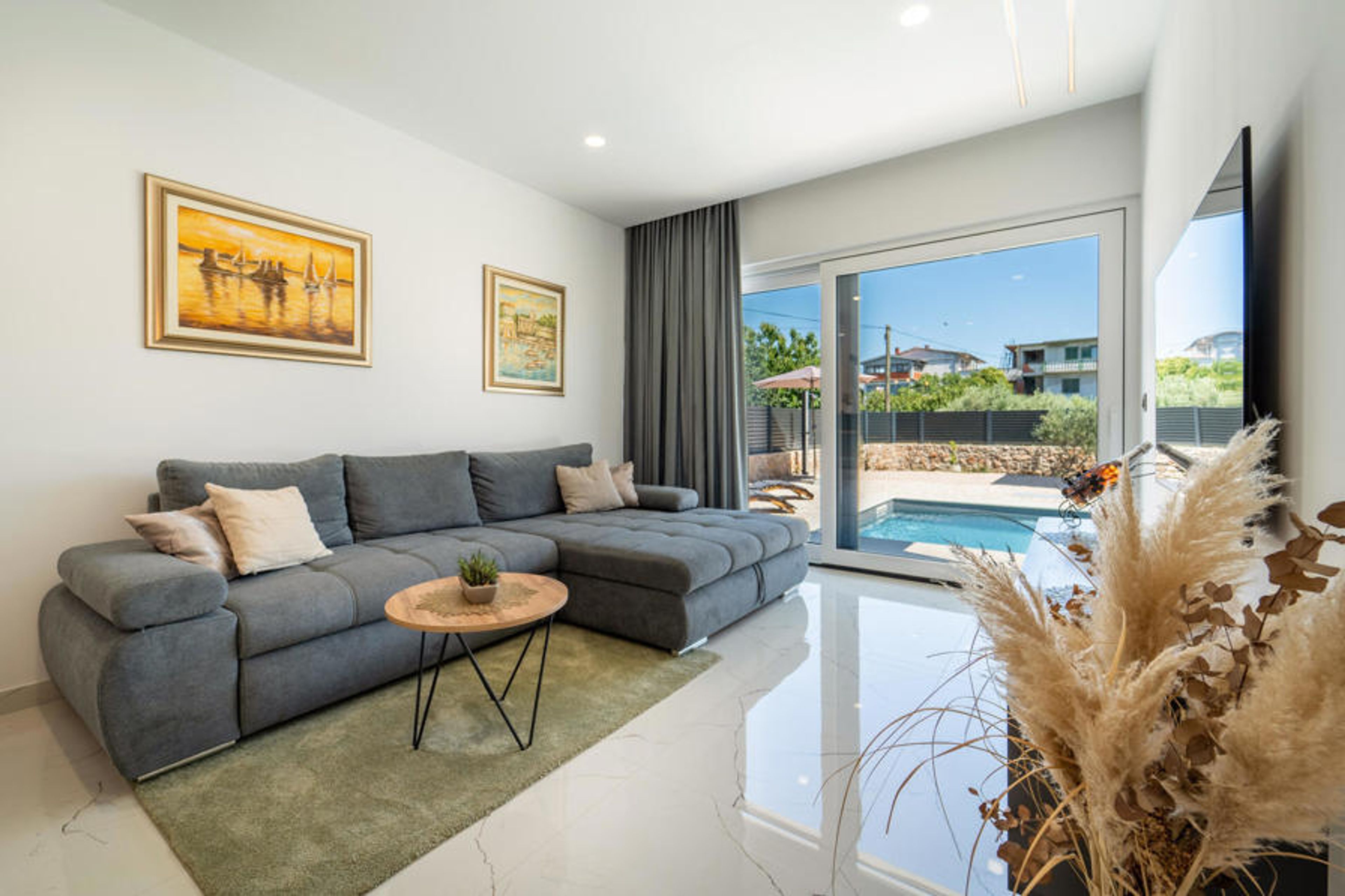 In this charming vacation home in Sukosan, you will experience an unforgettable vacation full of comfort and relaxation. The modern interior design, characterized by stylish furniture and bright rooms, creates a pleasant atmosphere. The particularly well-equipped kitchen and the cozy living room invite you to enjoy convivial evenings.