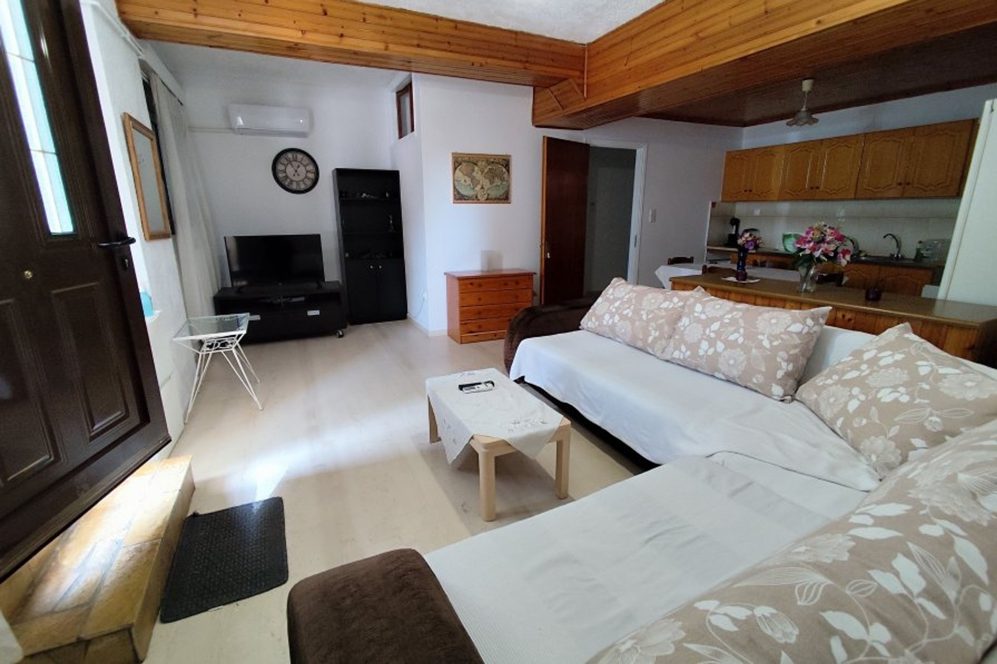 The apartment is built in a way to keep cool in summer and warm in winter (3 steps below the surface), located in a quiet family area, in a family apartment building. Also it has it's own entrance so you have your privacy entering the apartment.