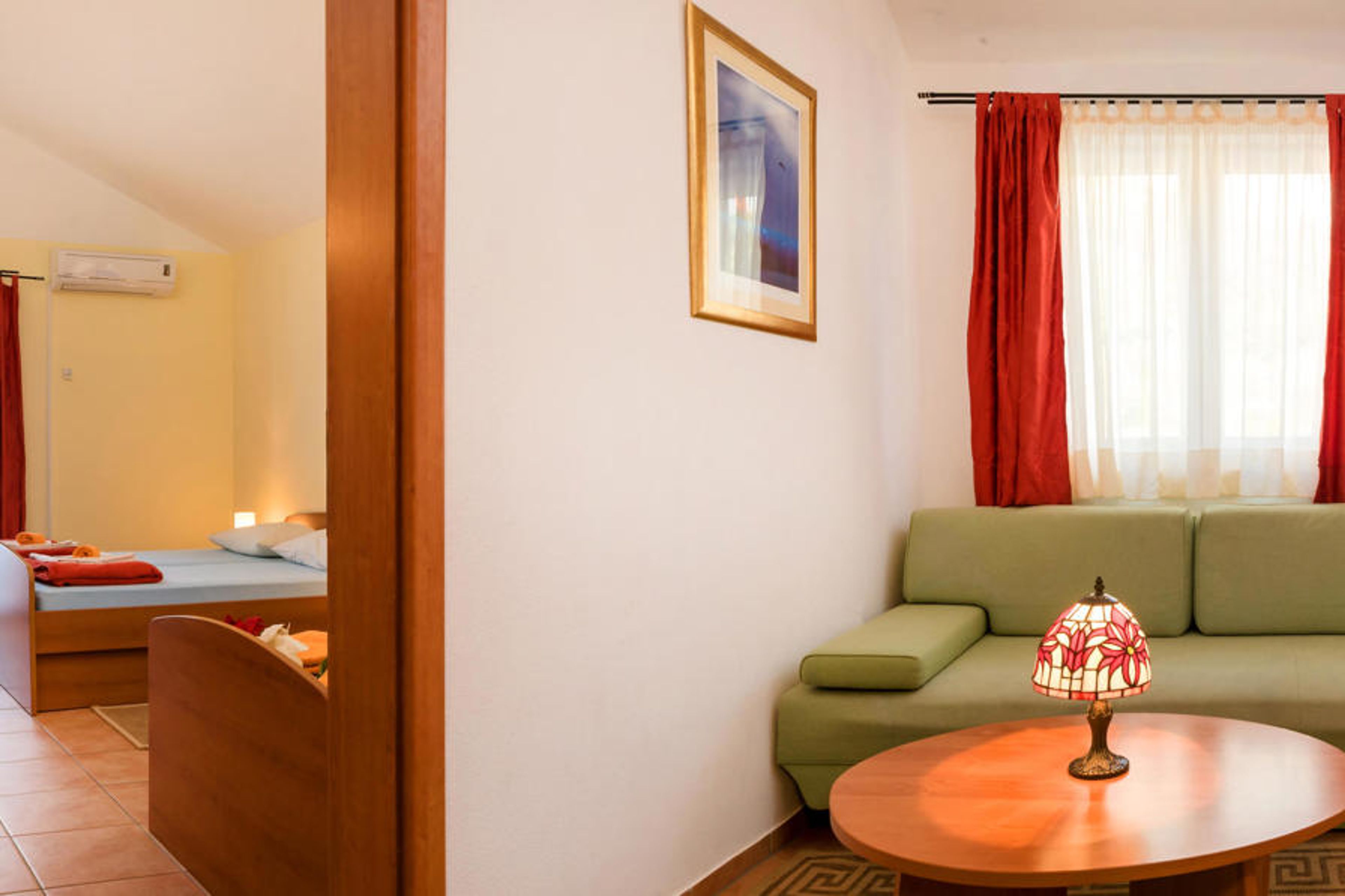 The inviting vacation apartment welcomes you in a good location above the center of Baska Voda near the beach and is the ideal place for a relaxing break with the right mix of activities and relaxation. Use the homely rooms with warm colors as the basis for a wonderful vacation, in which you can explore the surroundings and enjoy the beach life to the fullest.