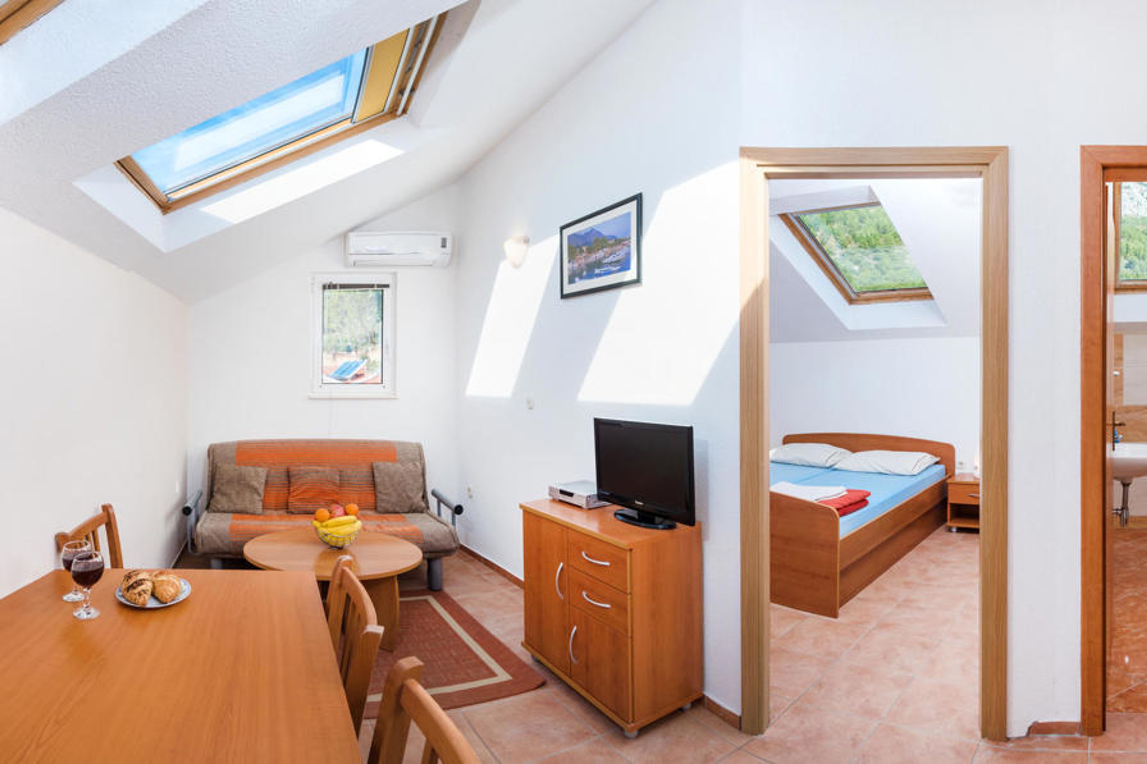 The inviting vacation apartment welcomes you in a good location above the center of Baska Voda near the beach and is the ideal place for a relaxing break with the right mix of activities and relaxation. Use the homely rooms with warm colors as the basis for a wonderful vacation, in which you can explore the surroundings and enjoy the beach life to the fullest.
