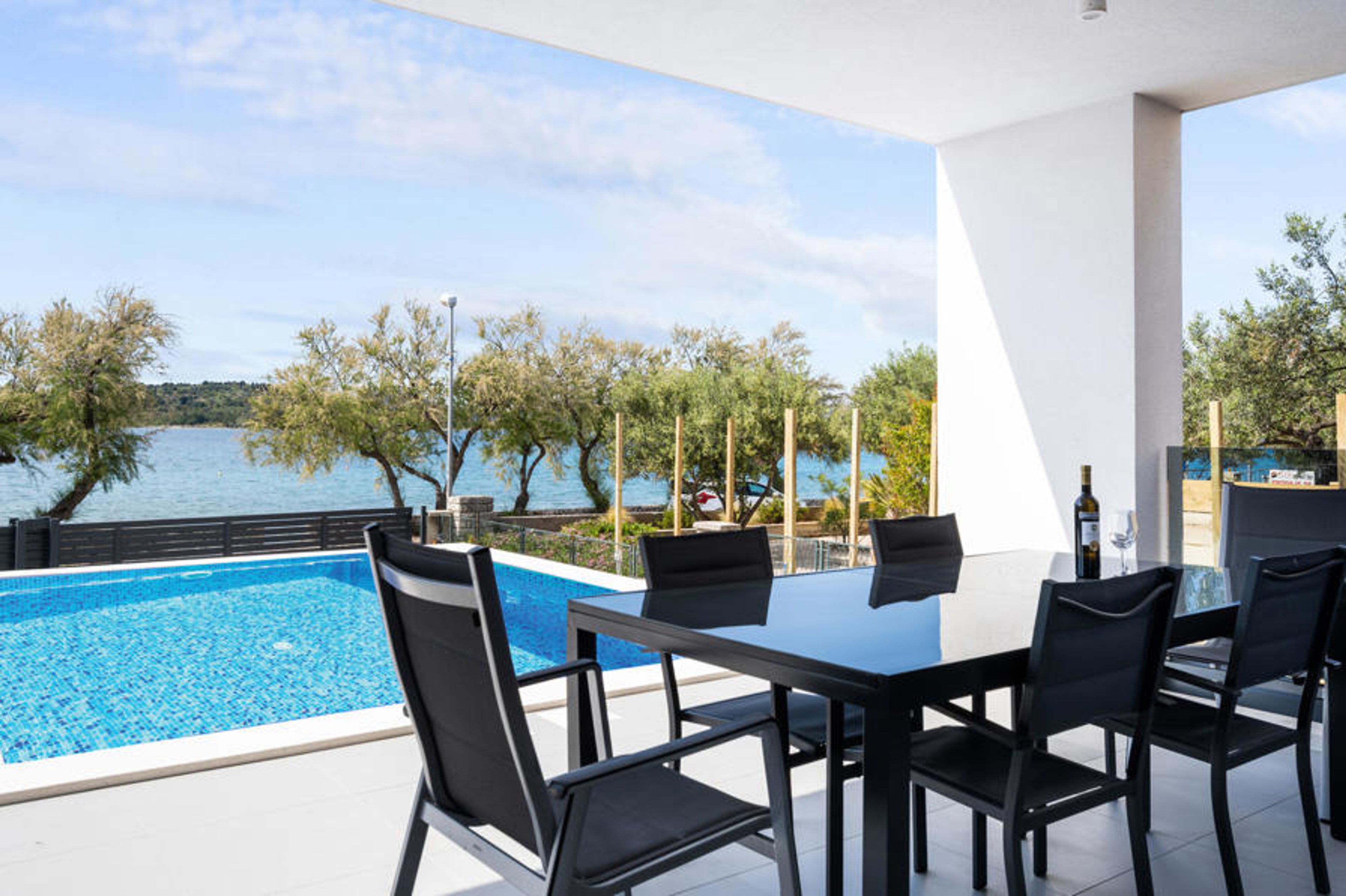 Beautiful and modern apartment with private pool in the first row of water in Vodice.