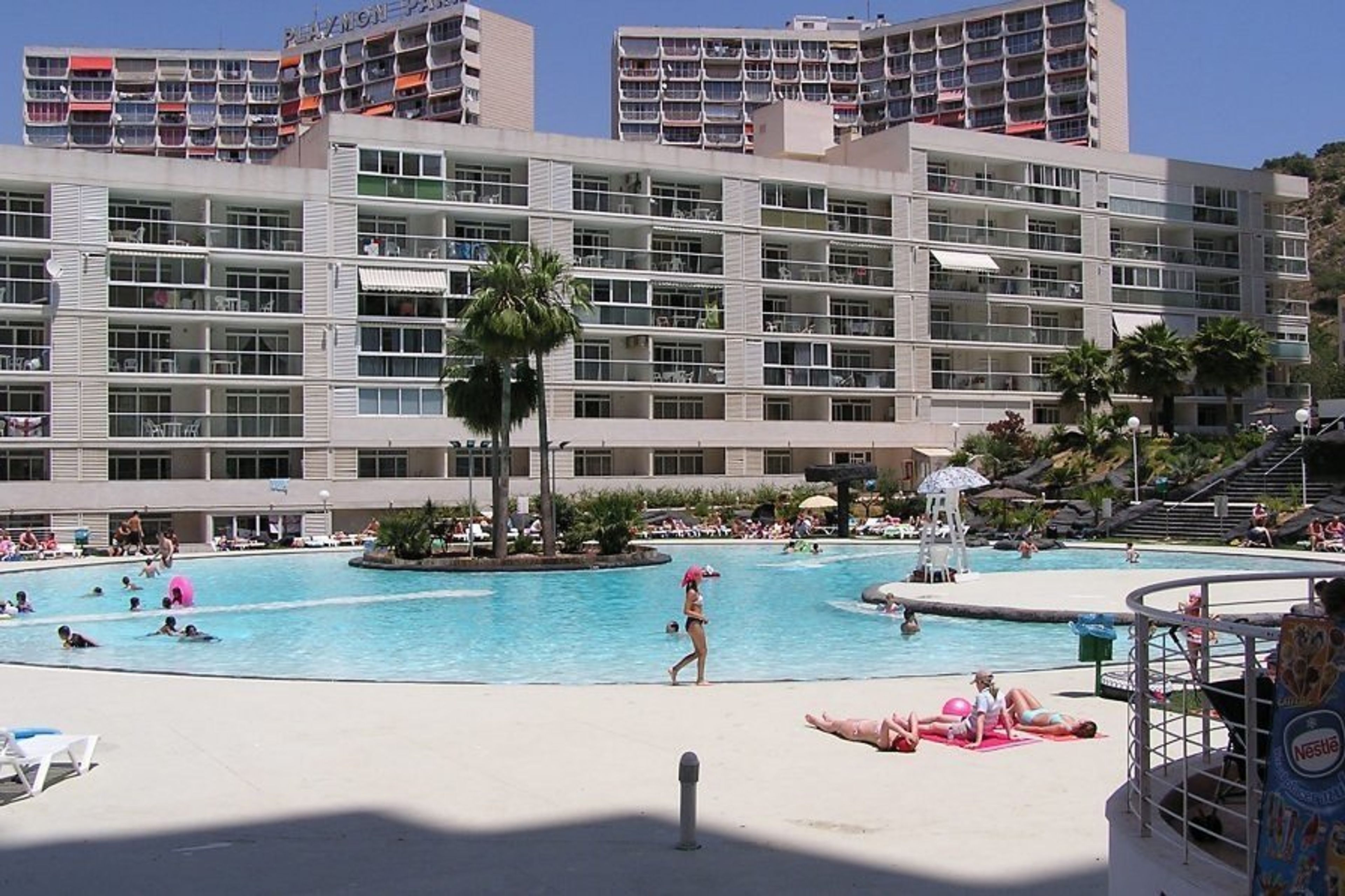 These apartments have the biggest swimming pool of all the hotels and apartments of Benidorm. And one of the more beautiful urbanizations of Benidorm. The complex have 4 buildings (nearly 400 apartments: Vacanza Building, Tower Montecarlo, Tower Monaco and San Marino Building) Full a square of streets.
