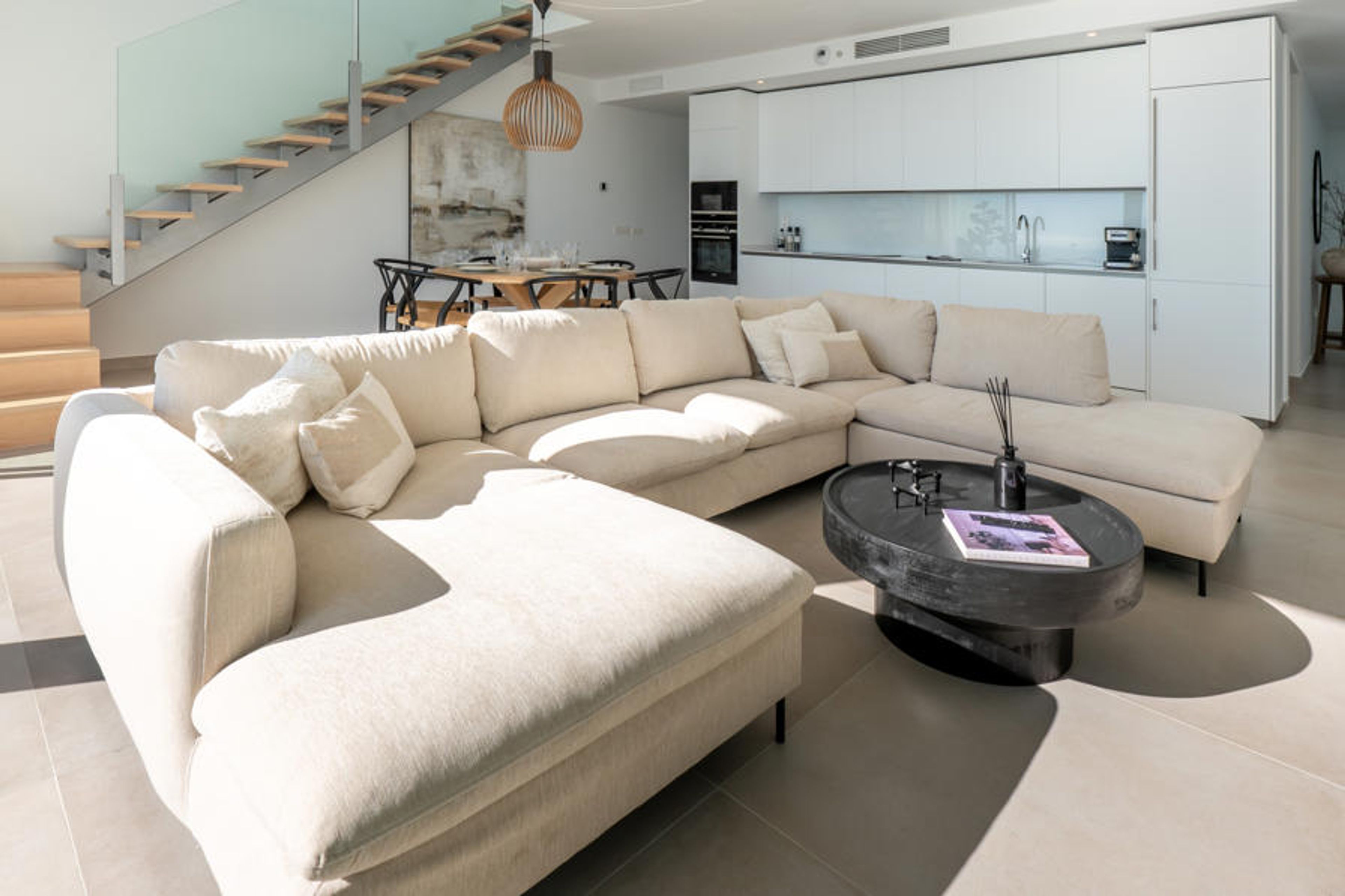 Upon entering this remarkable apartment, modern design blends with a panoramic view of the Mediterranean Sea and the mountains of Africa. You feel instantly at ease as you explore the rest of the beautiful duplex.