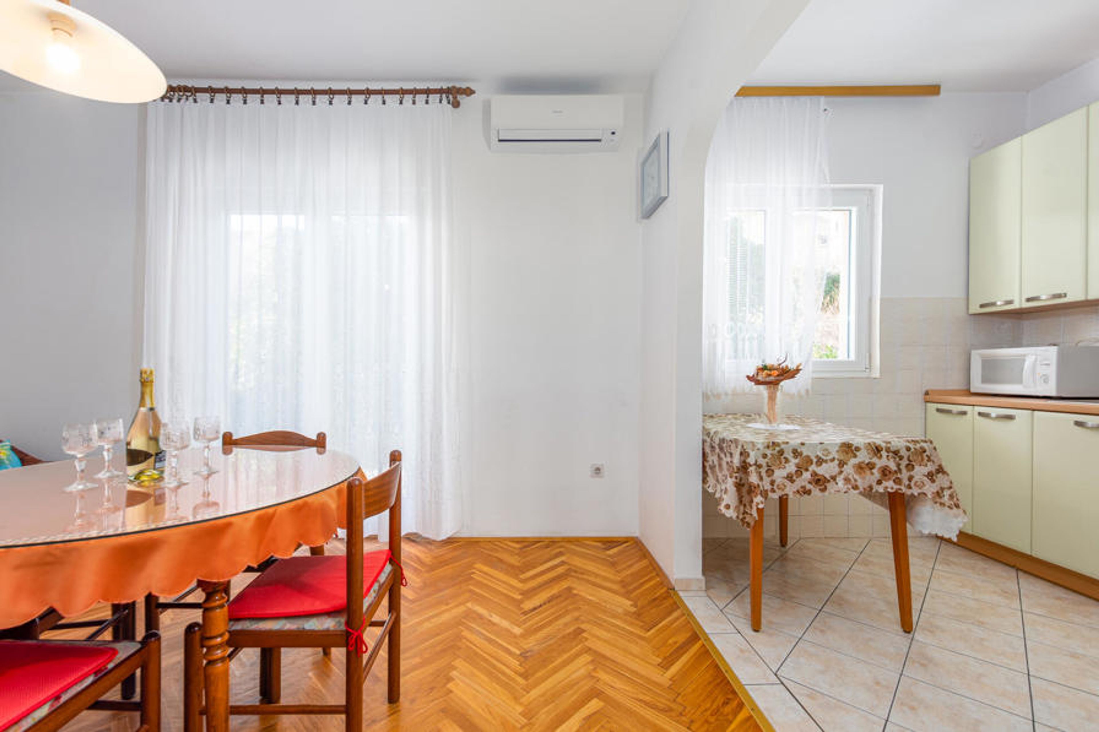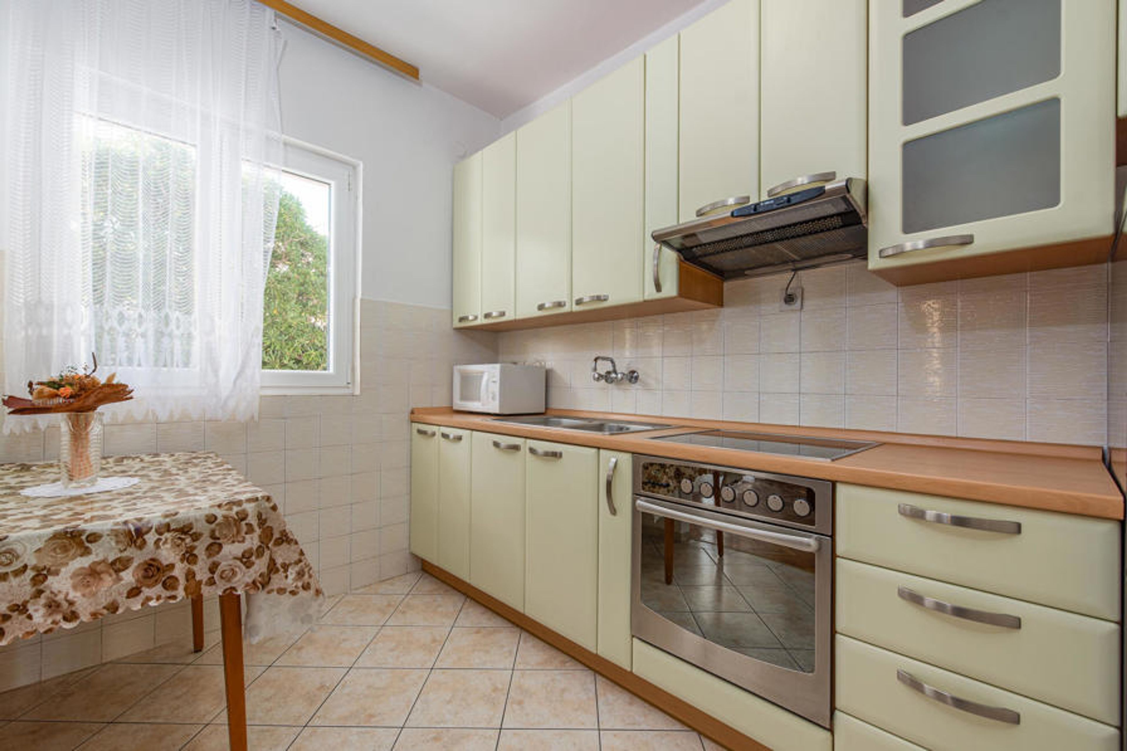 This practical apartment is the ideal vacation home for your beach vacation on the island of Pag. Here you will find everything you and your family need to feel at home. Relax on your balcony or spend time on the large terrace with sea view, which is available for shared use. Have a barbecue in the evening with a view of the sea and chat with the other guests in the house. If you are a large family or a group of friends, you can book several apartments in the house.