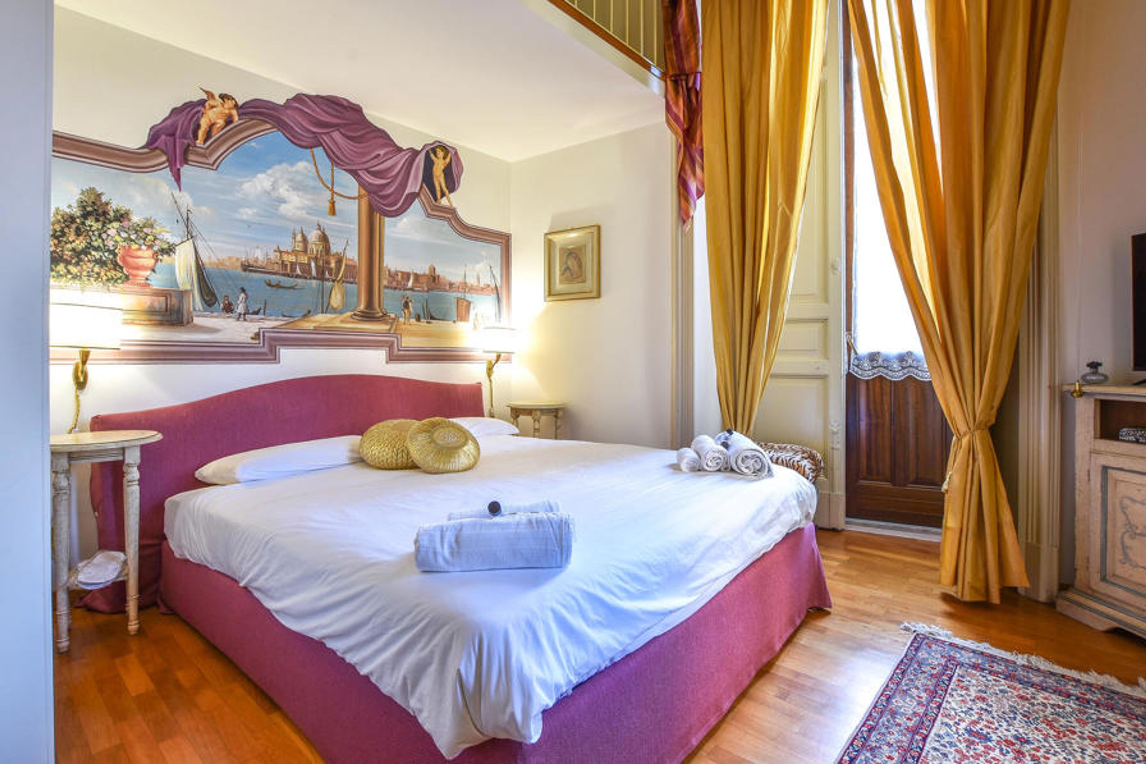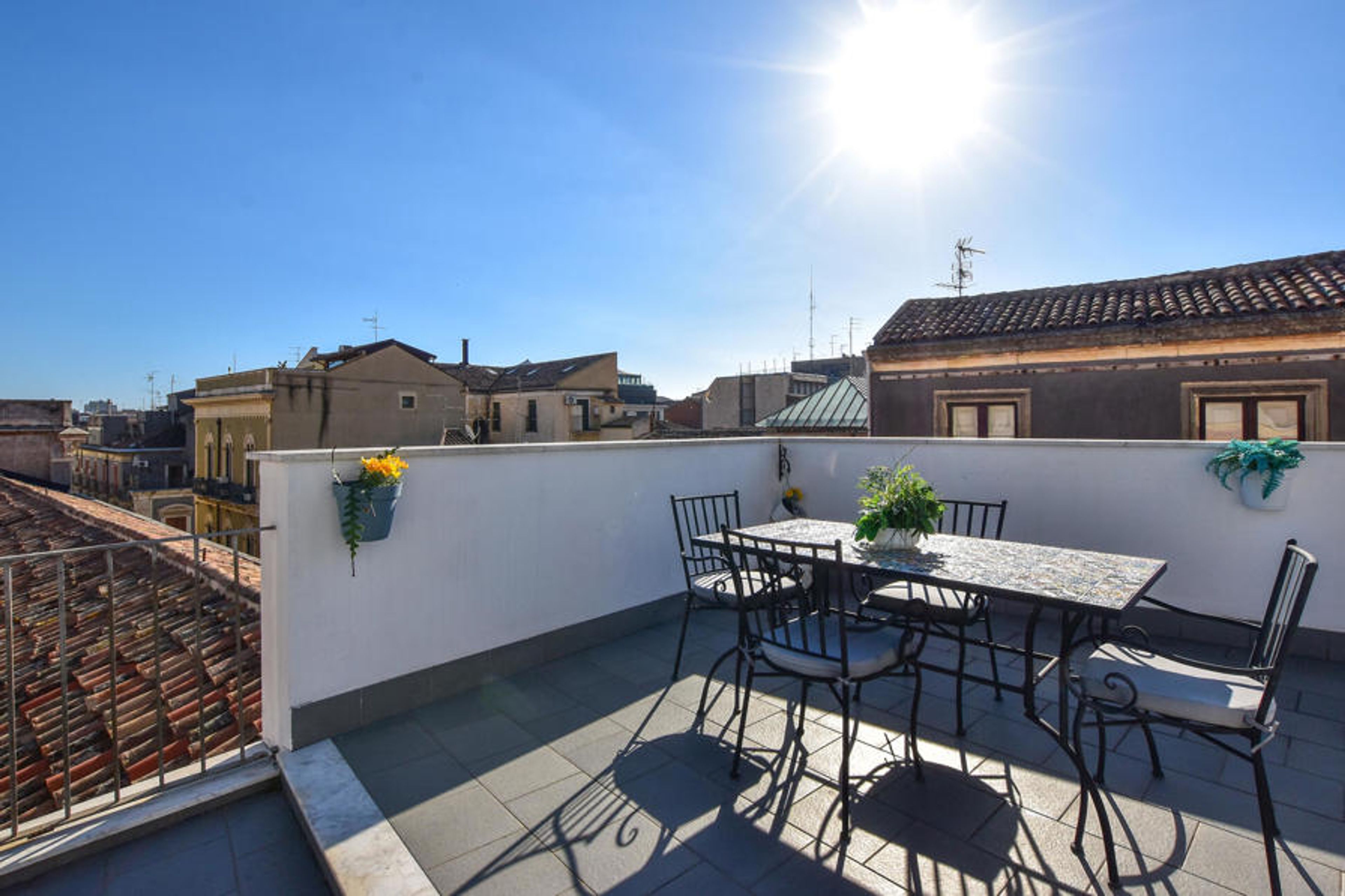 Welcome to this city apartment with historical flair and an excellent location, just a short walk from the Greek Amphitheater, Villa Bellini, Via Etnea and the Cathedral of Sant'Agata. With its elegant living space with gallery and grandiose details, the apartment in a building dating back to 1800 conveys an impression of the glamor of times gone by. This makes the apartment ideal for anyone looking for somewhat unusual accommodation. On the upper floor, you can really admire the beautiful coffered ceilings. Relax here after exploring the city and enjoy your time together. You can talk about your many adventures late into the night on the sofas. A beautiful roof terrace with tables, chairs and barbecue allows you to dine al fresco.
