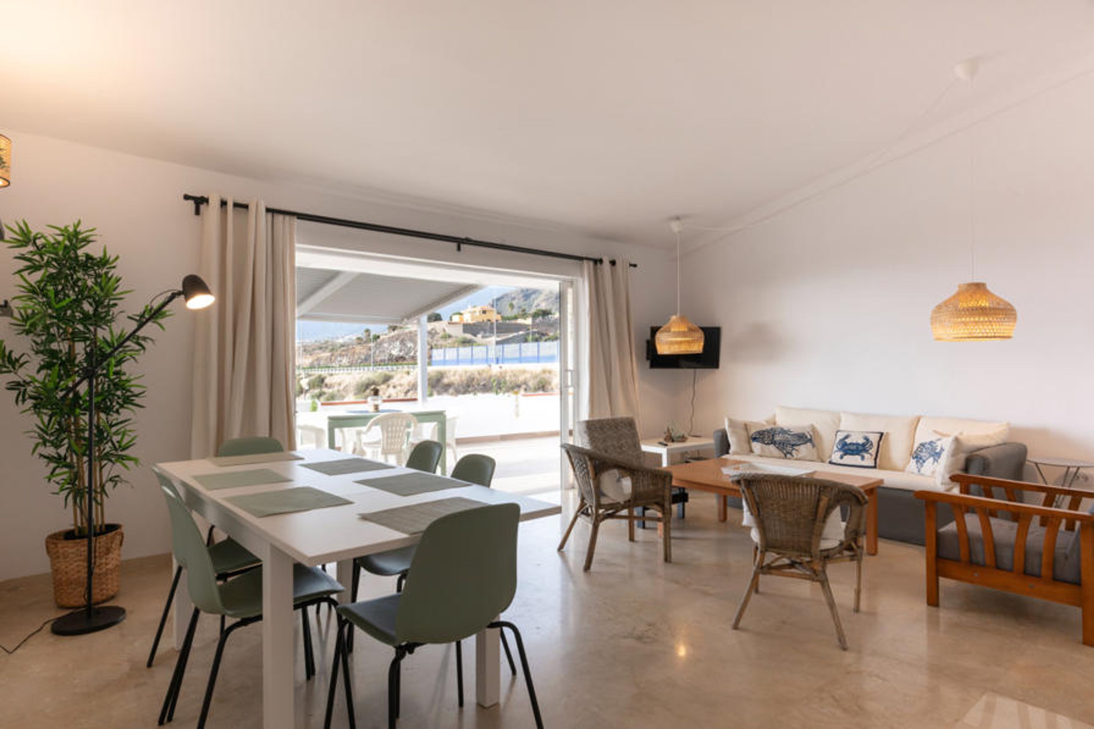 The house is very modern with minimalist decor, spacious, comfortable, and very bright, with an area of 240 m². Additionally, it features a wonderful and spacious terrace from where you can enjoy magnificent sea views, while also being able to enjoy a marvelous dinner, as it has a table and chairs outside. You can also enjoy the great climate of the area in the loungers you will find on its spectacular terrace, relaxing on them and enjoying the sunset.