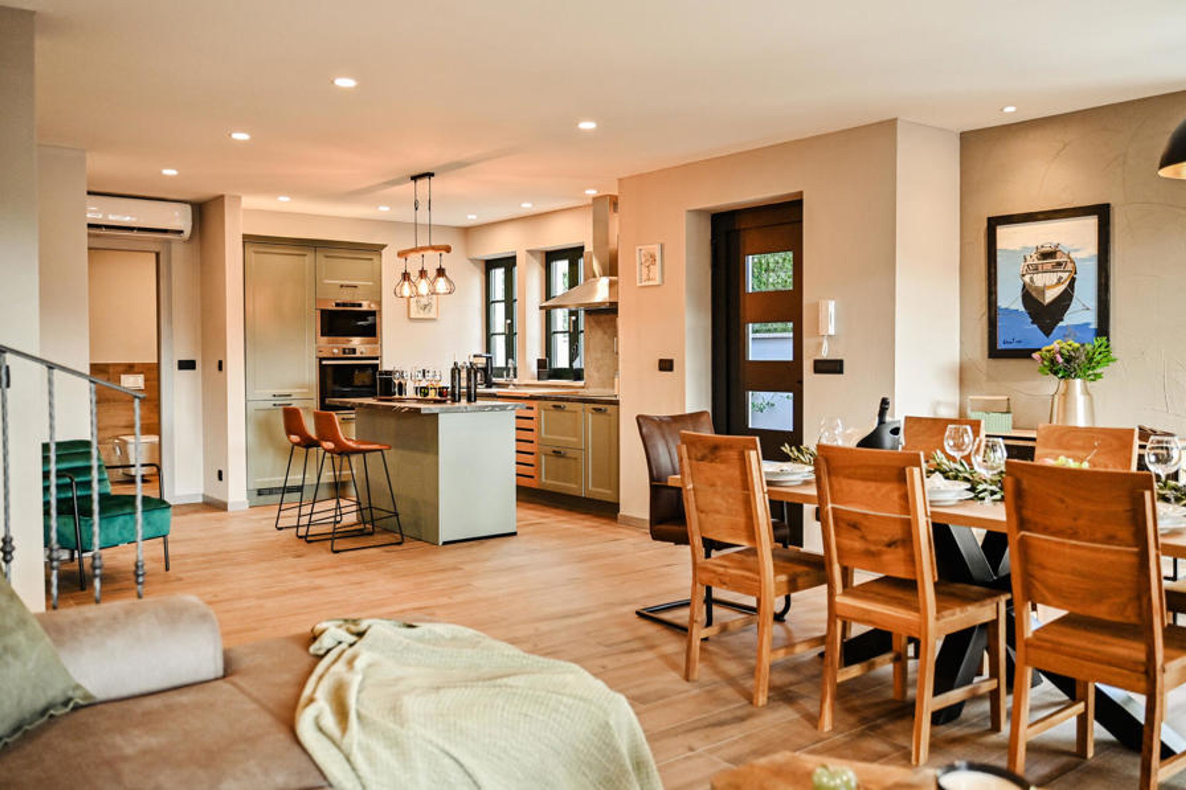 This beautiful vacation home is just a few minutes' drive from the nearest beaches. The second semi-detached house is also a vacation home and can also be booked, depending on availability, so that you can travel together as a large family or with a family of friends without sacrificing your privacy. Enjoy the homely ambience and the layout of the house. While all the bedrooms are located on the upper floor, the comfortable first floor is dedicated to socializing, cooking, eating and relaxing. Here you will find everything you need to feel completely at ease.