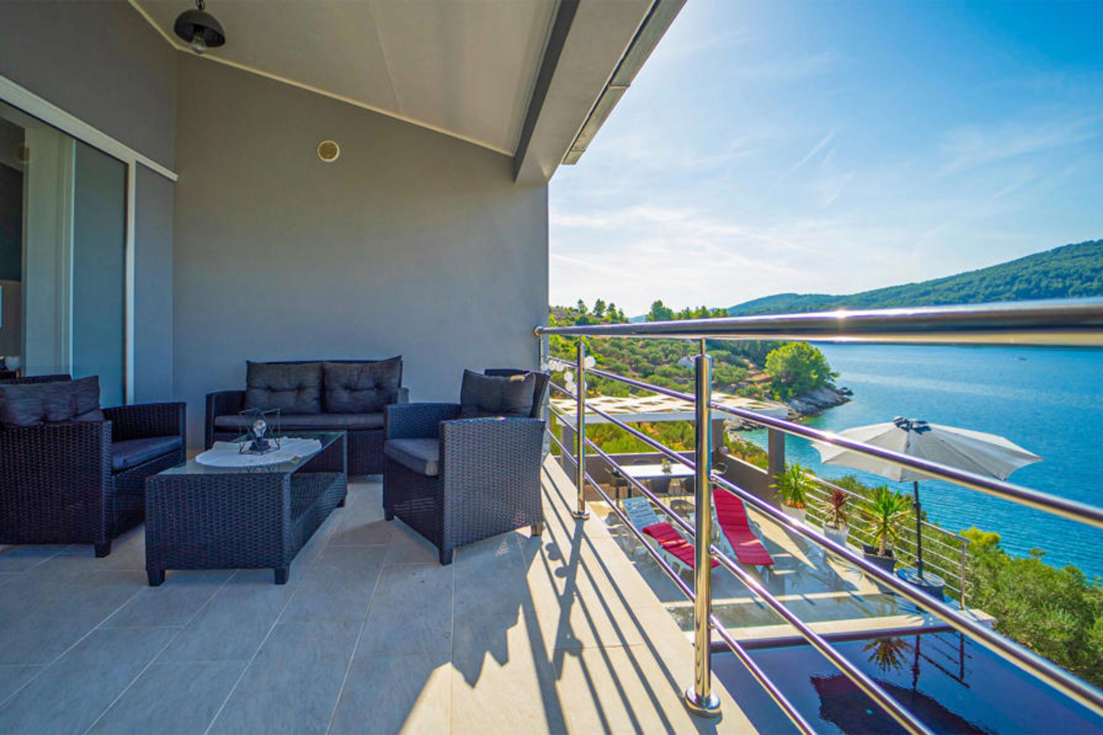 Welcome to this elegant and colorful house on the island of Korcula. Together with your family or a couple of friends, you can call the three floors your home and enjoy the special furnishings and comfort. Look out over the sea from almost every room and enjoy your morning coffee on one of the balconies. The covered terrace area by the pool also invites you to spend relaxing hours sunbathing and swimming while taking in the scenery.