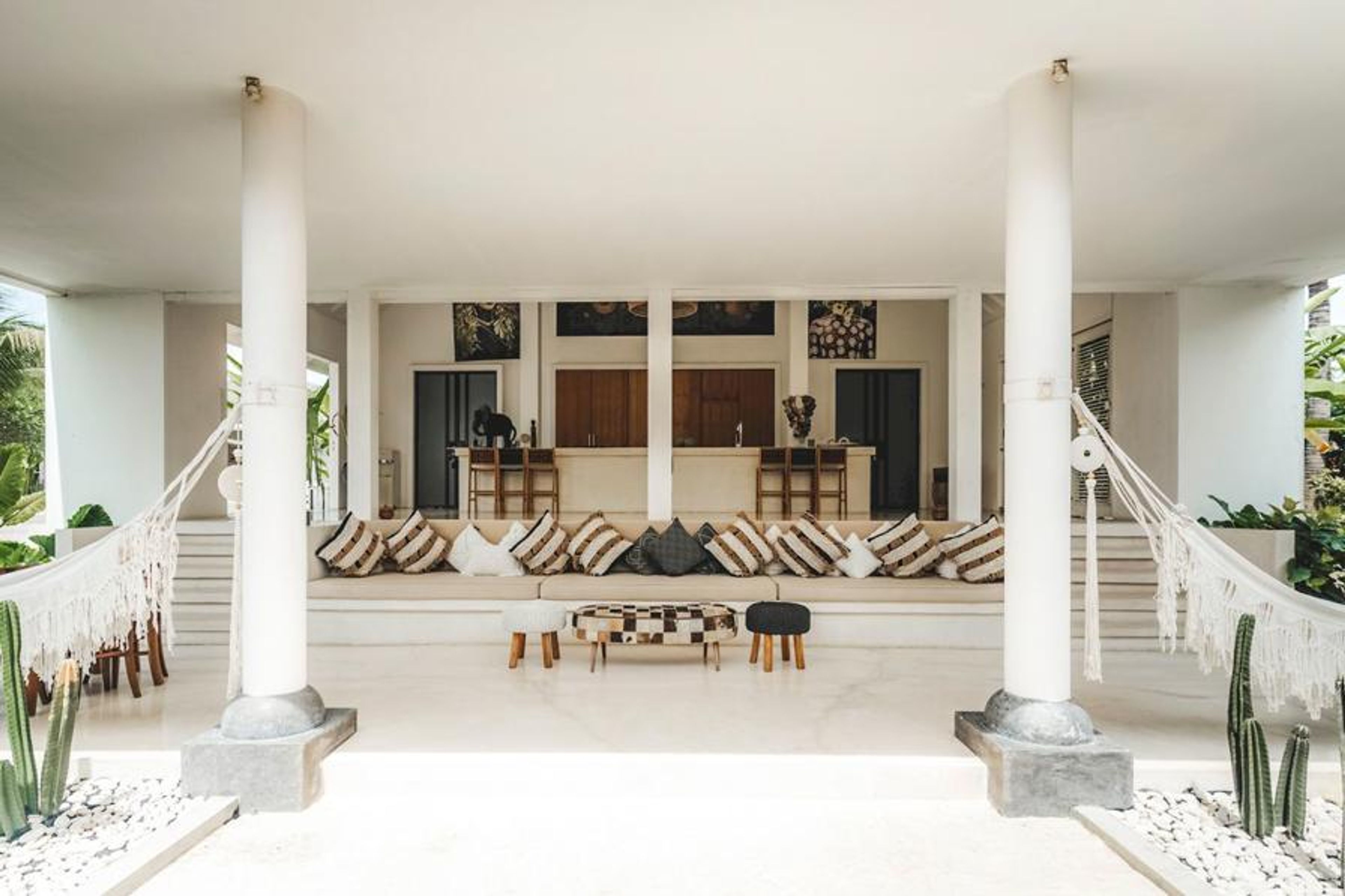 The villa's architecture seamlessly melds indoor and outdoor realms, epitomizing the allure of tropical living. The lounge area gracefully unfolds into an al fresco dining space, flanked by swaying hammocks that beckon moments of relaxation. The outdoor dining experience is further enriched by a dedicated team, including a talented Private Chef, capable of crafting delectable culinary delights beneath a canopy of dried rice stalks.